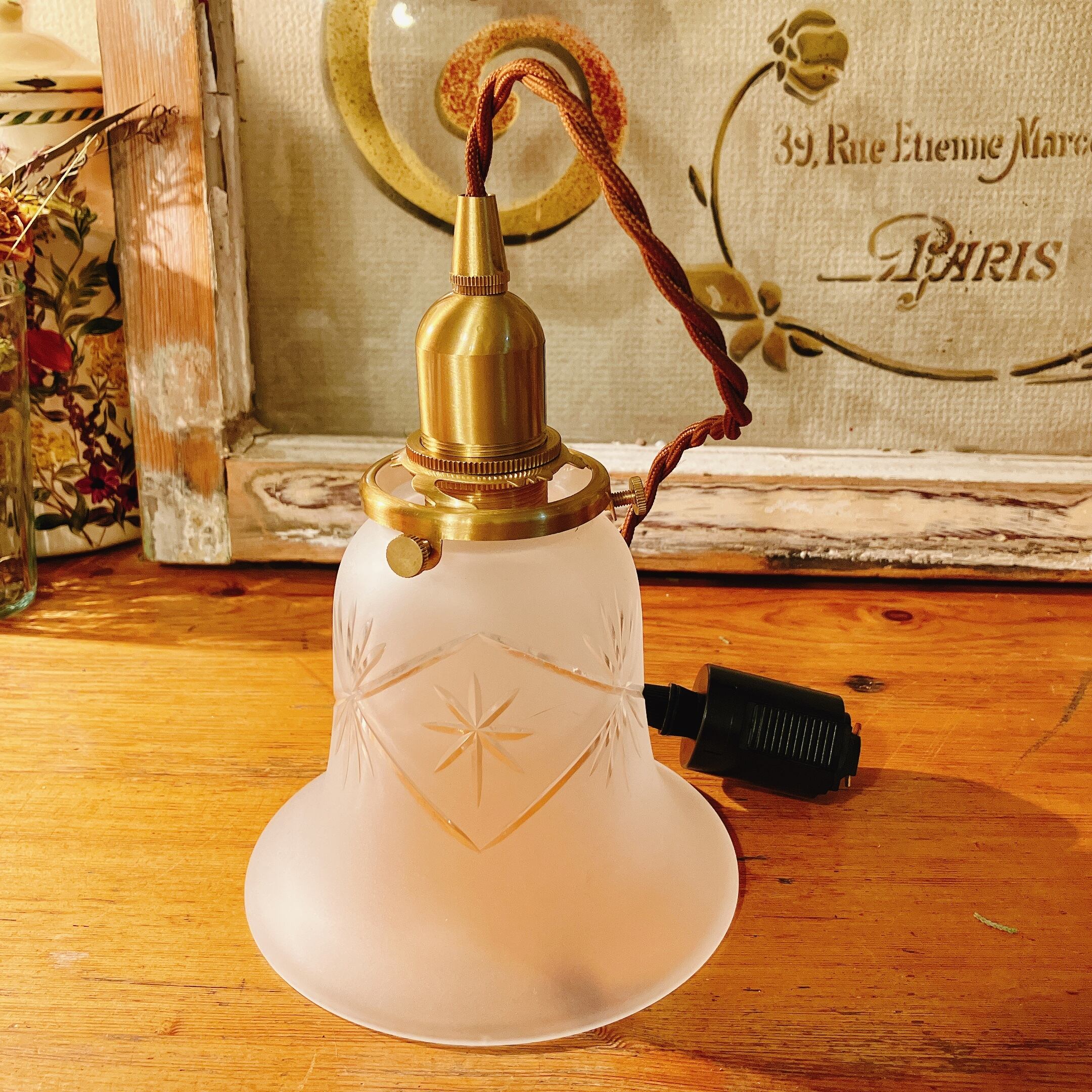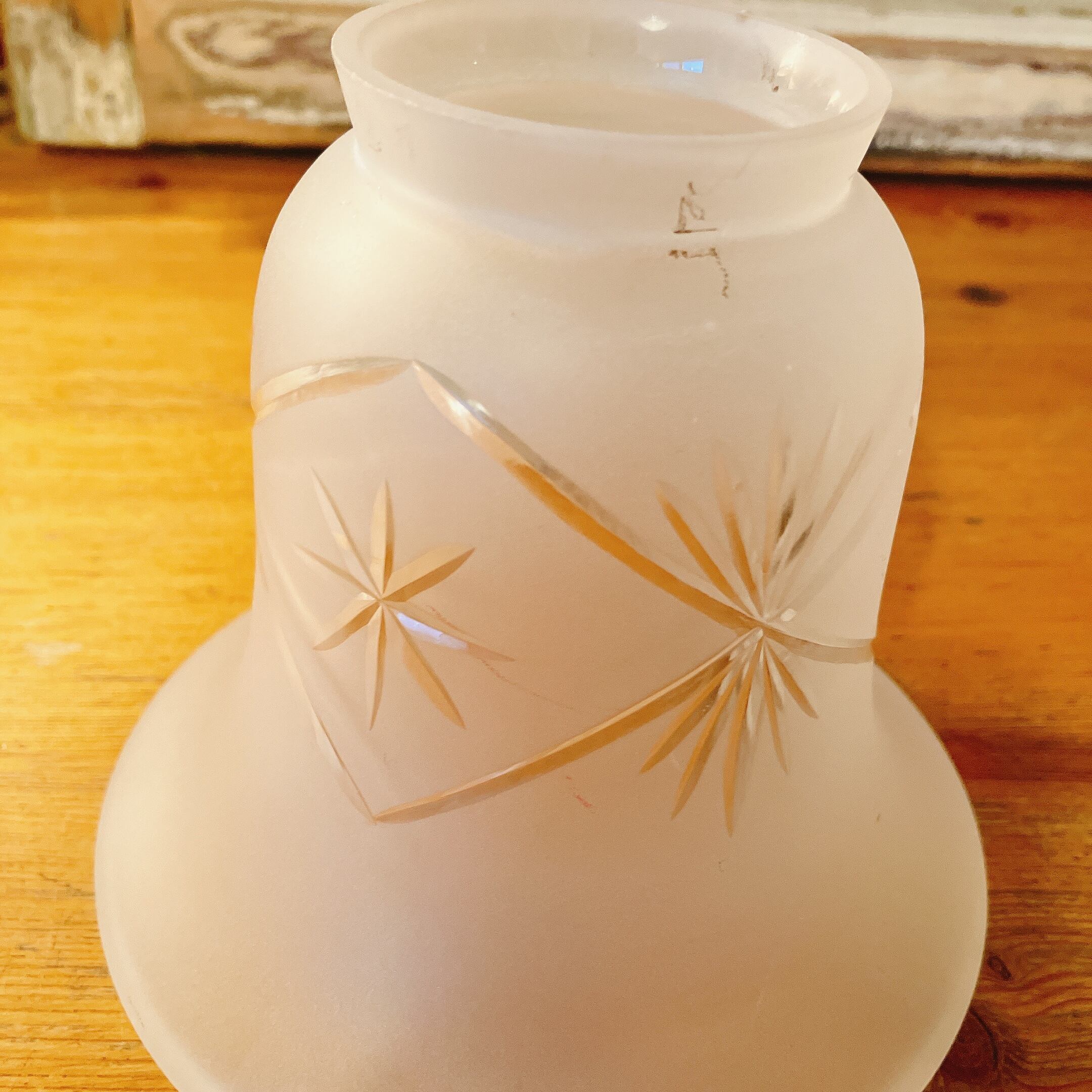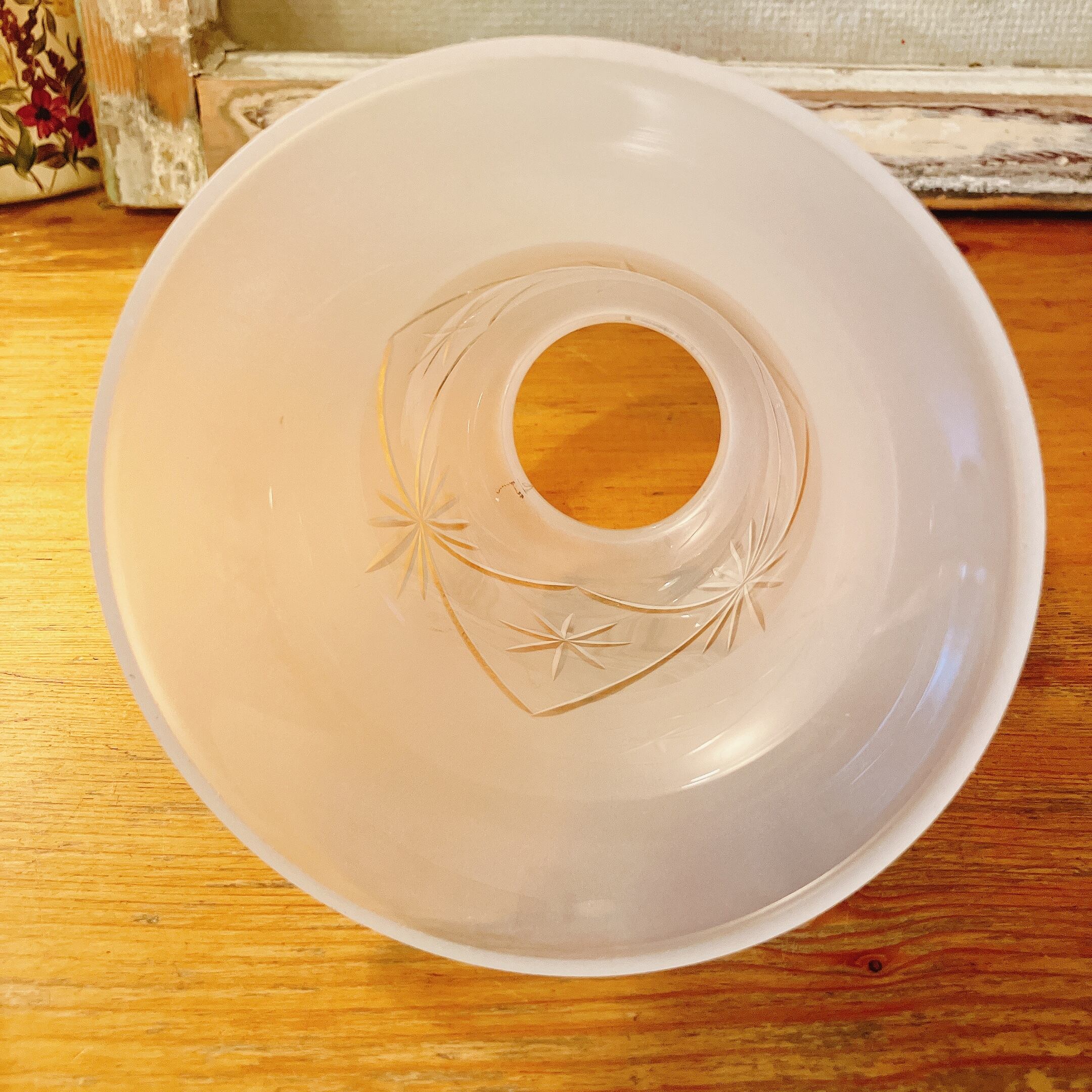 擦りガラスに美しいカットのランプシェード イギリスヴィンテージ