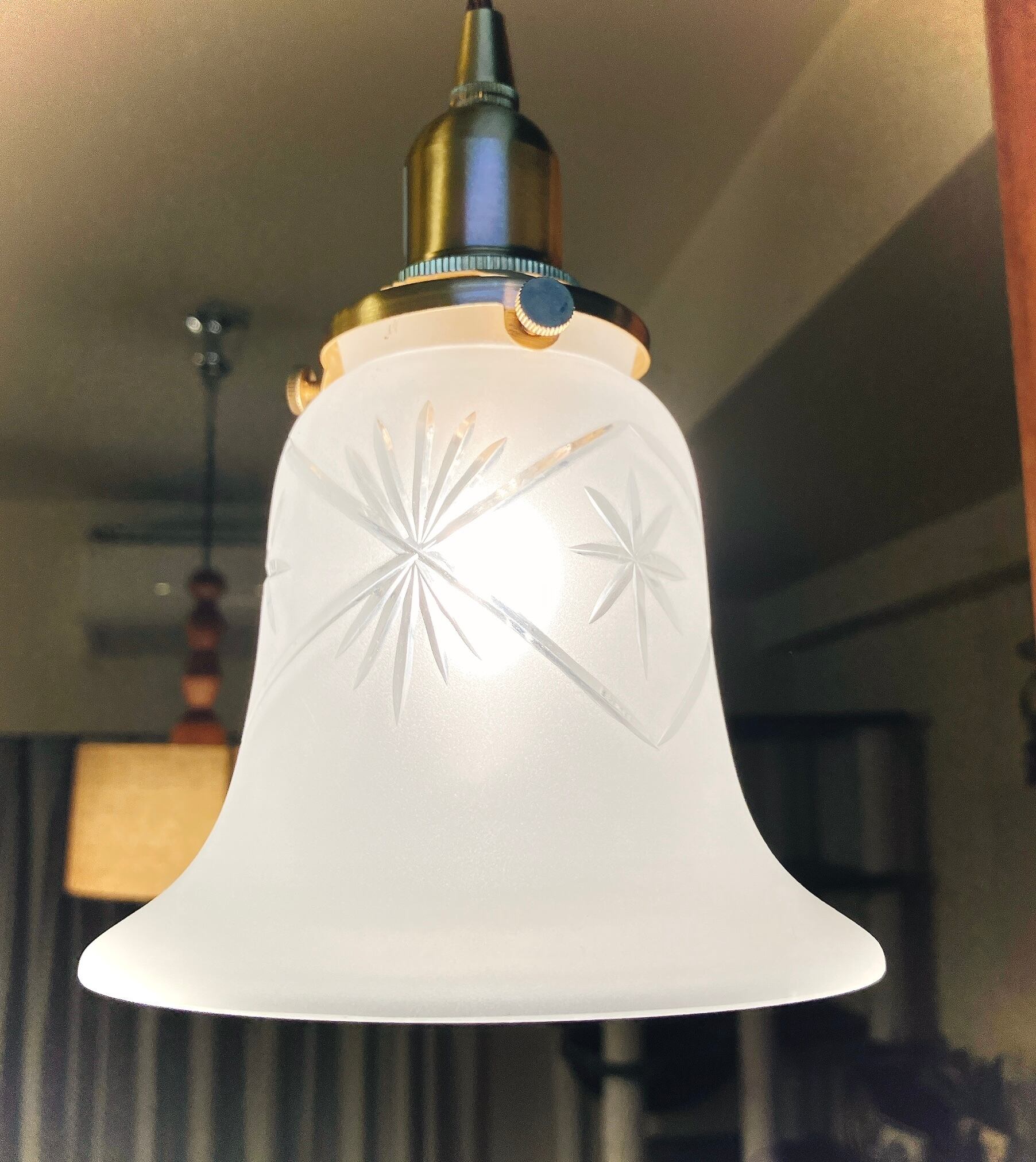 擦りガラスにカット模様が美しいランプシェードです。