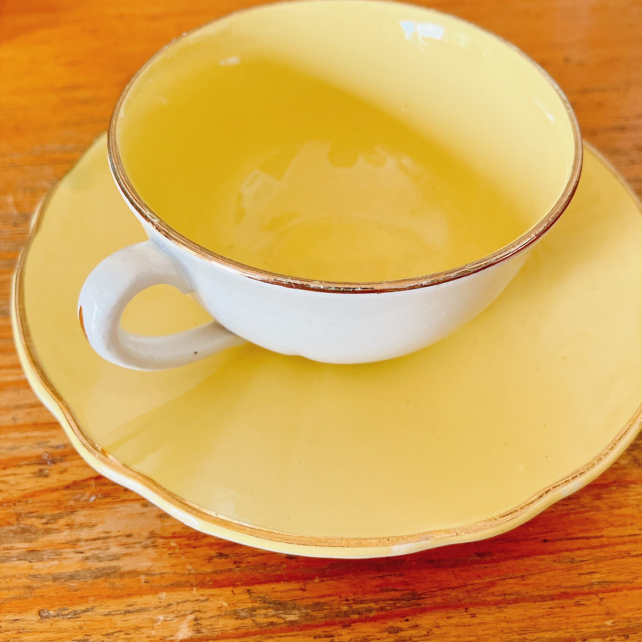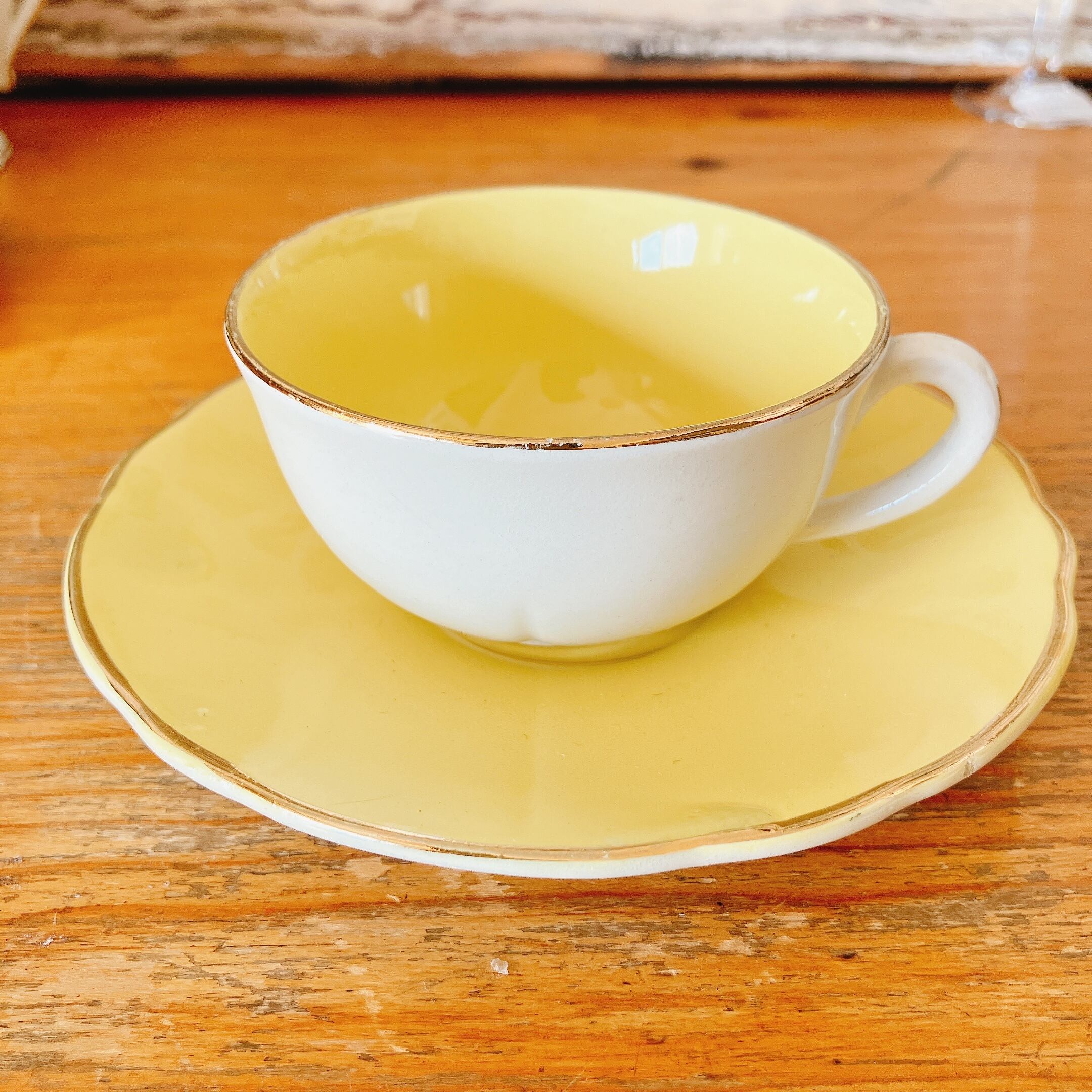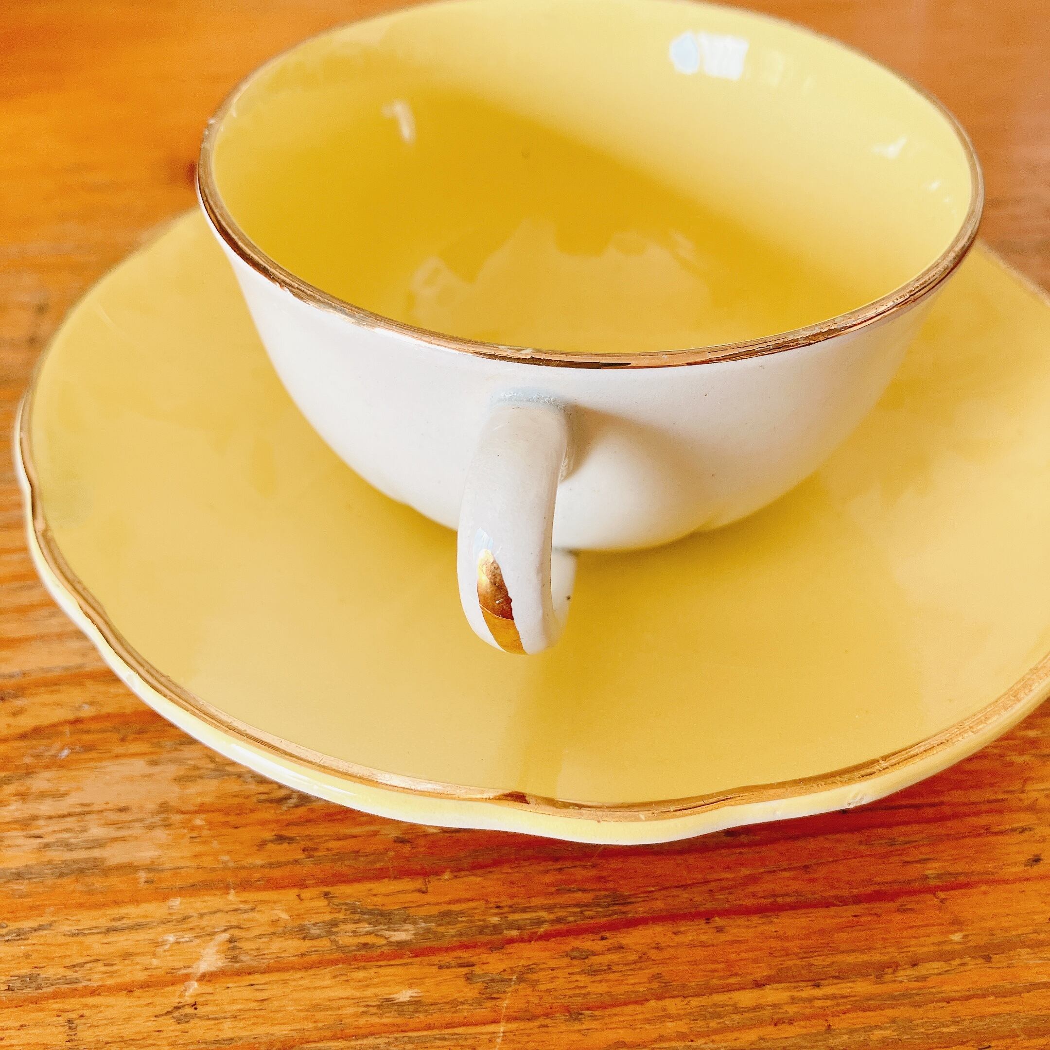 カップ内側とソーサーの表側がクリームイエローで、裏側はアイボリーの可愛いC&S。