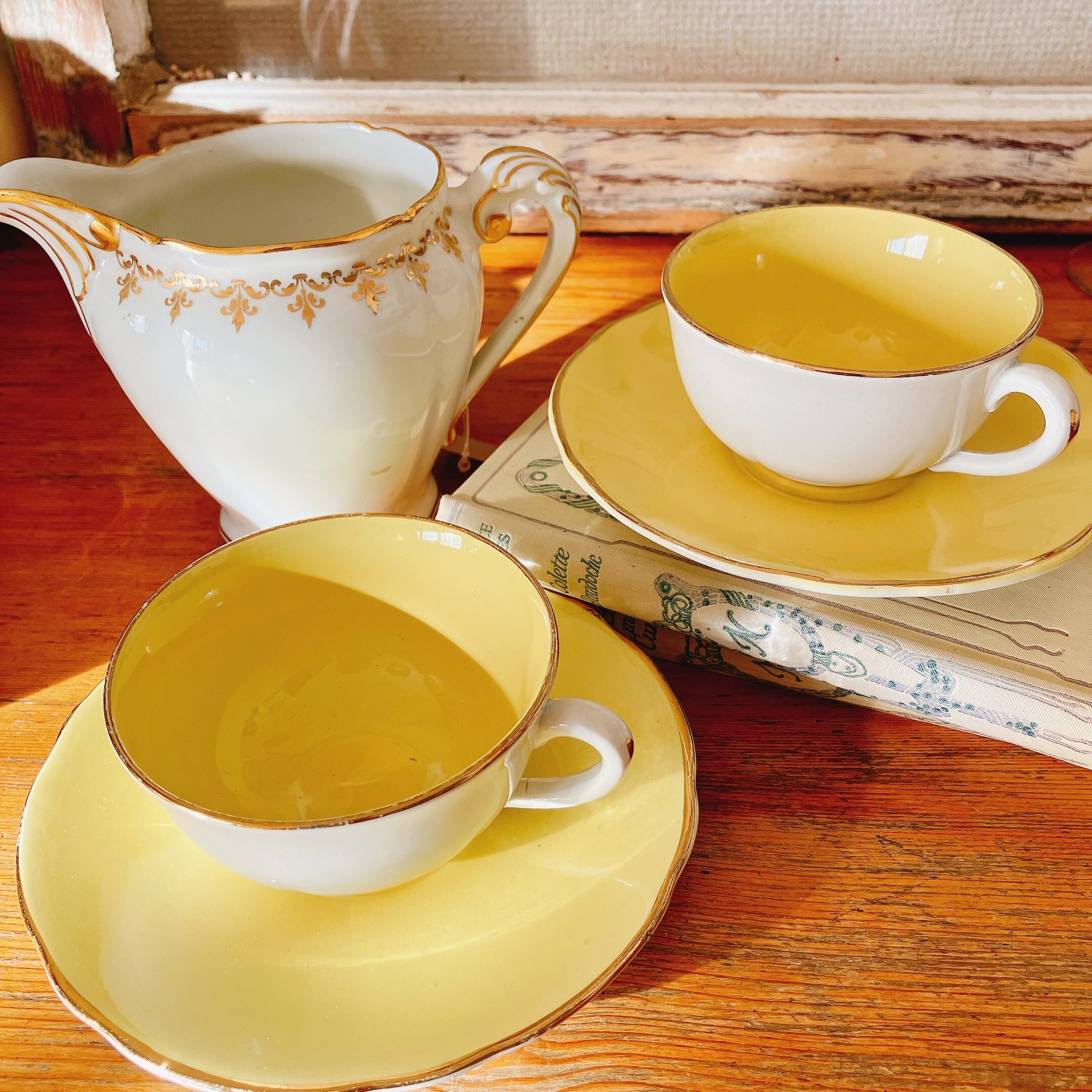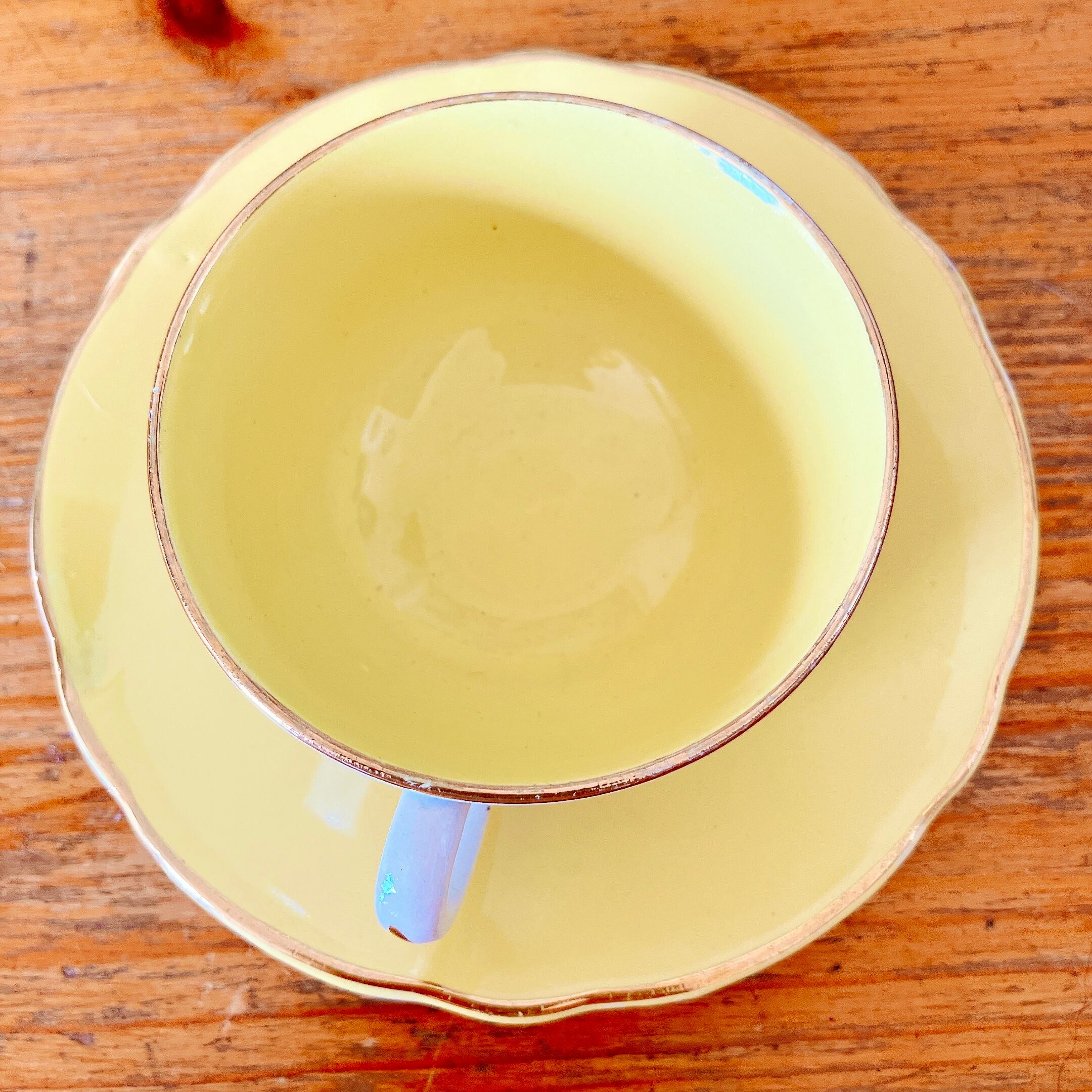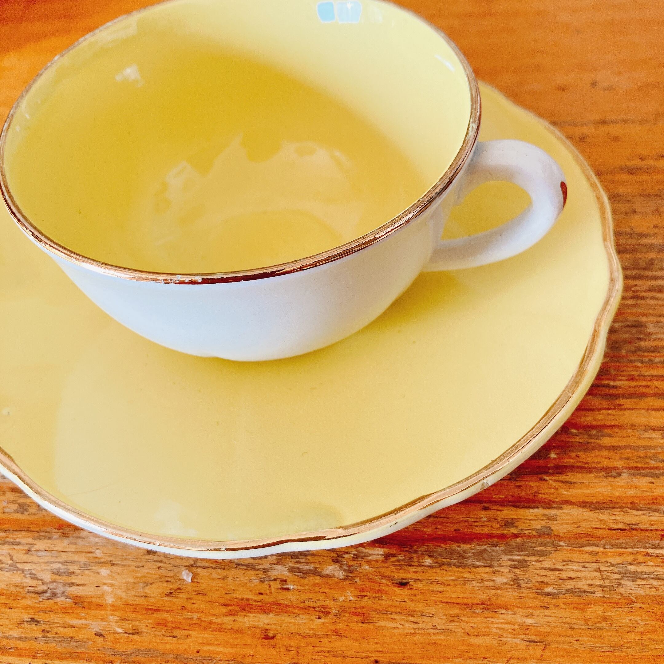 カップ内側とソーサーの表側がクリームイエローで、裏側はアイボリーの可愛いC&S。