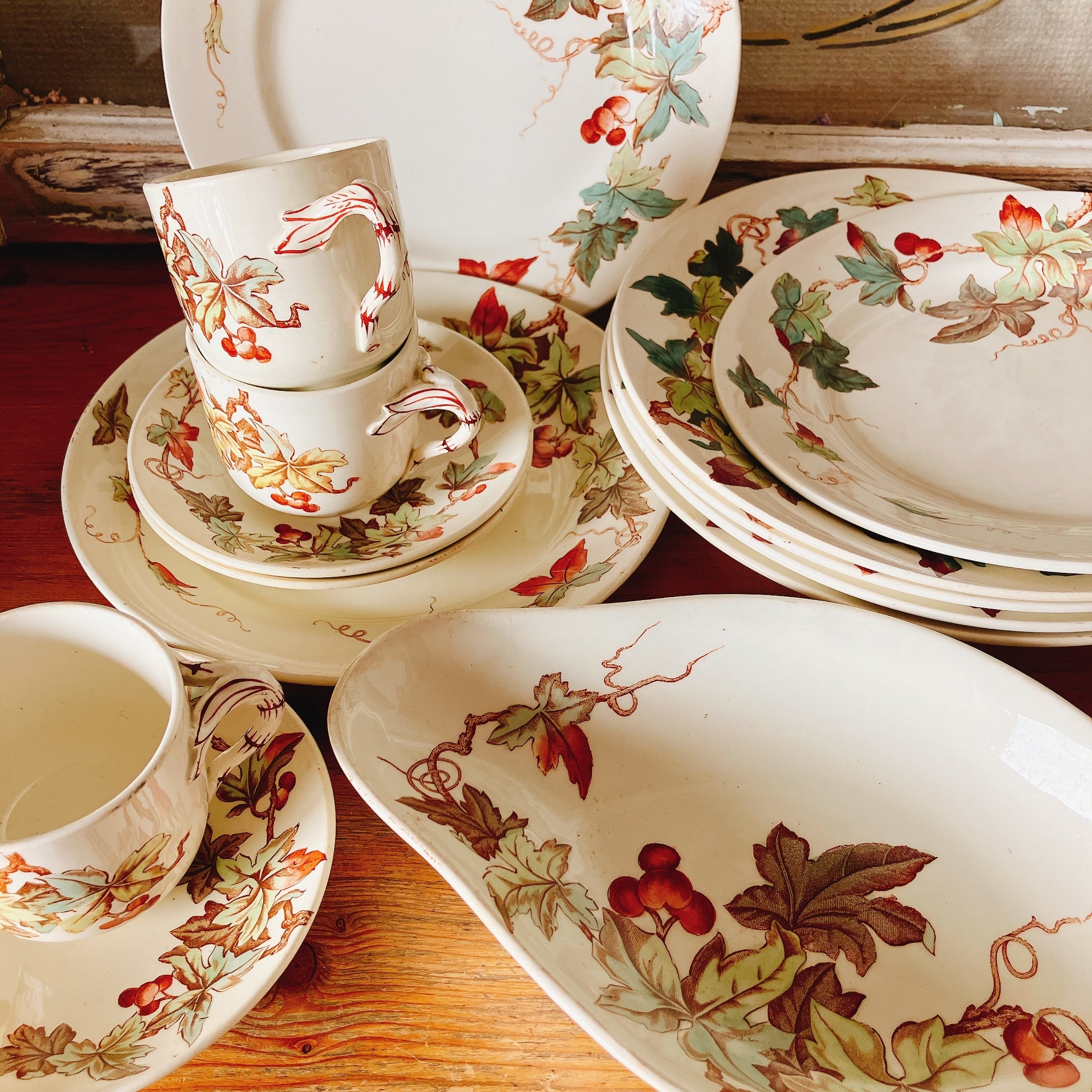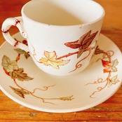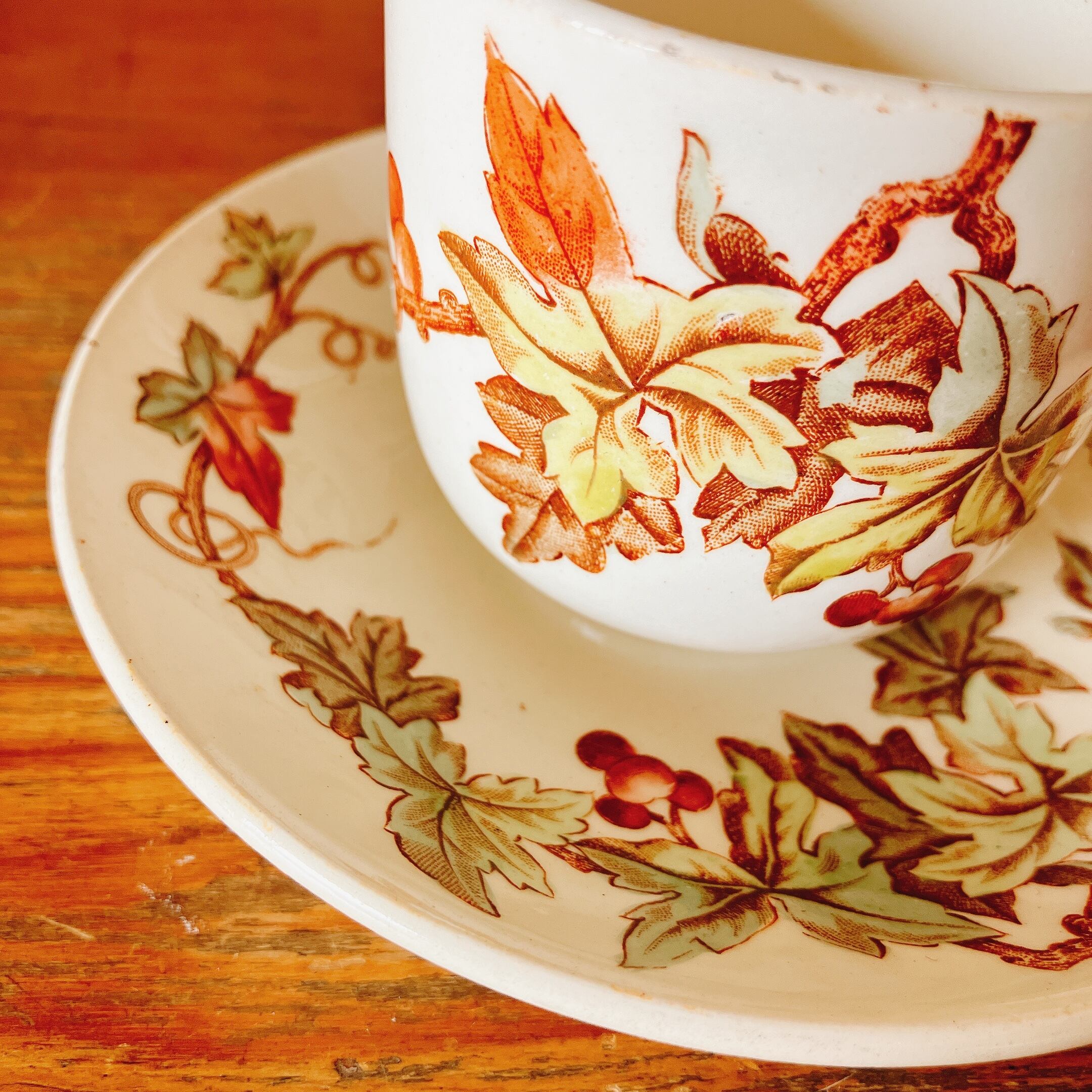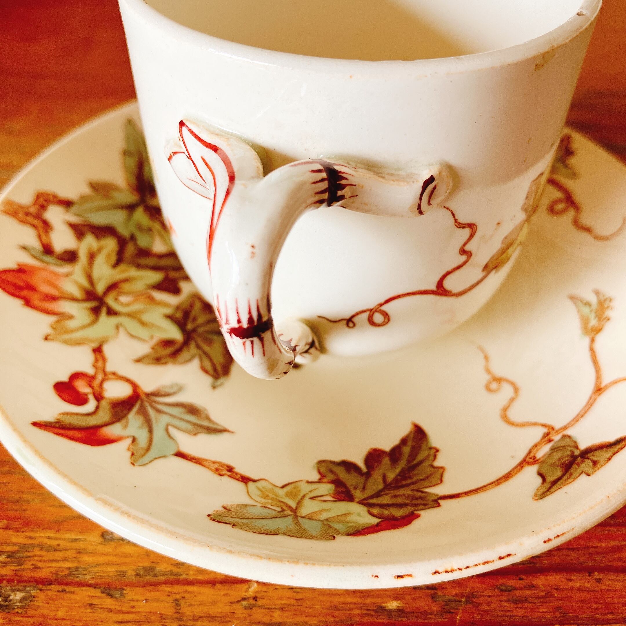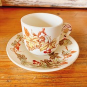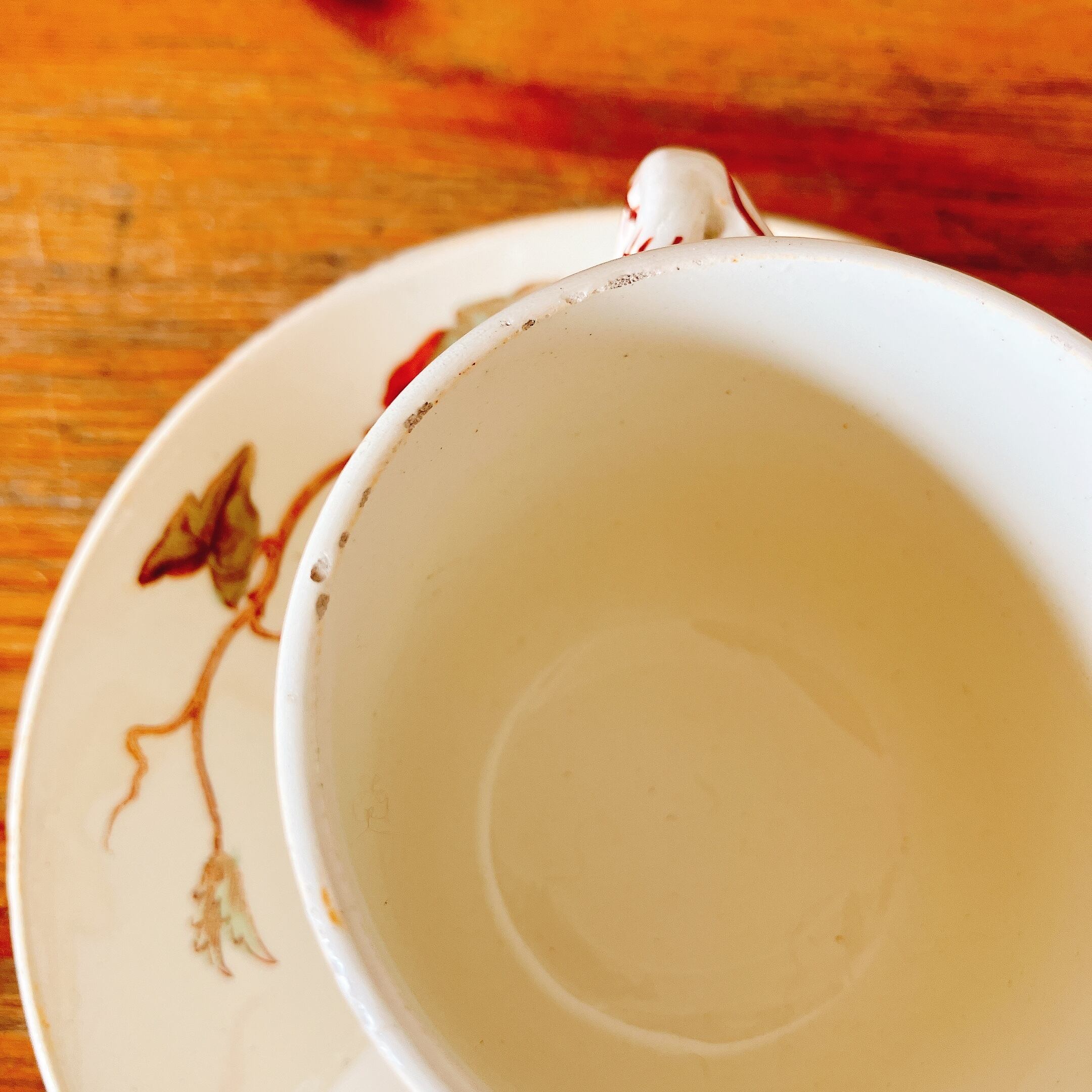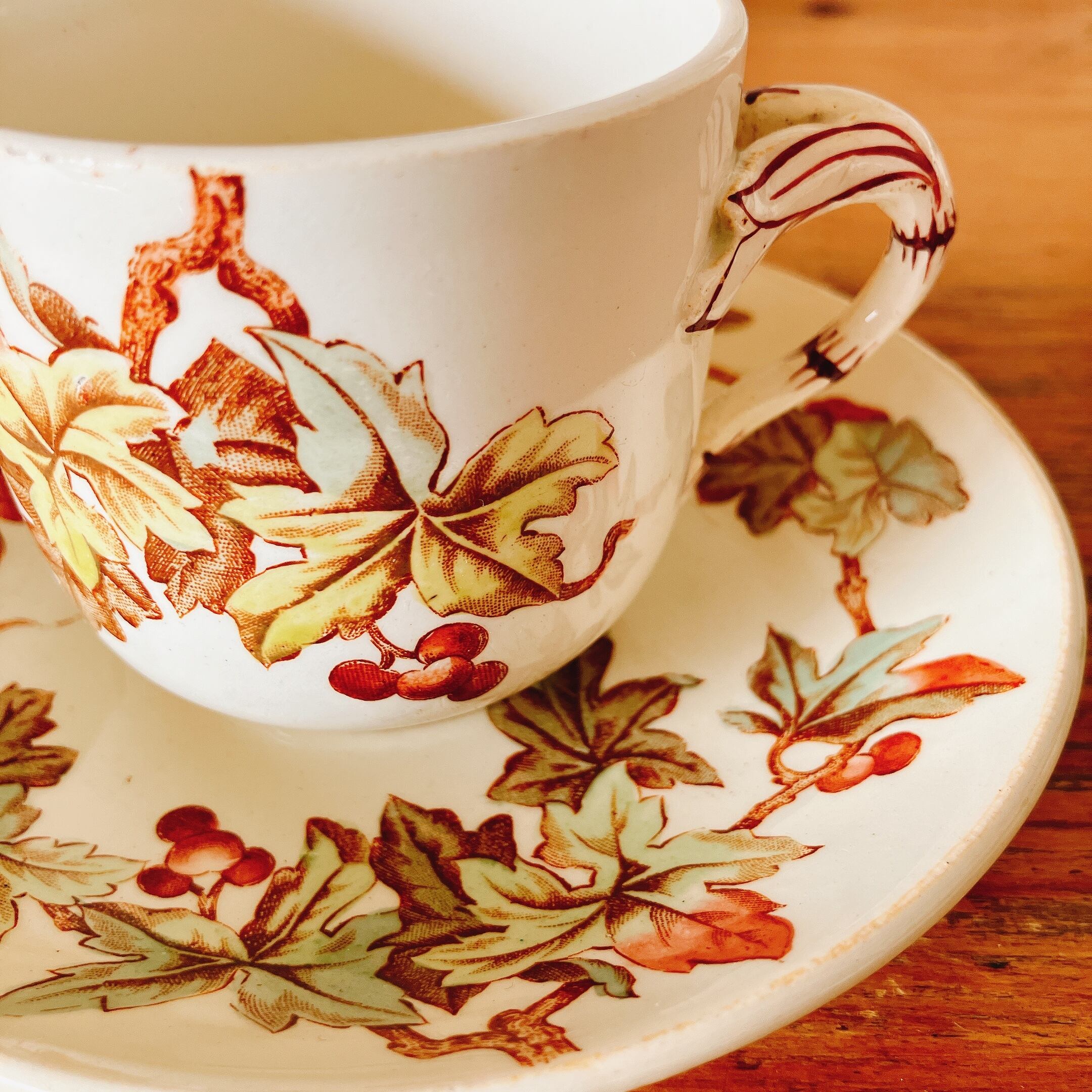 赤い実の蔓が描かれた、色彩の美しいカップ&ソーサー。