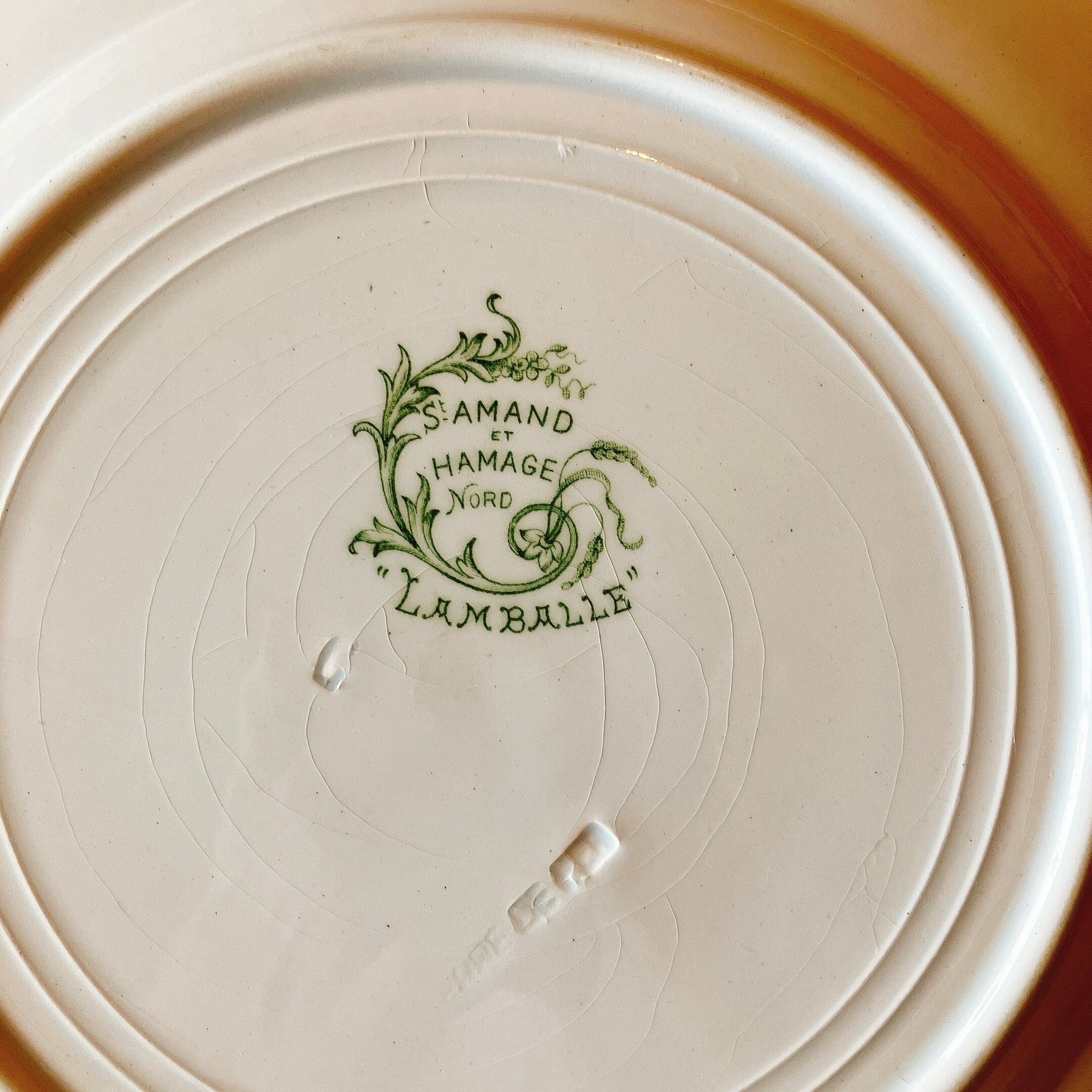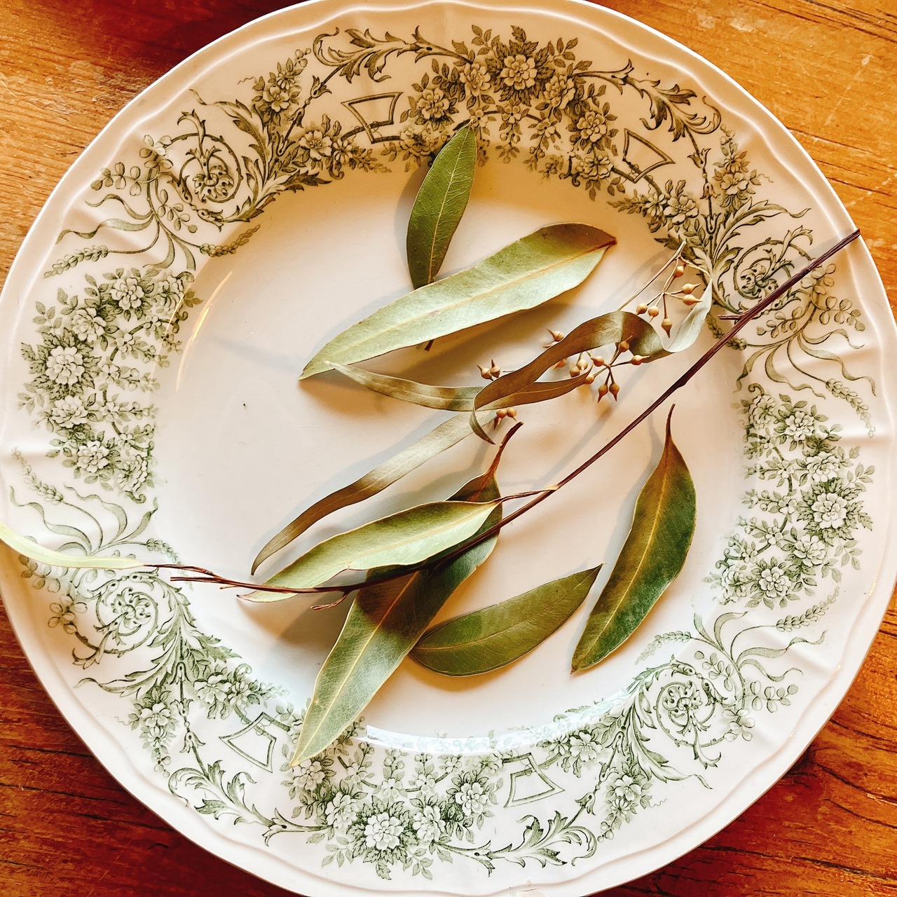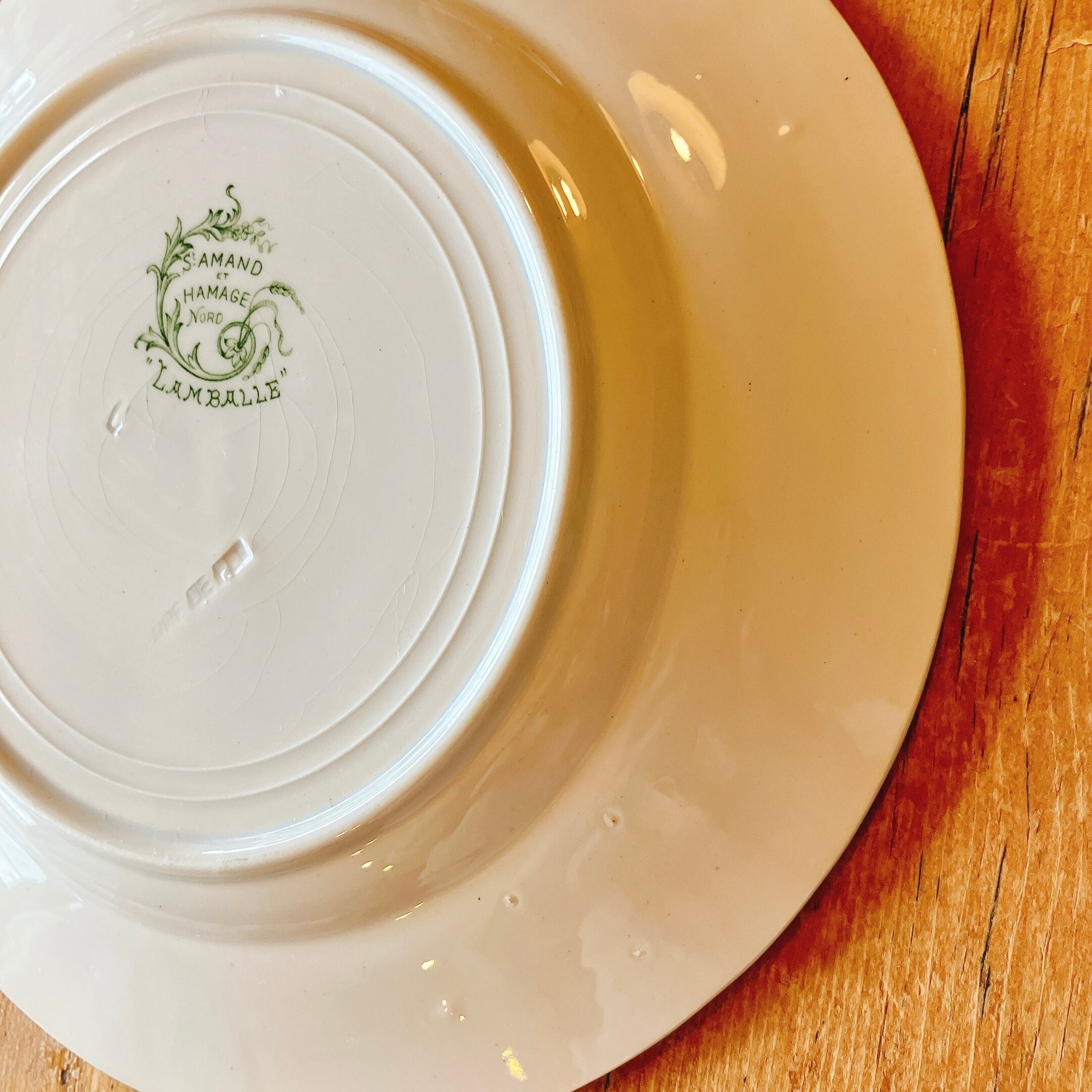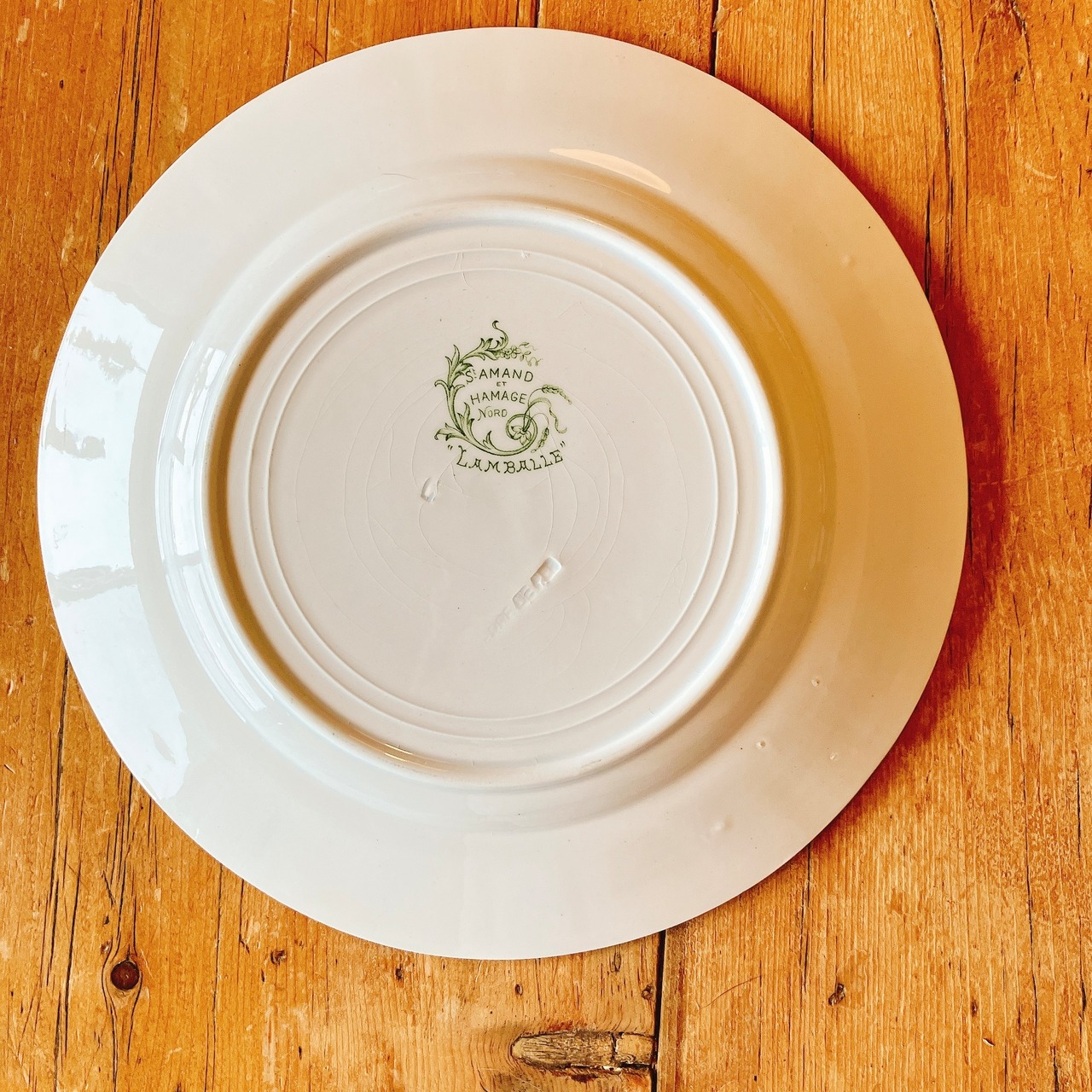 植物モチーフ柄が繊細で美しく描かれたディナープレート。フチにもレリーフが入って、グリーンも深い色が素敵です。