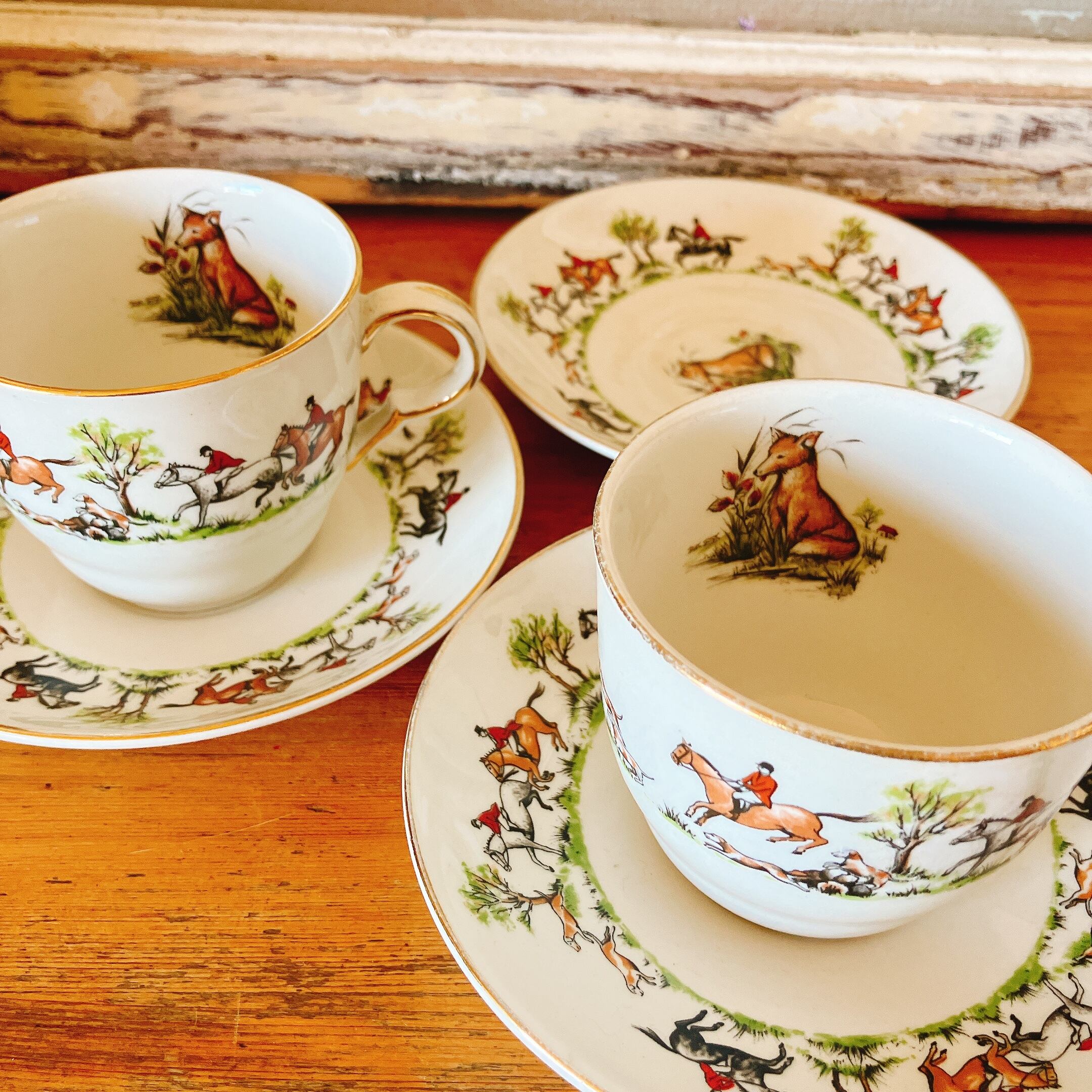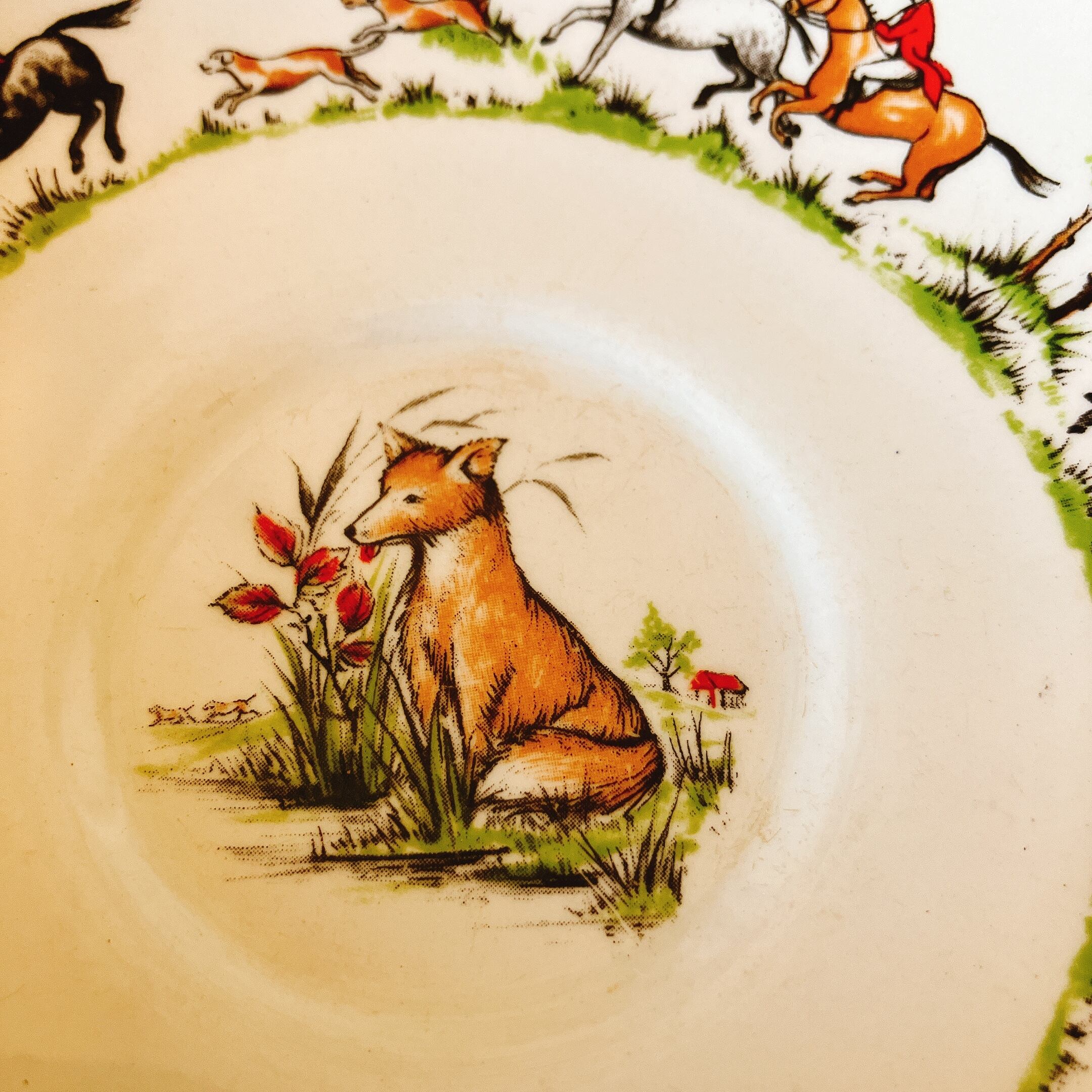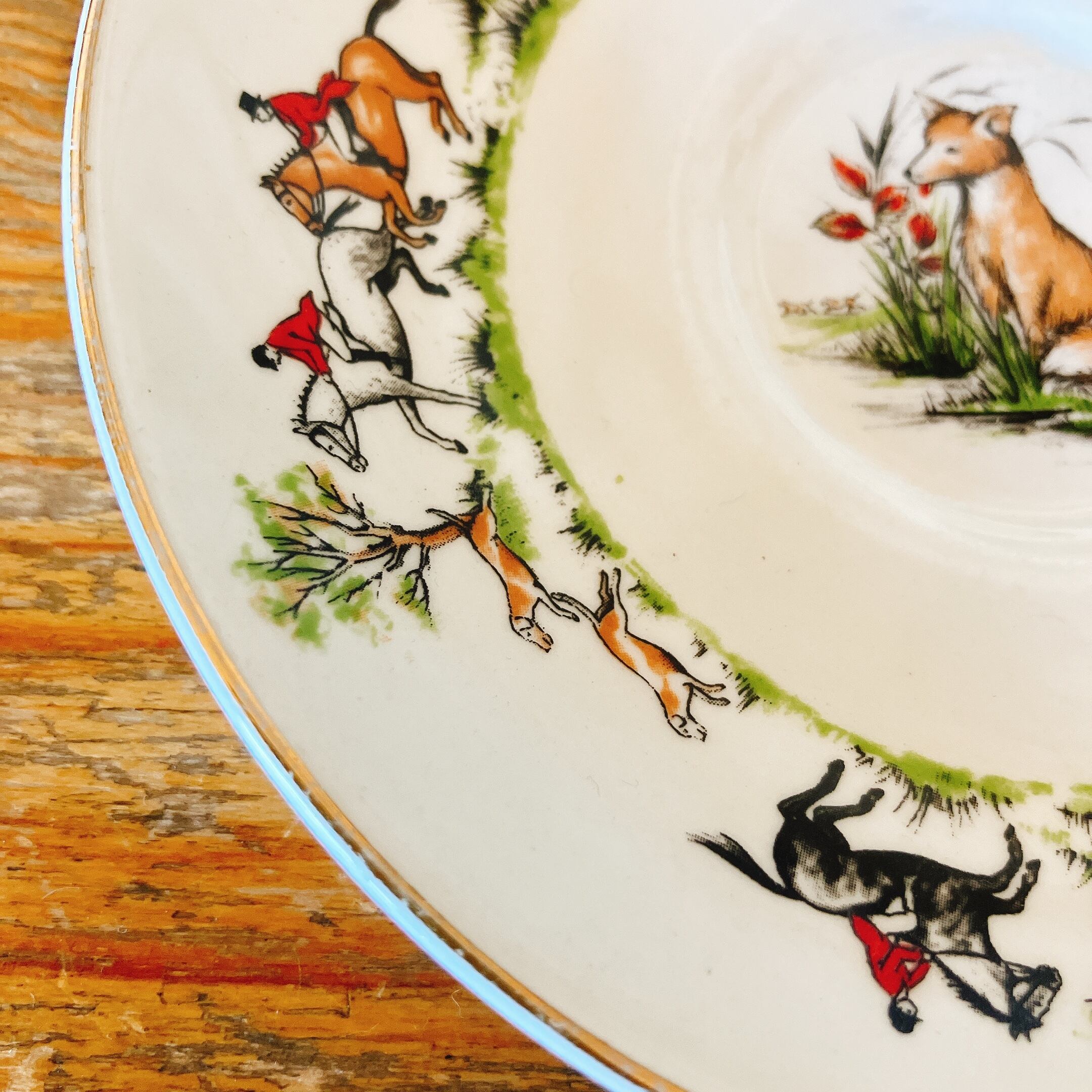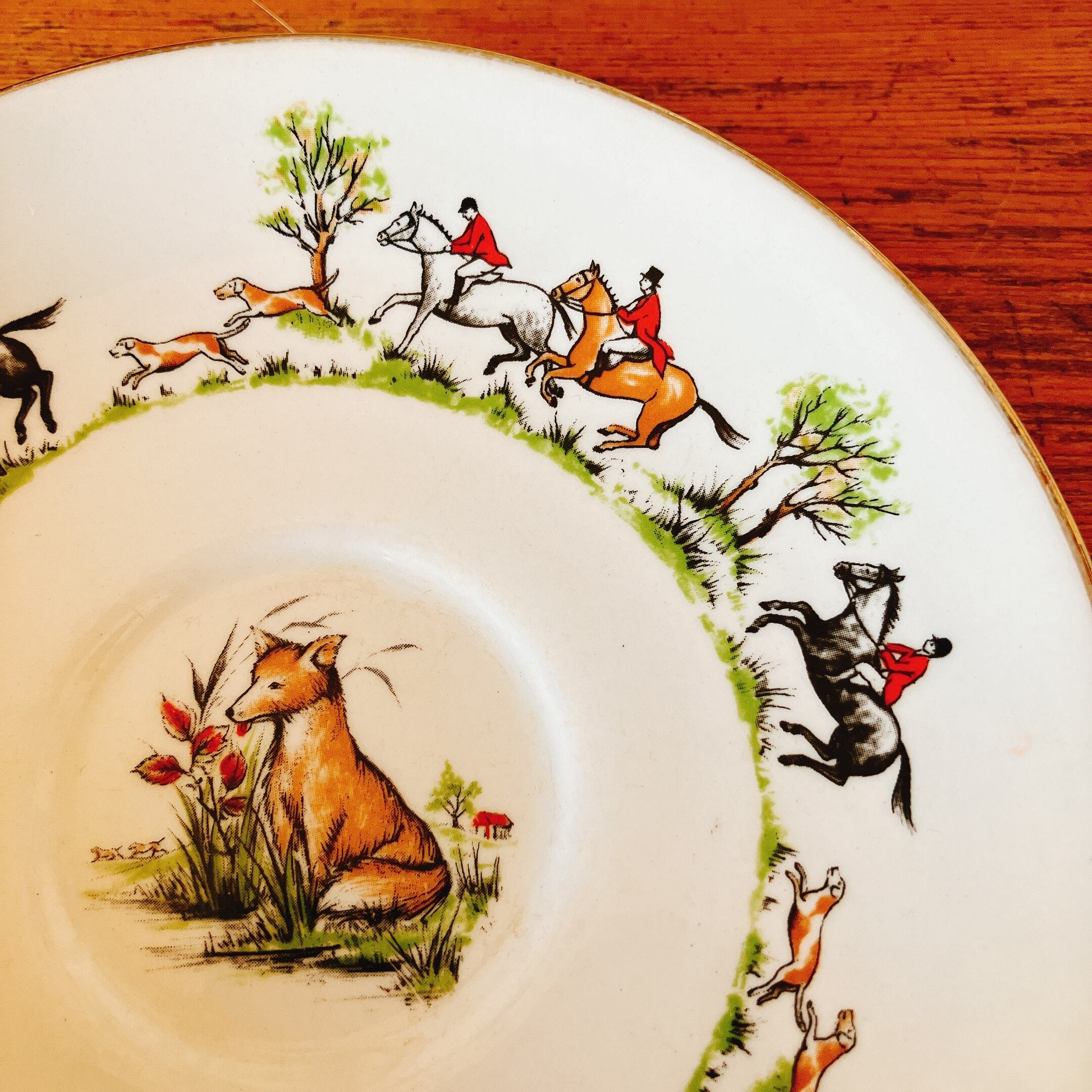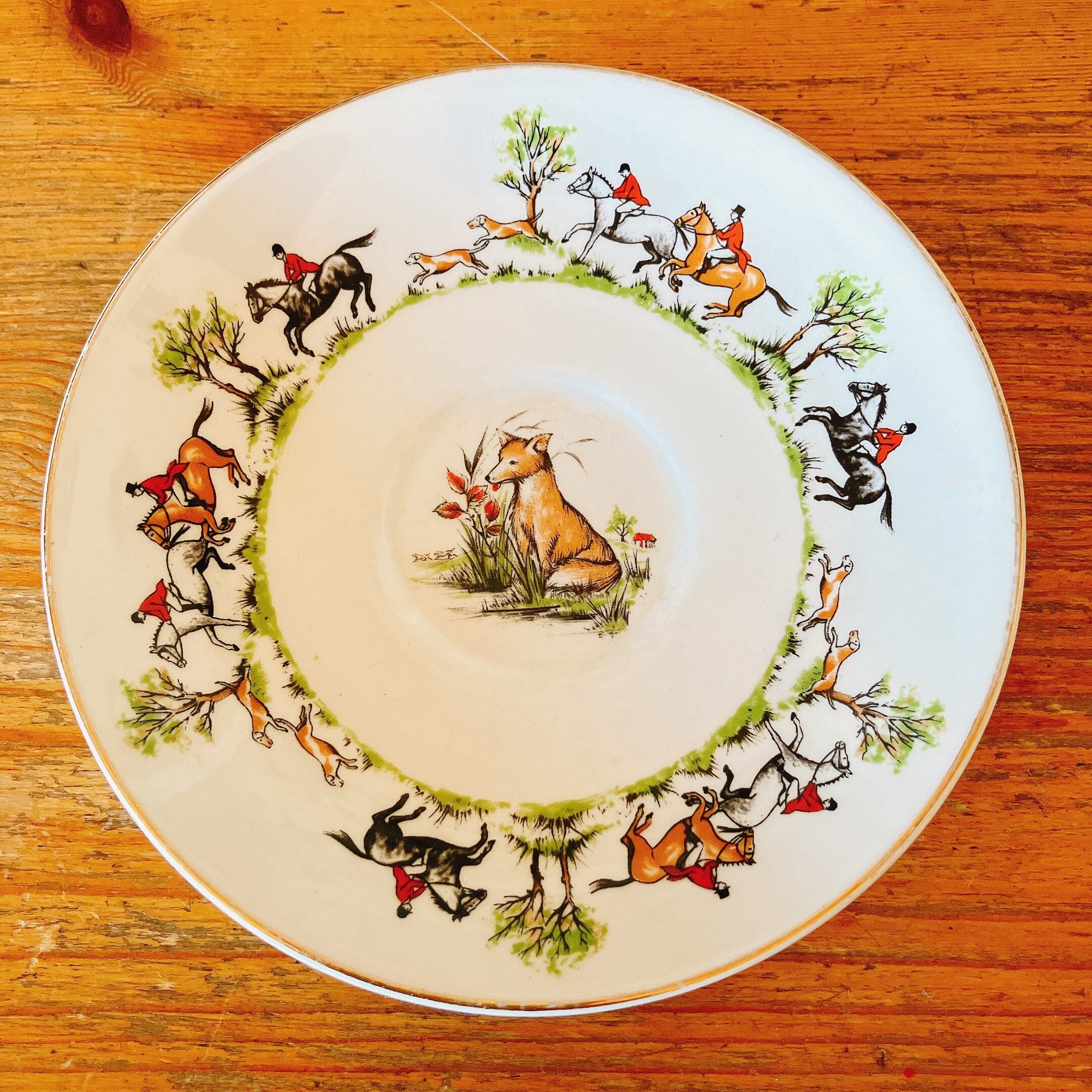 ハンティングシーンの柄がイギリスらしい、ソーサー1枚です。