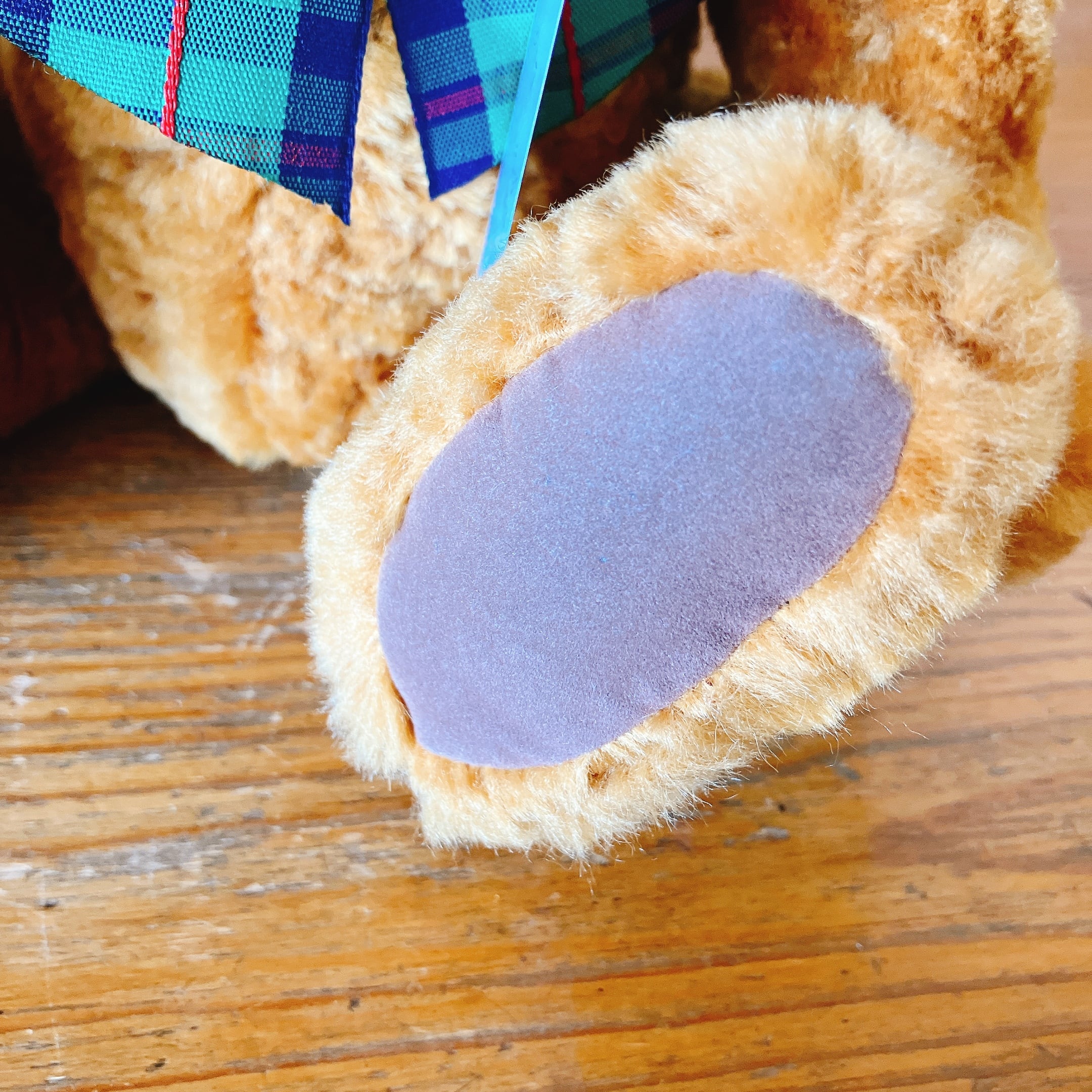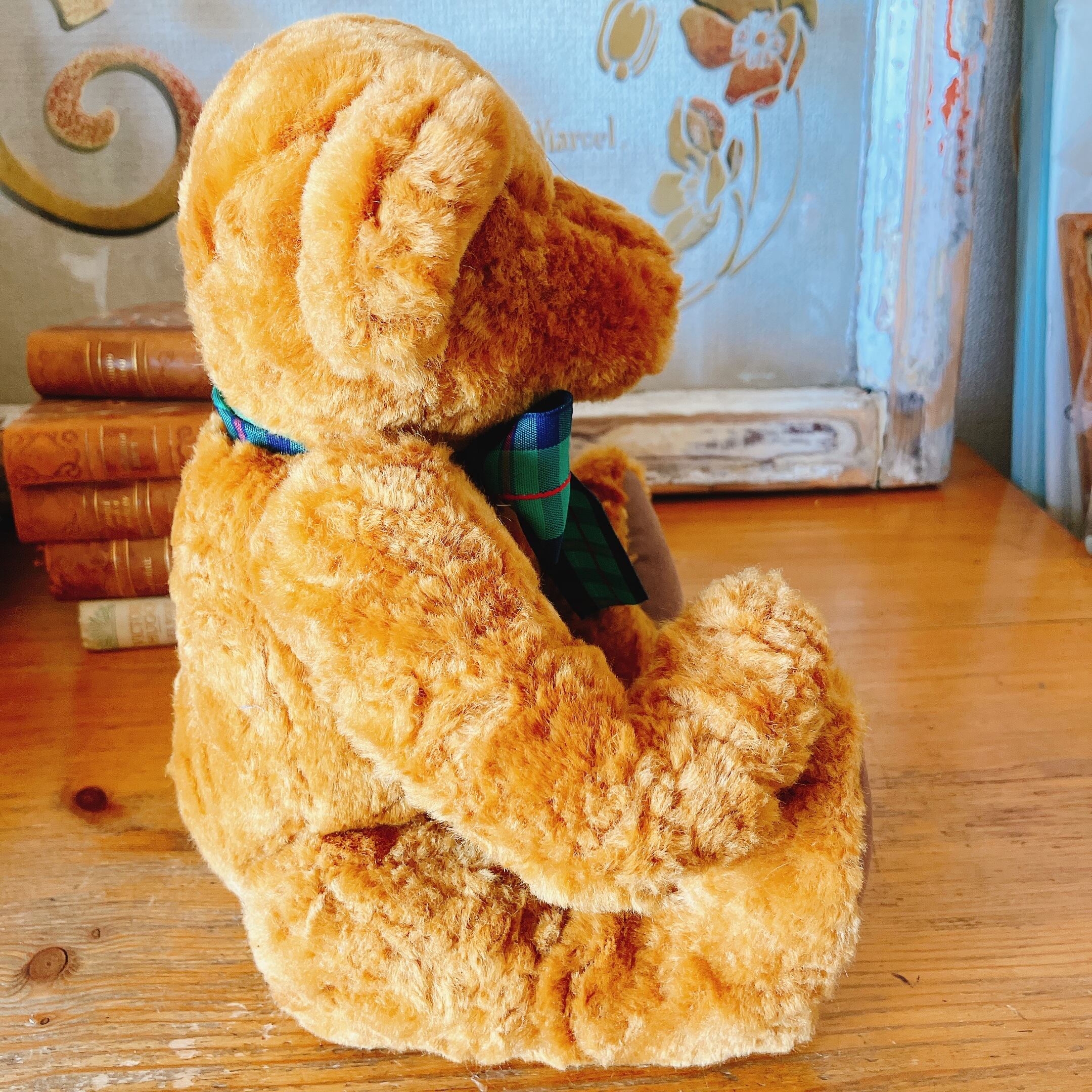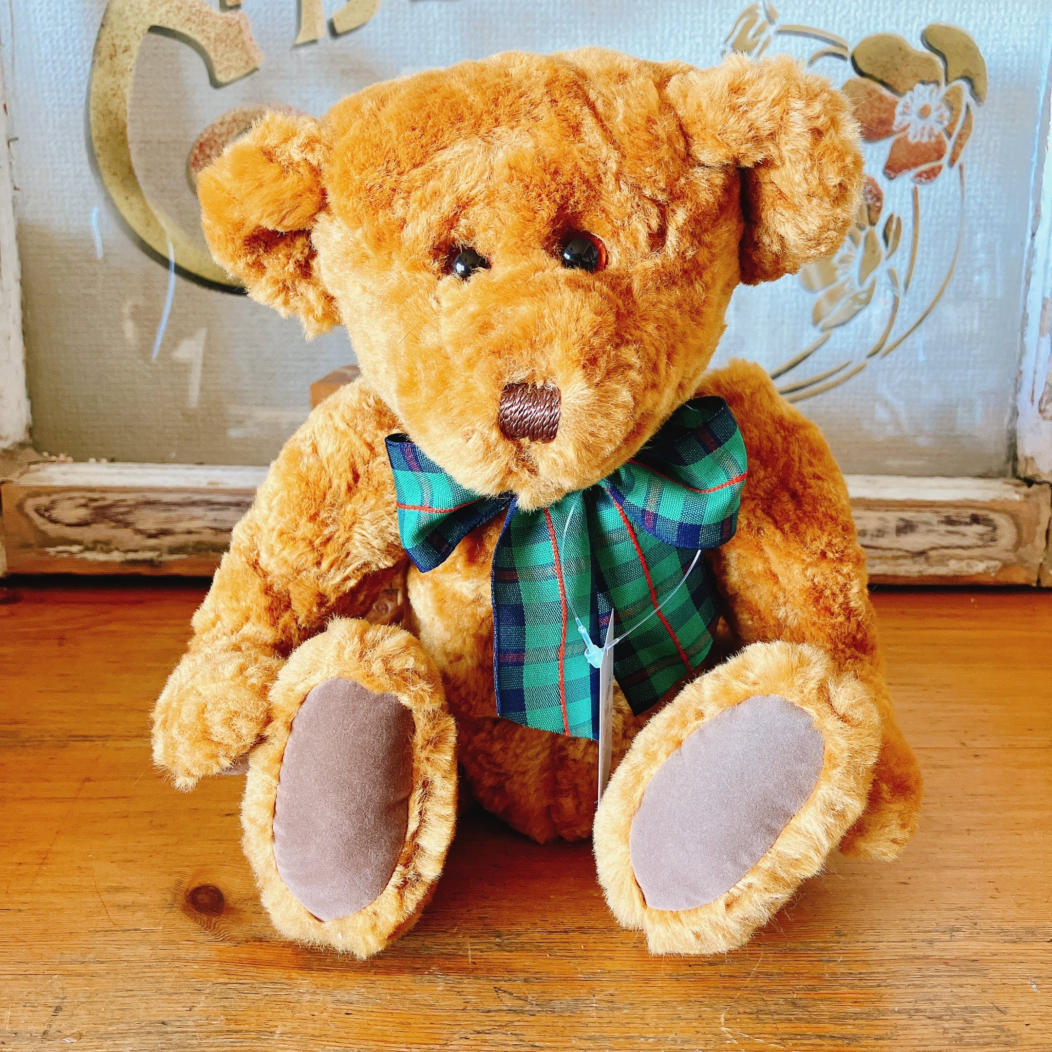緑のチェックのリボンがイギリスらしい、汚れや傷みもほぼ無いとてもキレイな子です。
