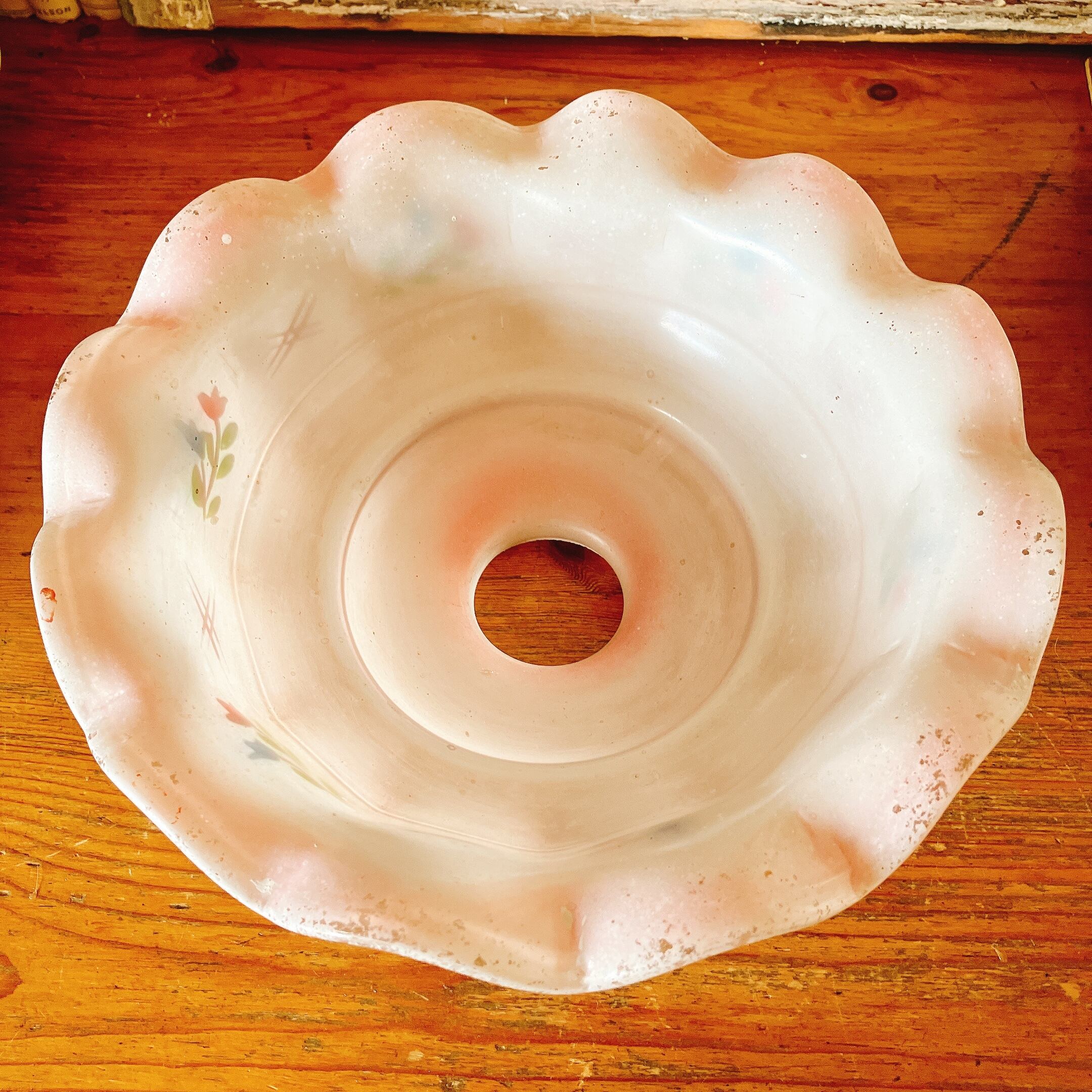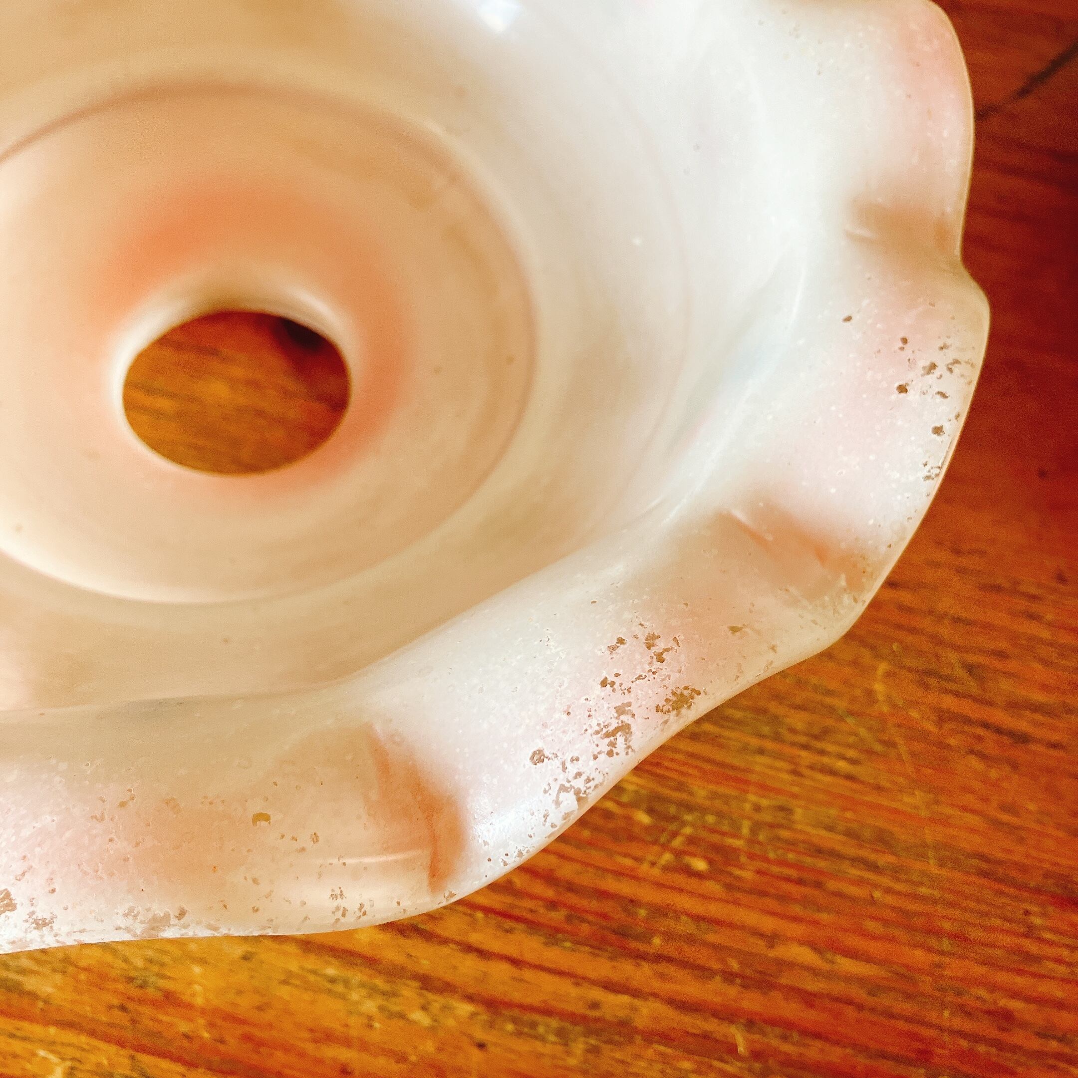 甘いシャーベットピンクが可愛い、ガラス製のランプシェード。