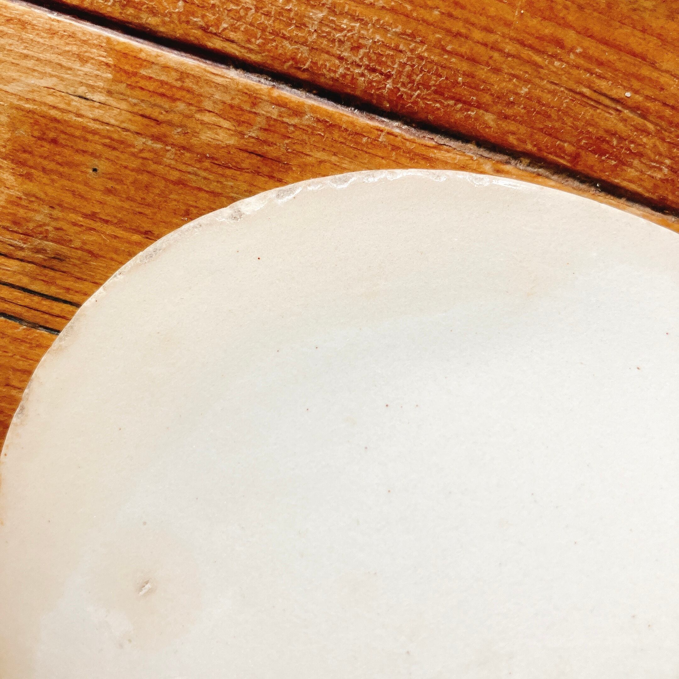 全体に薄い枯れ、裏フチに経年による擦れのようなチップはありますが、良い味が出ていて素敵な一枚。ヒビはありません。