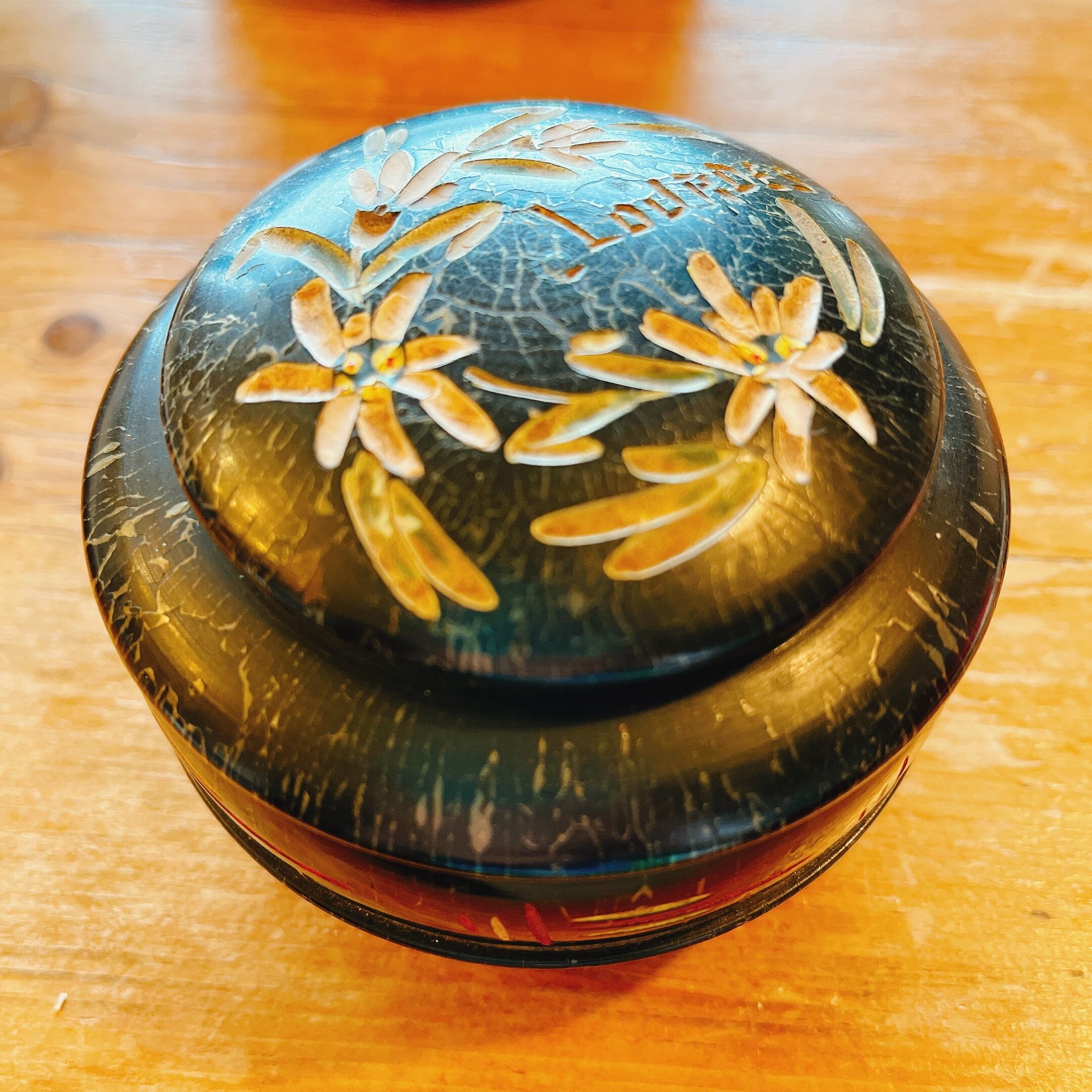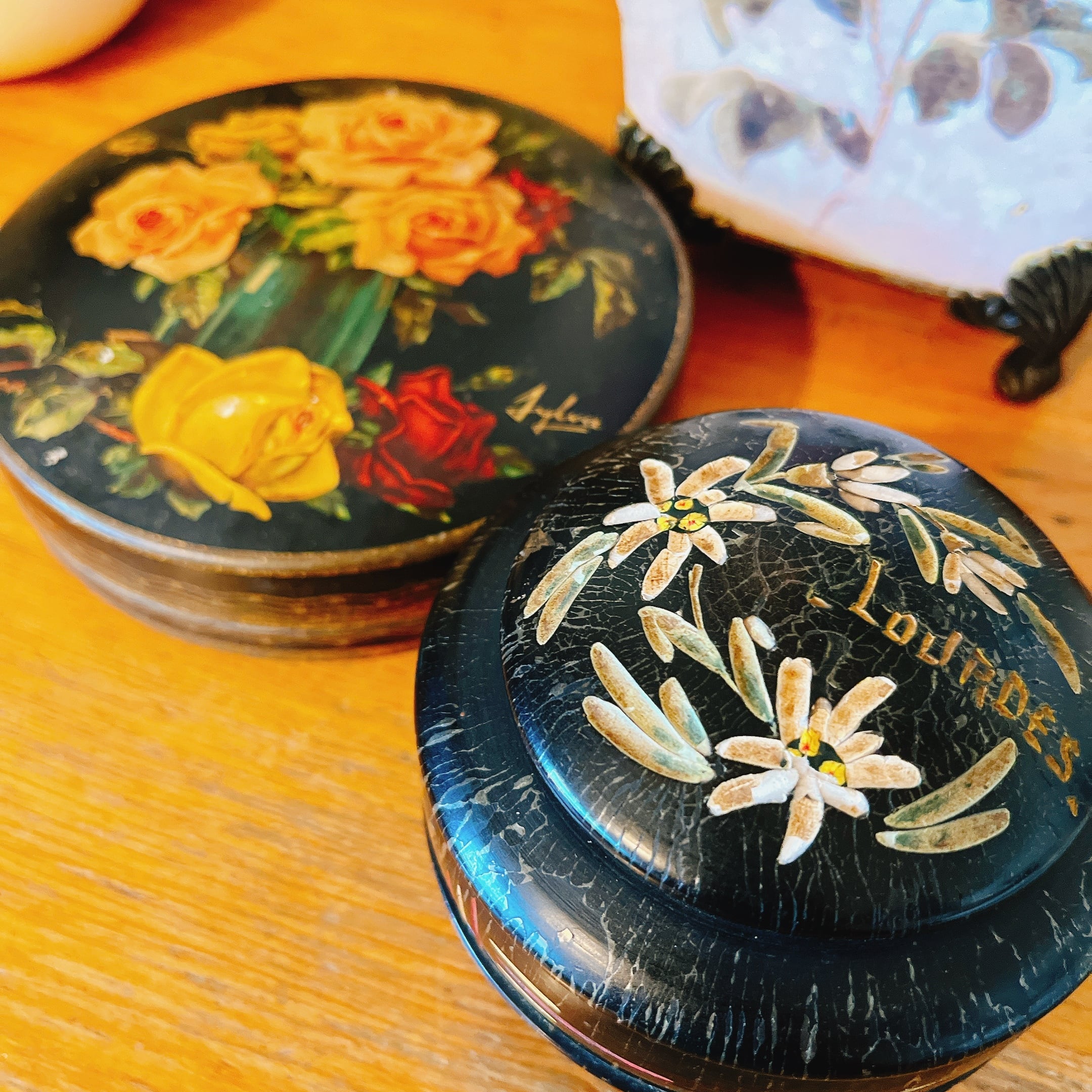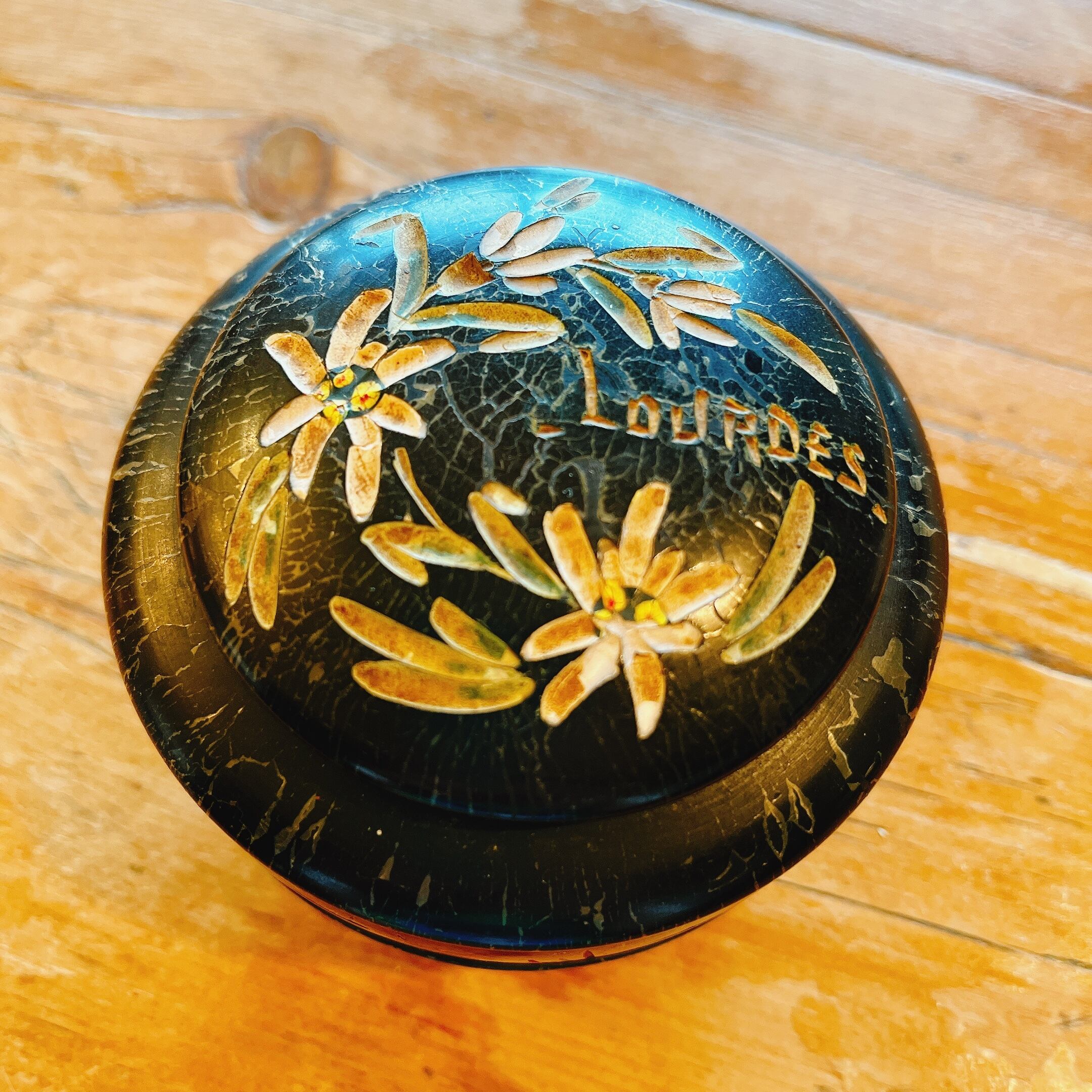 ルルドのお土産?だったのか、フタにLOURDESの文字とエーデルワイスの花が彫られている小物入れです。