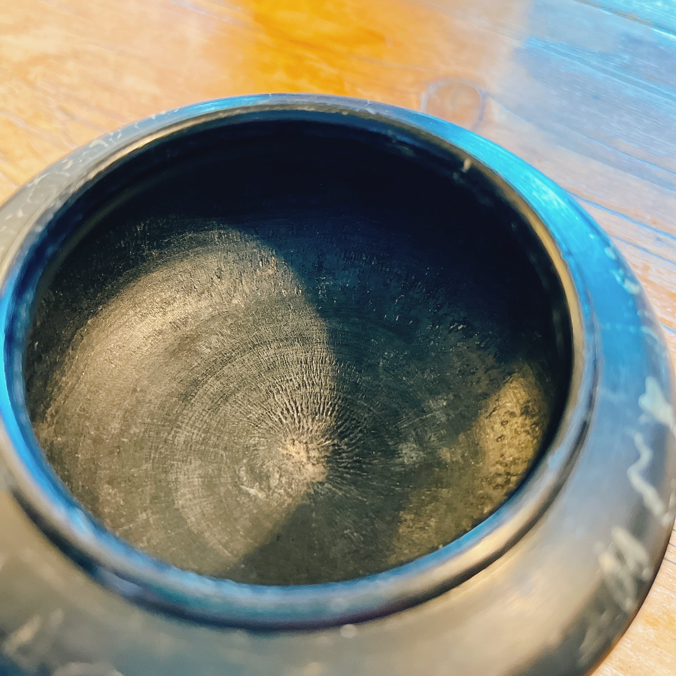 1個の木片から作られているようで、足の部分以外に接続部分が無く、内側は丸く彫ってあります。