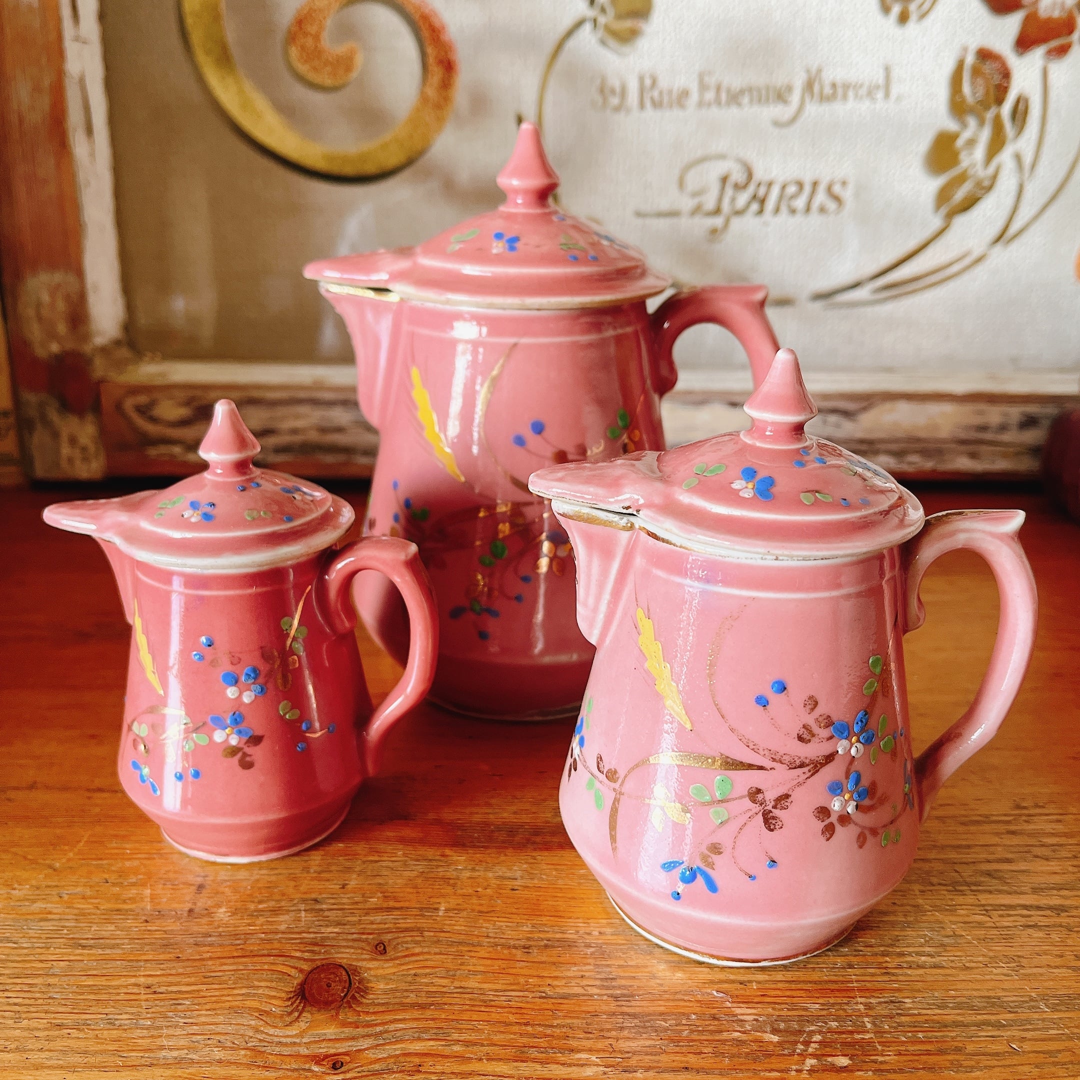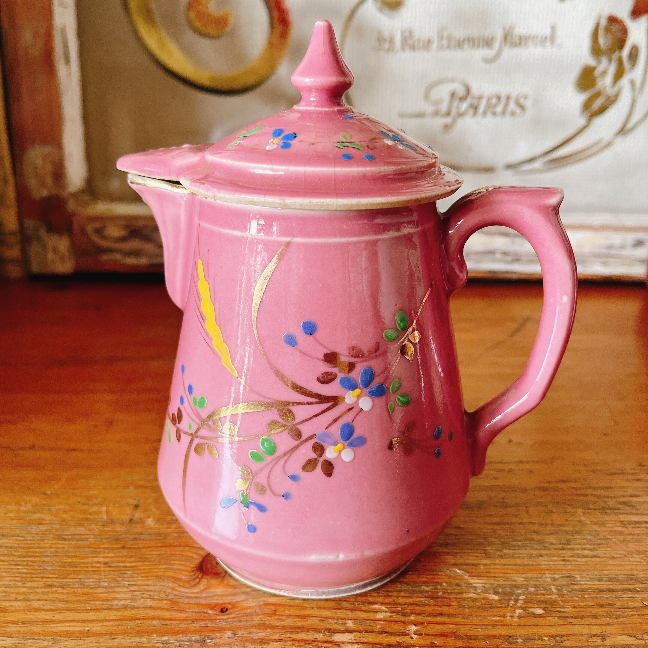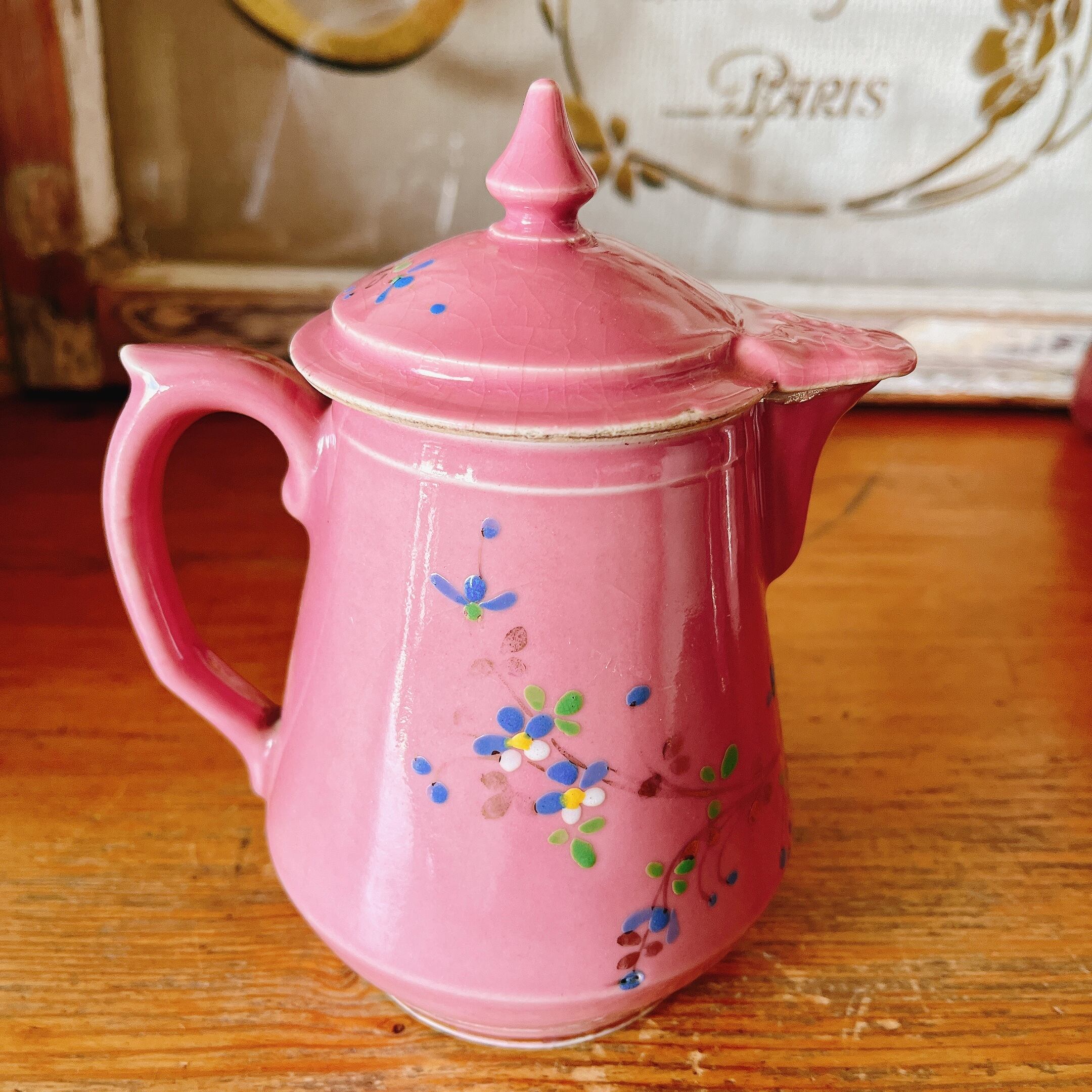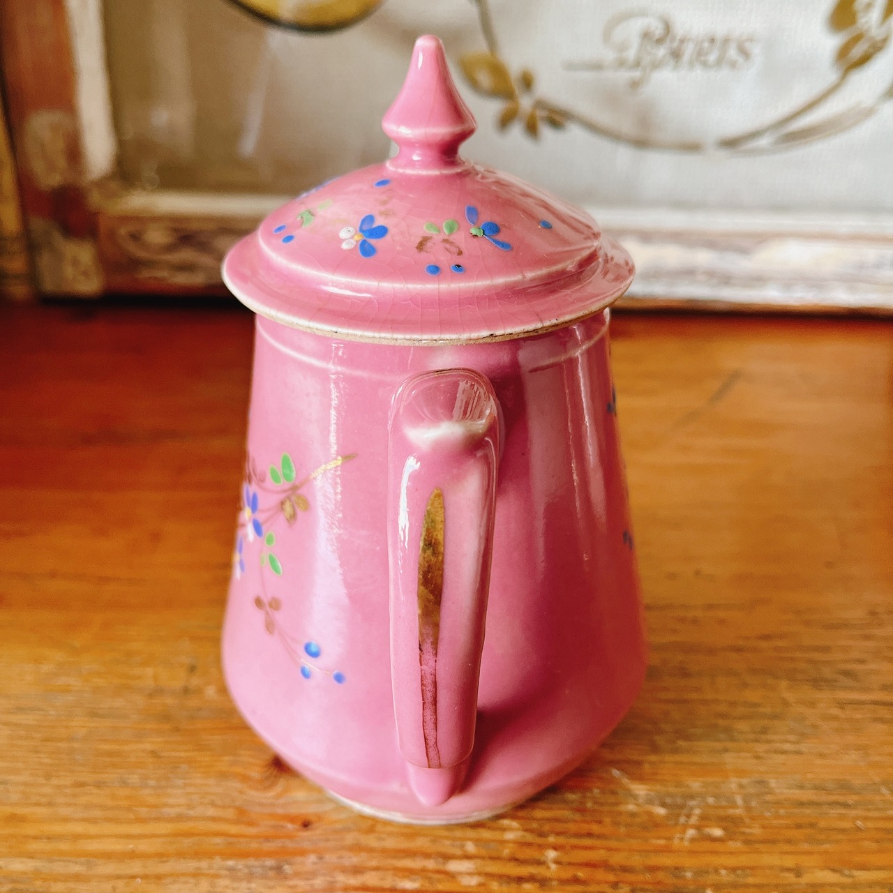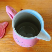 サンチューズの食器は、白地にブルーの柄が有名ですが、ピンク地にカラフルな色の絵柄はレアだと思います。