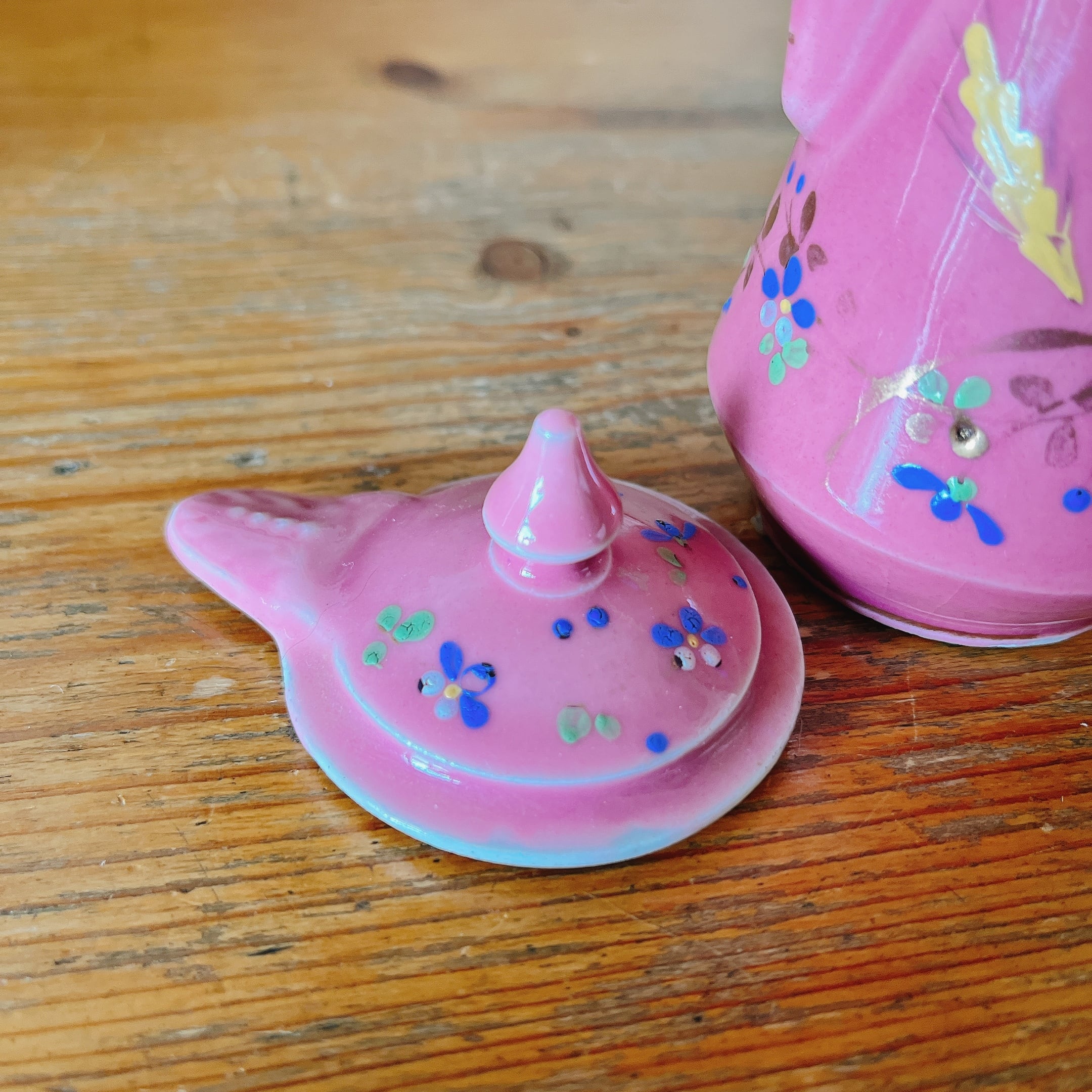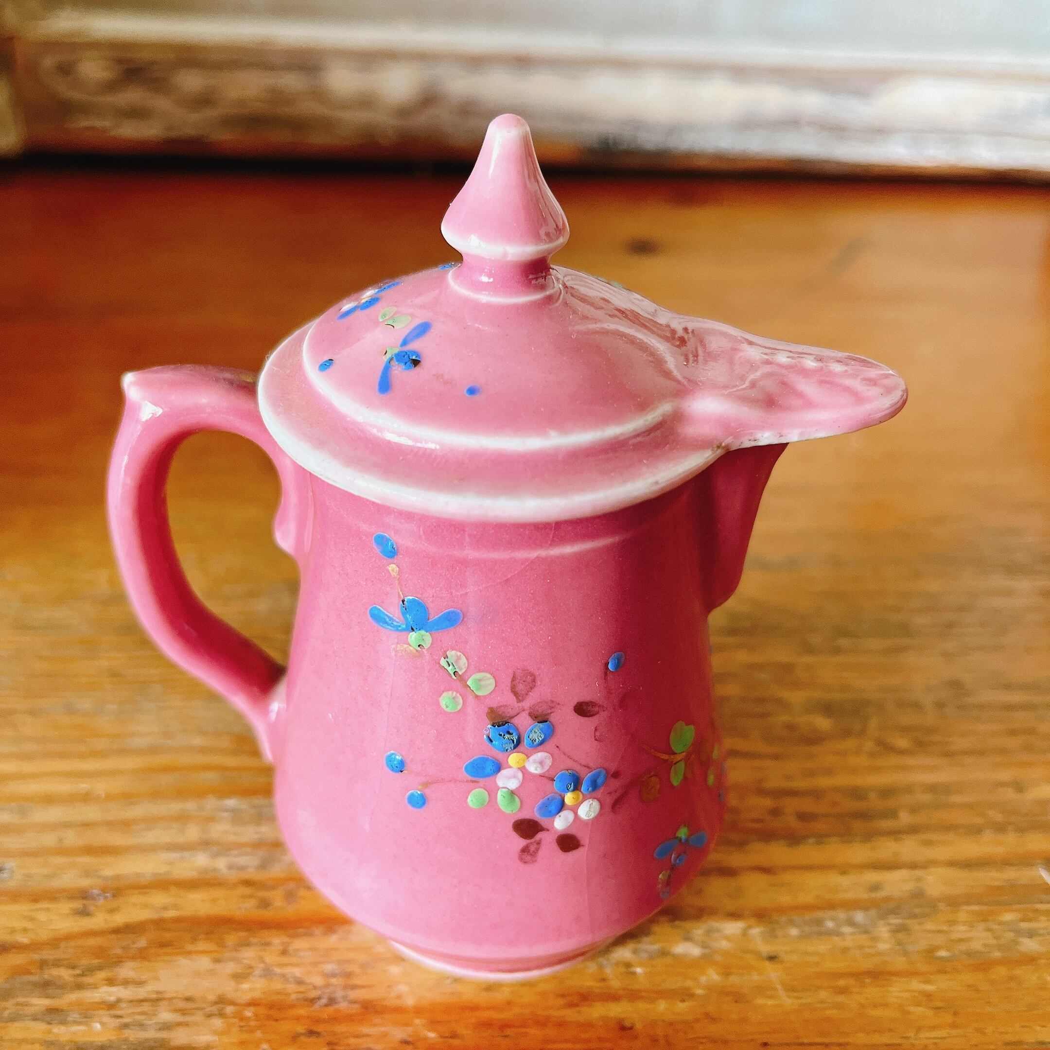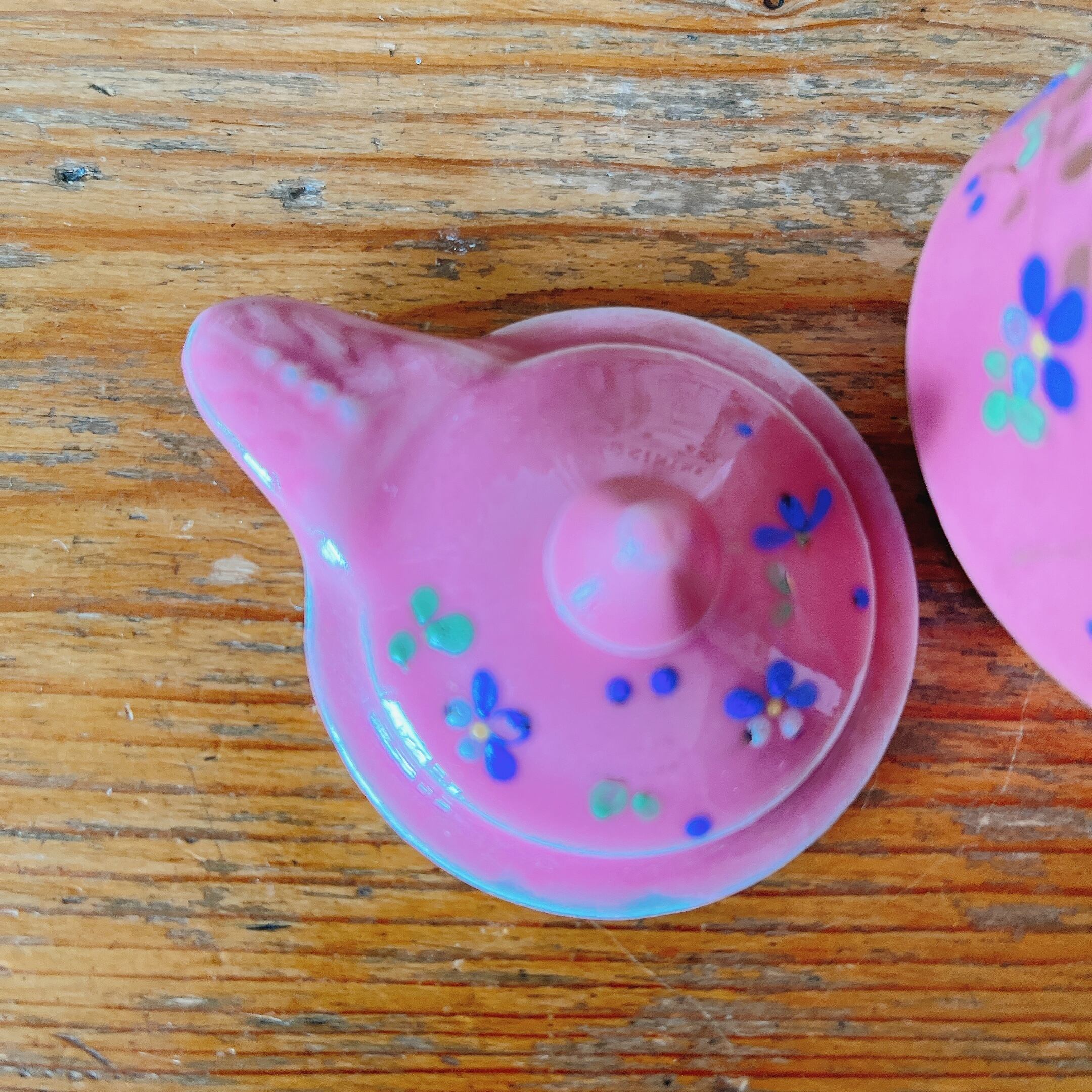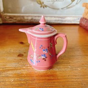 サンチューズの食器は、白地にブルーの柄が有名ですが、ピンク地にカラフルな色の絵柄はレアだと思います。