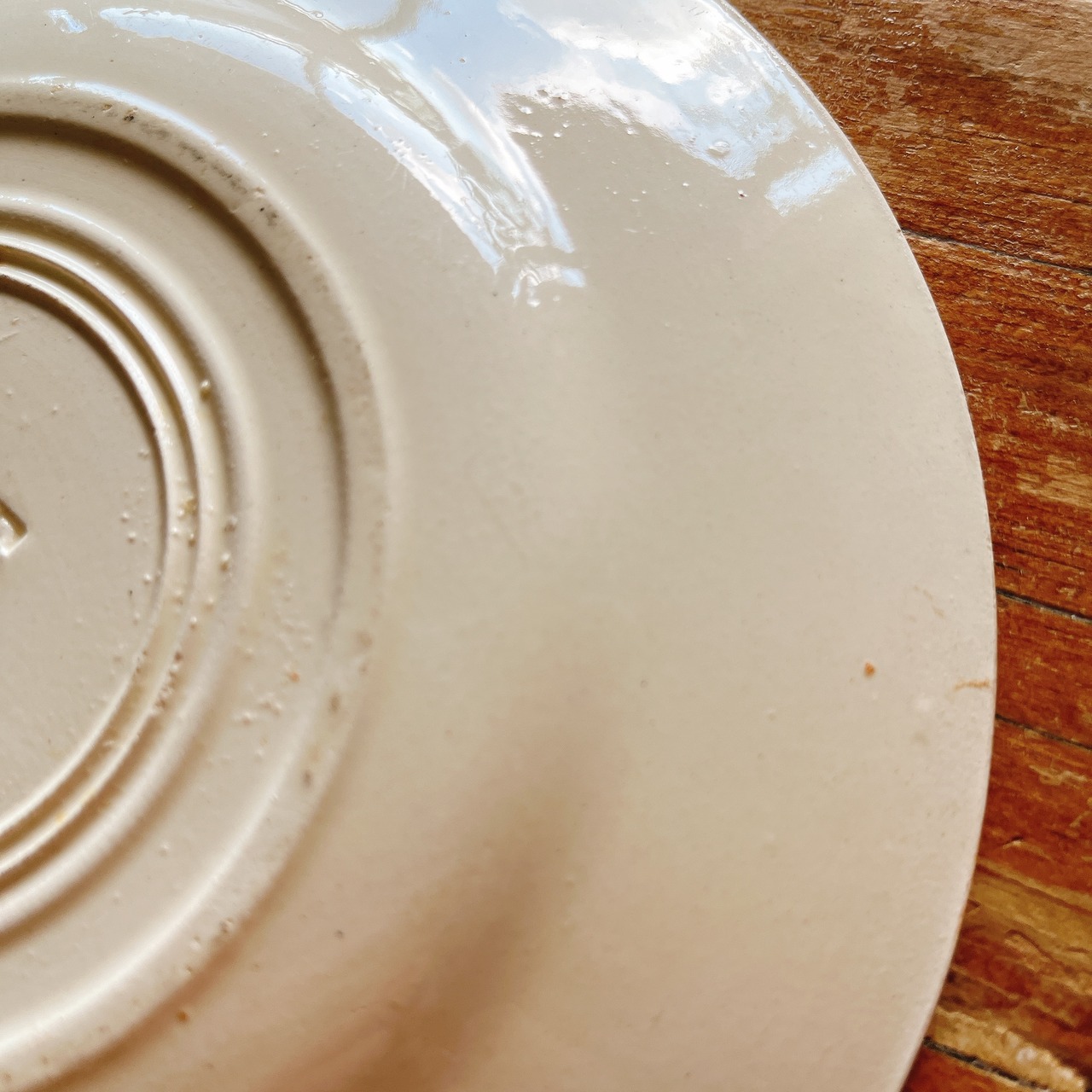 こちらは、釉薬?のキメが荒く、全体にザラつきが多めです。少し薄い染みがあります。