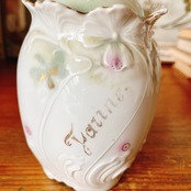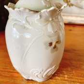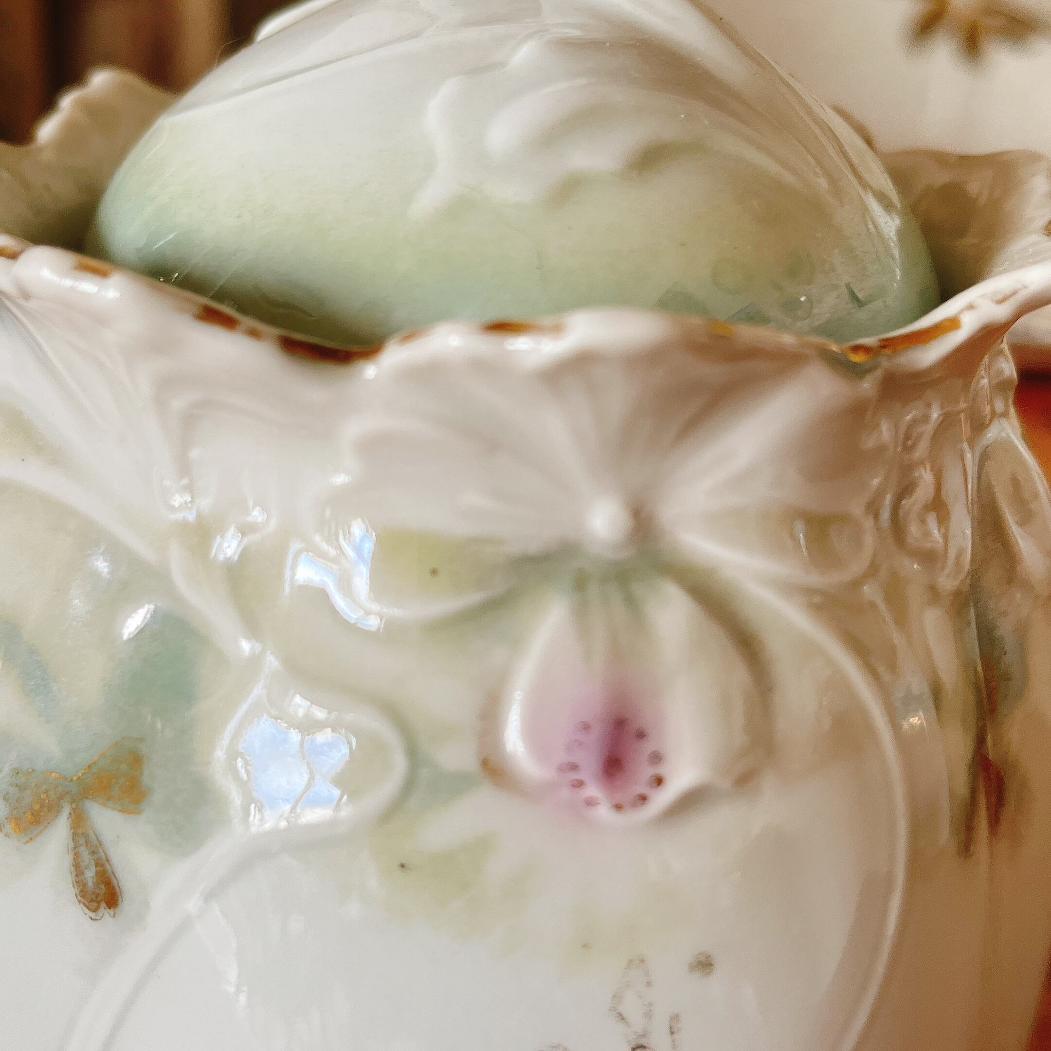 優しい曲線で描かれた花のレリーフが美しく、ふんわりした色彩のクローバーや水玉模様が可愛い♡