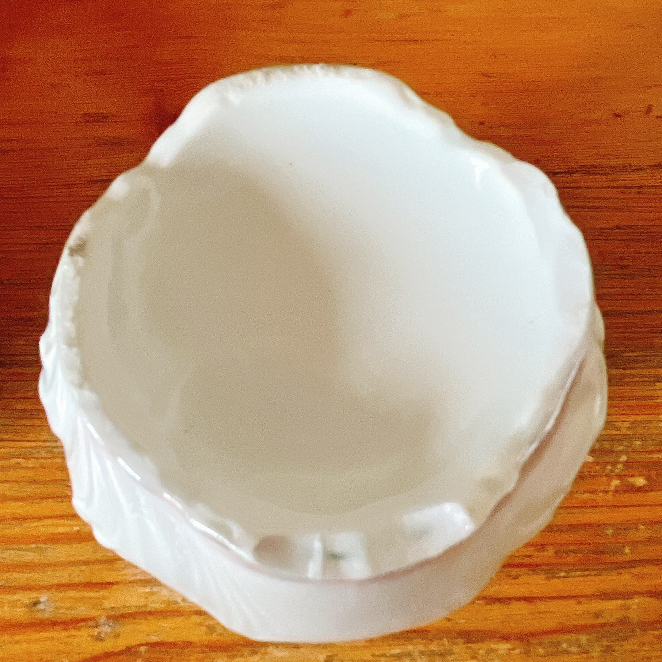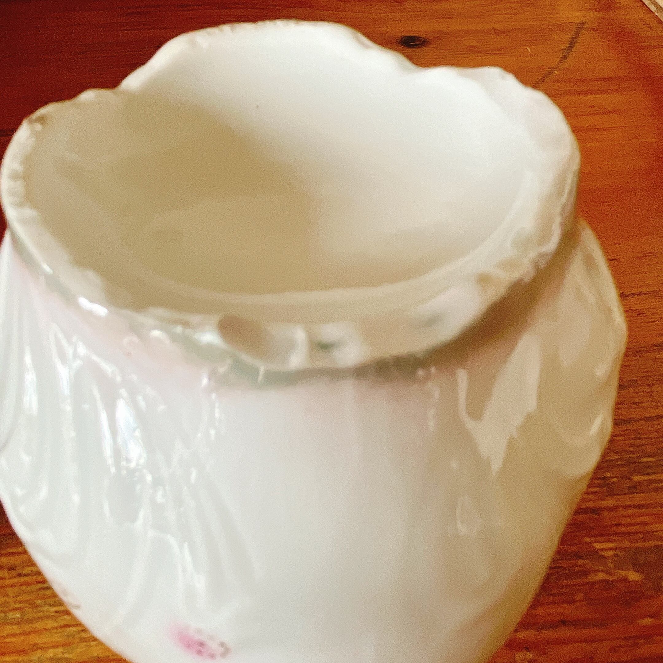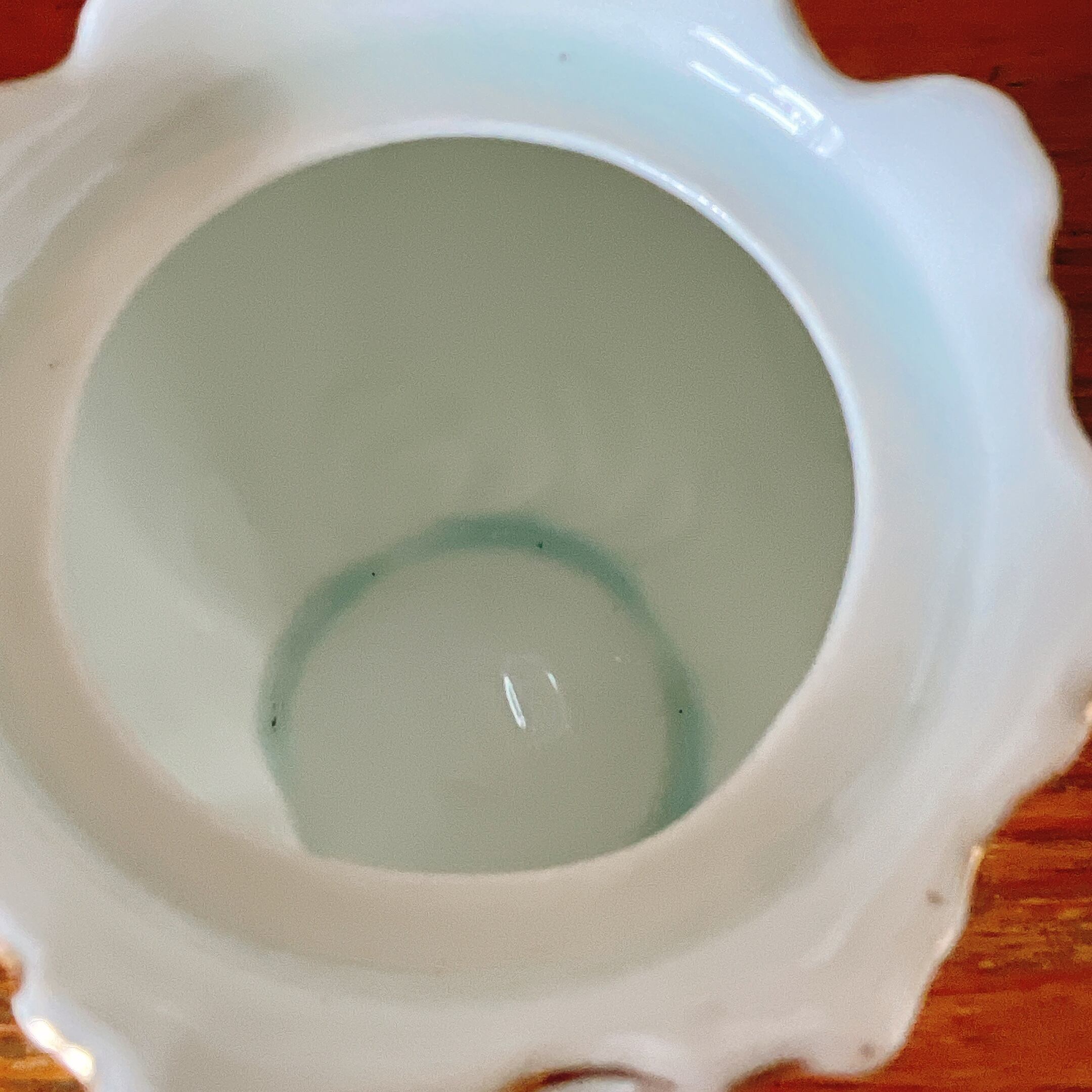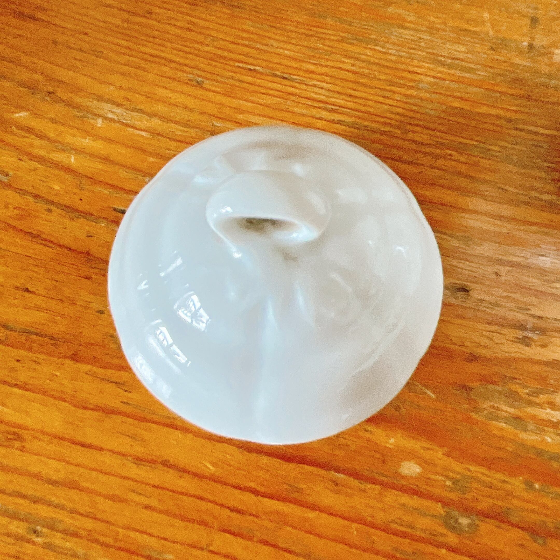 金彩の擦れと、こちらはフタが違う物が代品になっています。フタが入らなかったようで、突起部分が削られています。あと、底の足に欠けがありますが、置いてしまうとほぼ見えません。