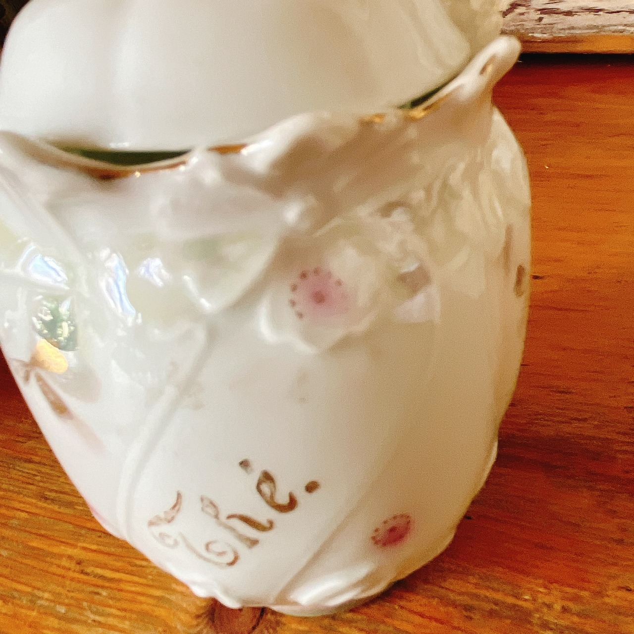優しい曲線で描かれた花のレリーフが美しく、ふんわりした色彩のクローバーや水玉模様が可愛い♡