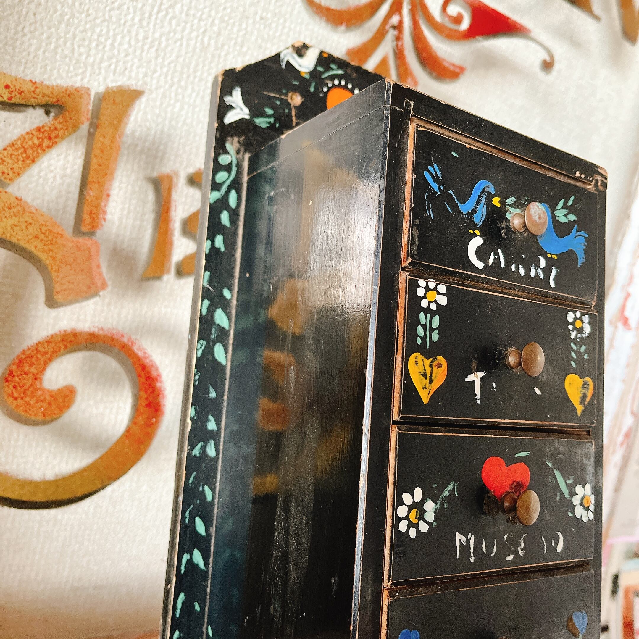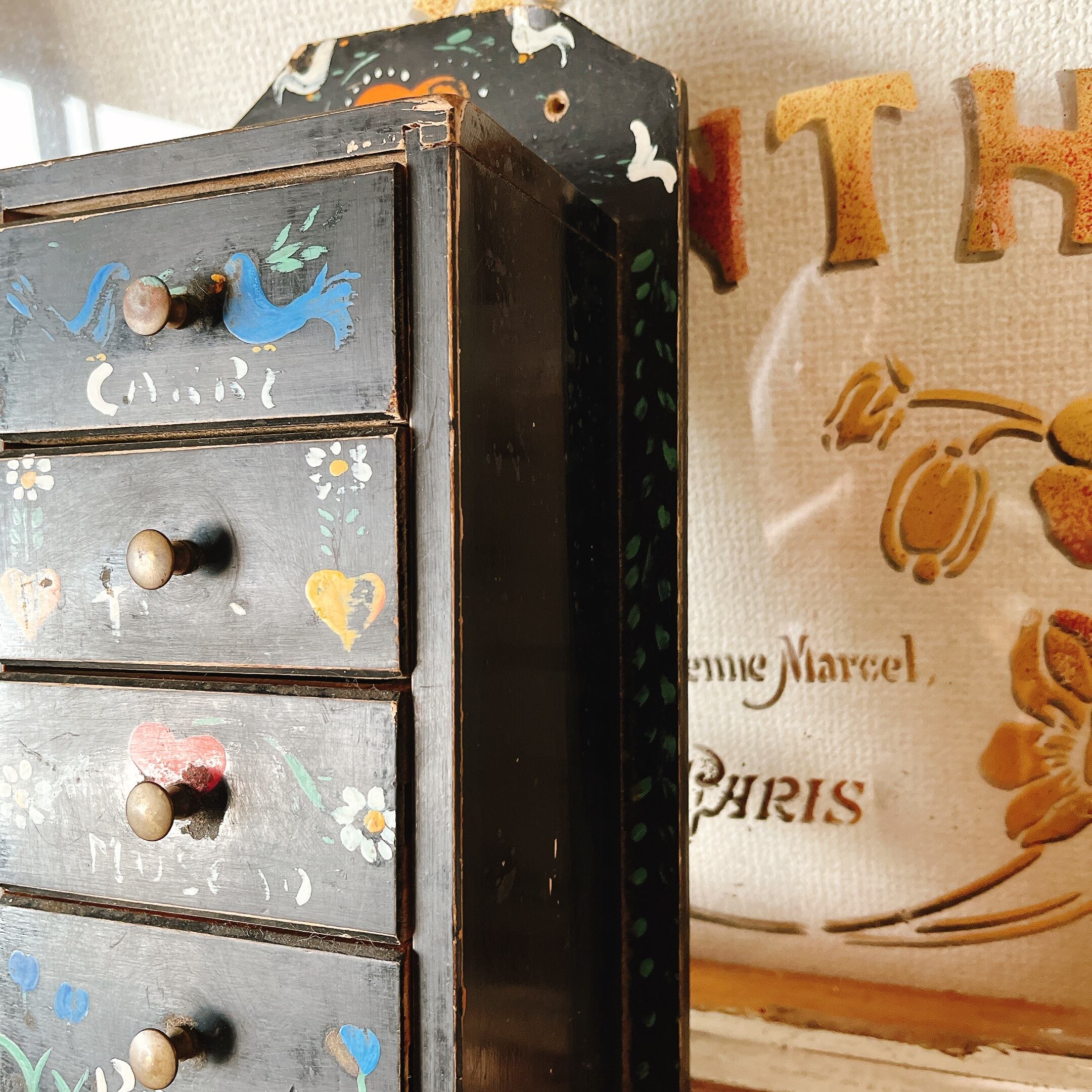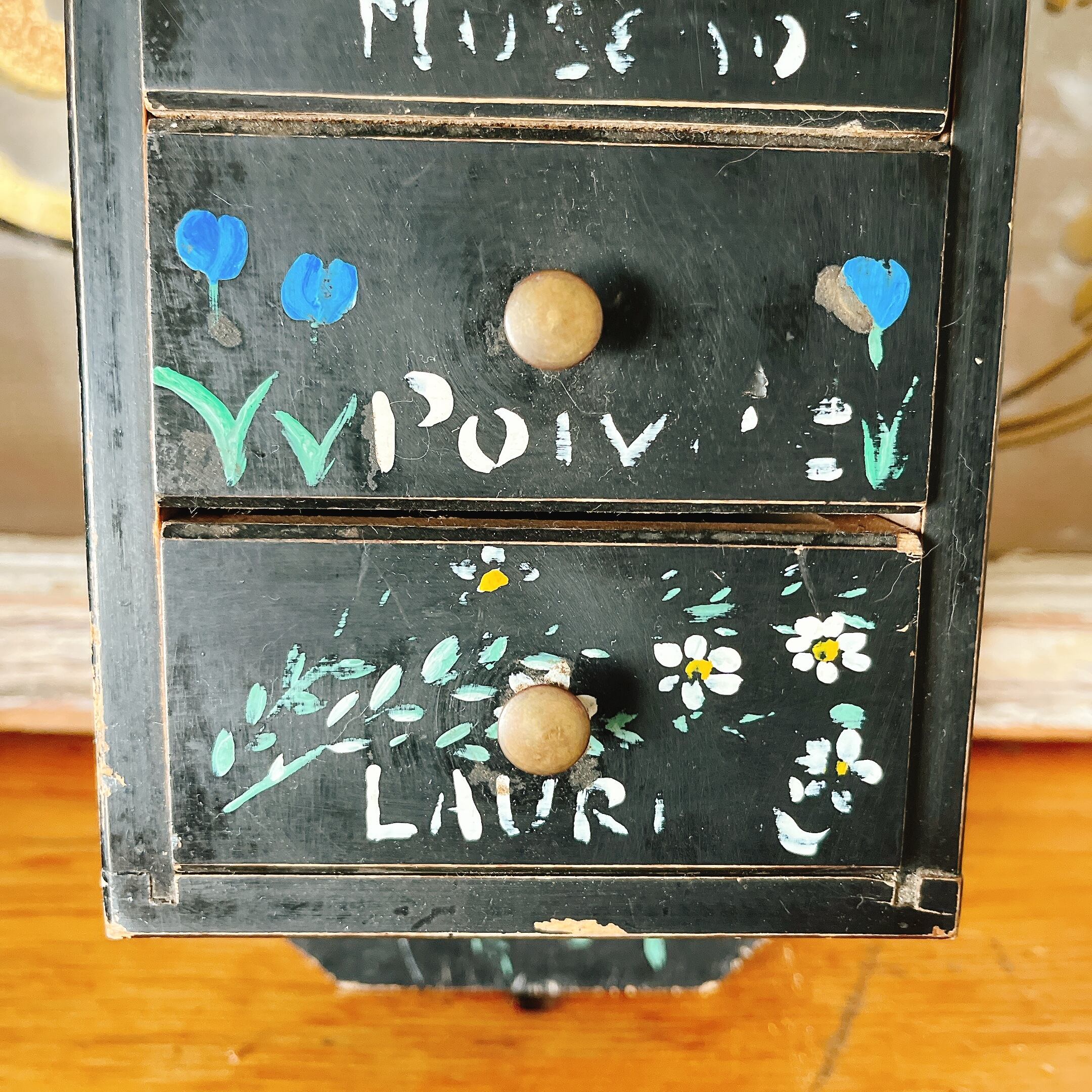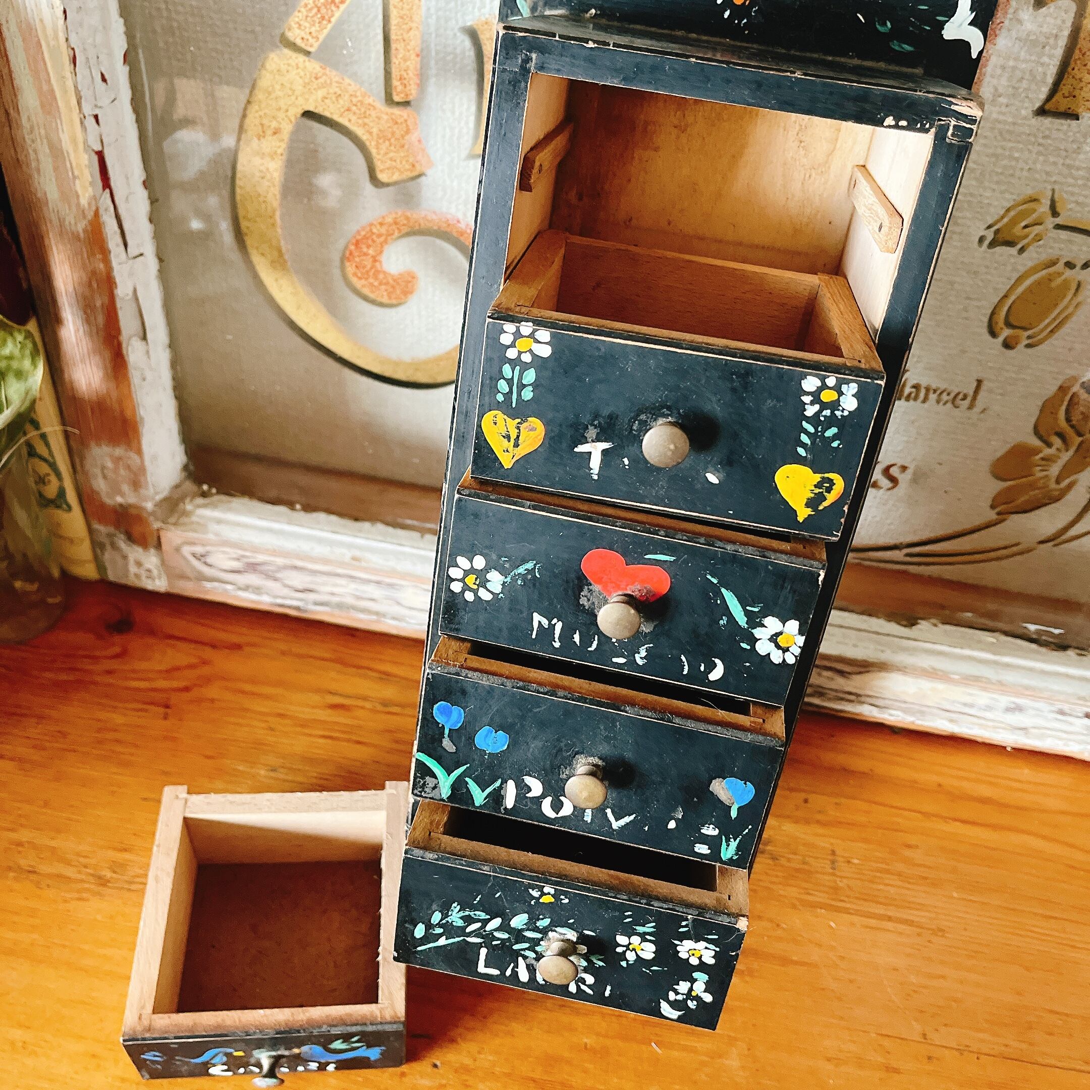 可愛い絵付けが施されたミニチェストです。