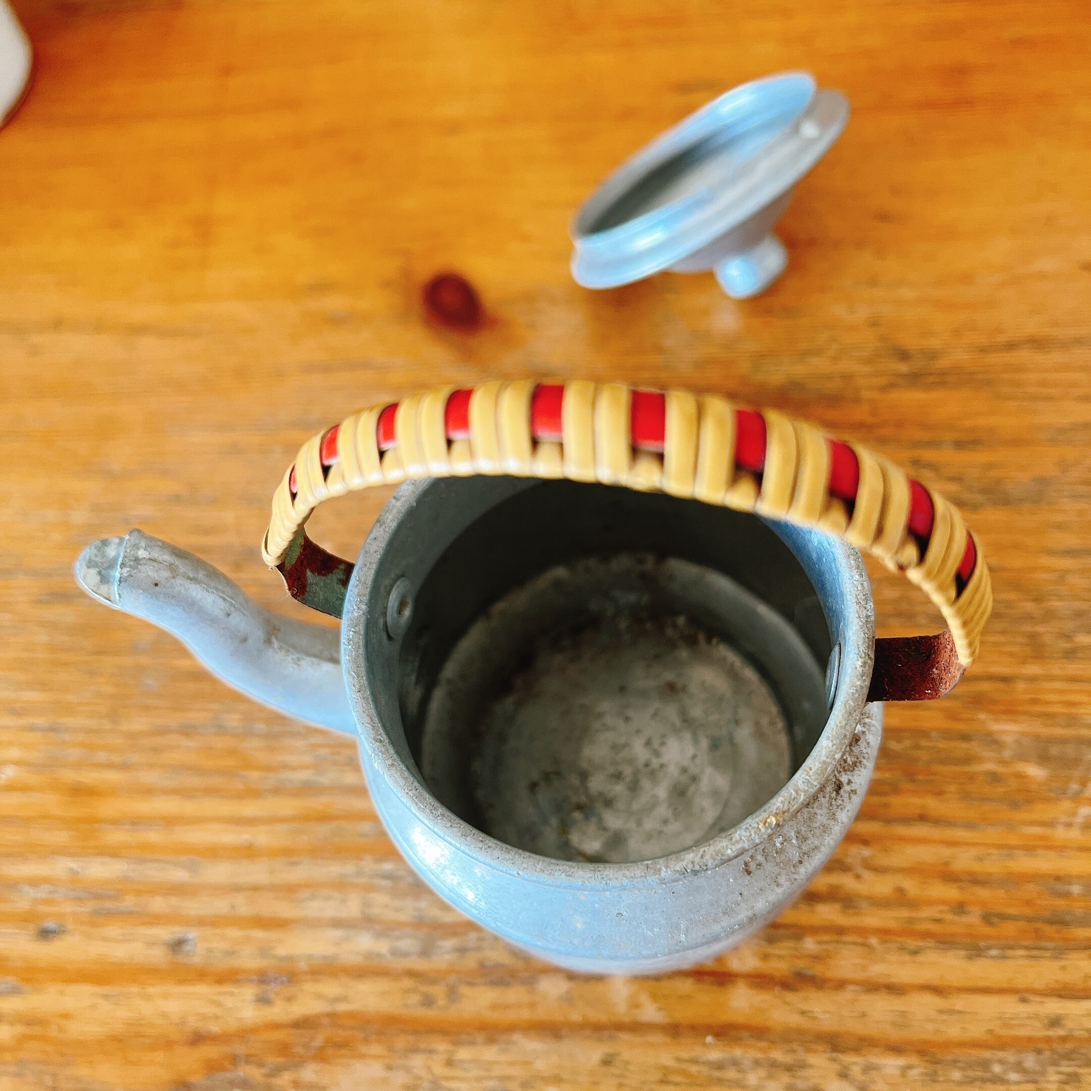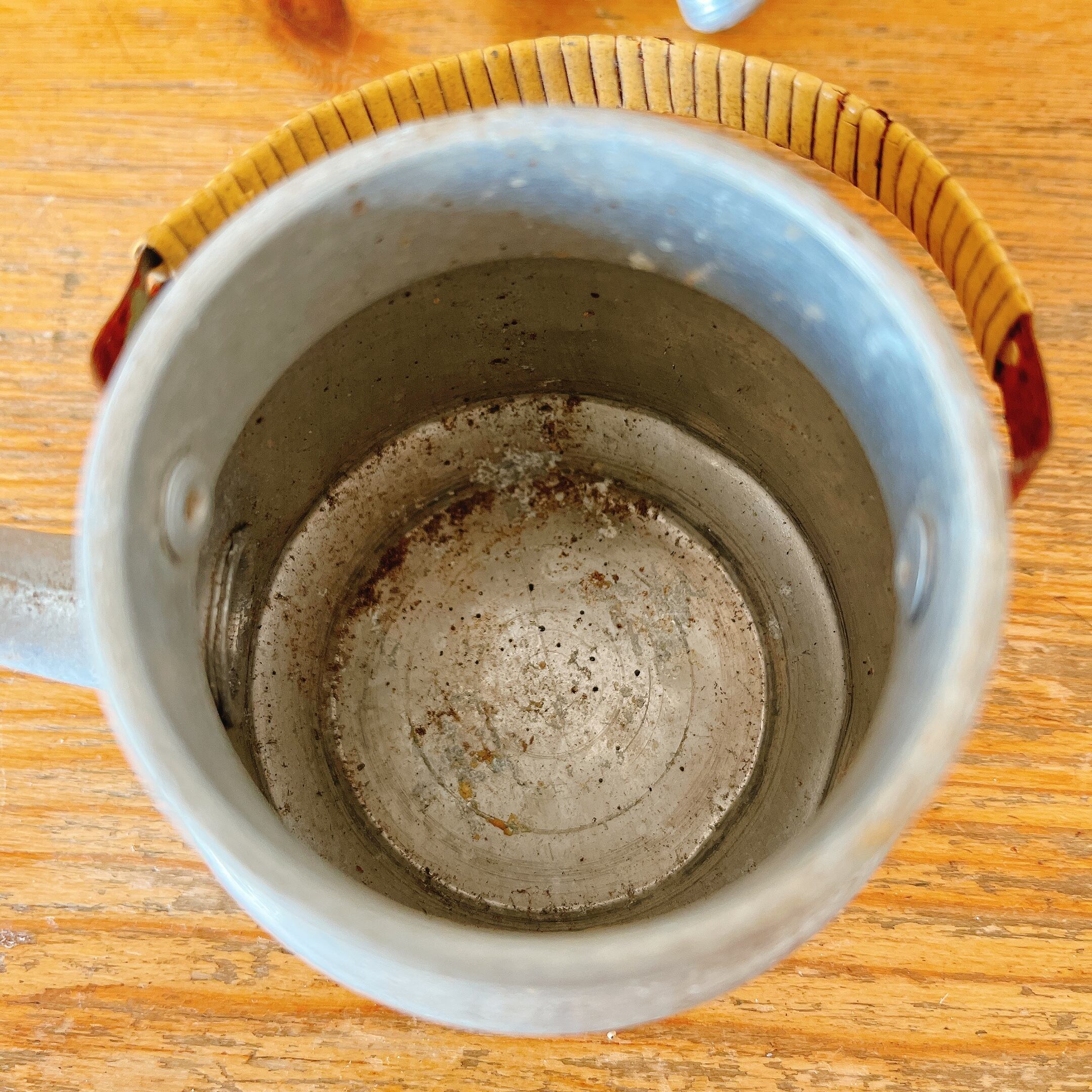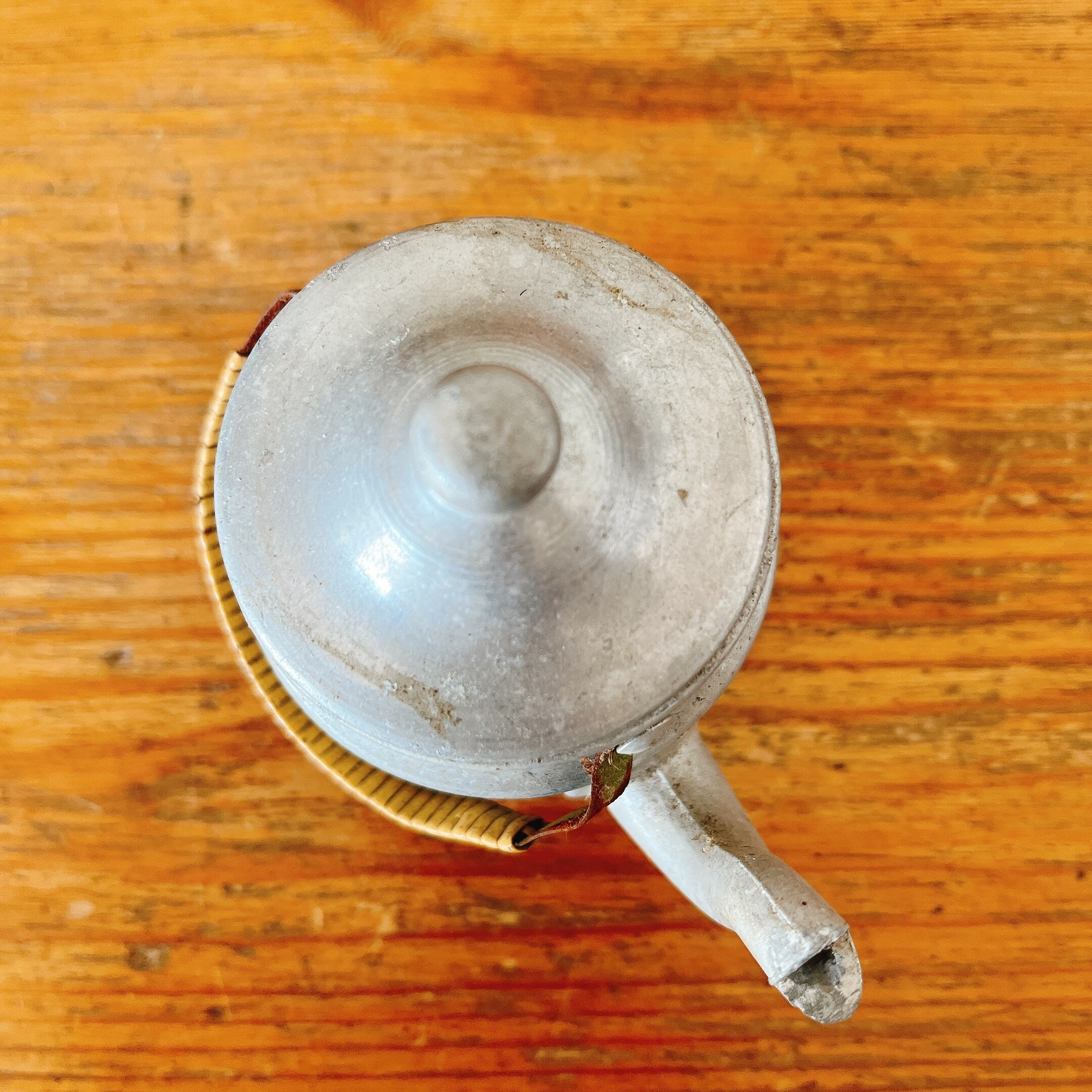 籐の持ち手が可愛い、アルミのディネットのミニケトル。