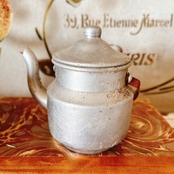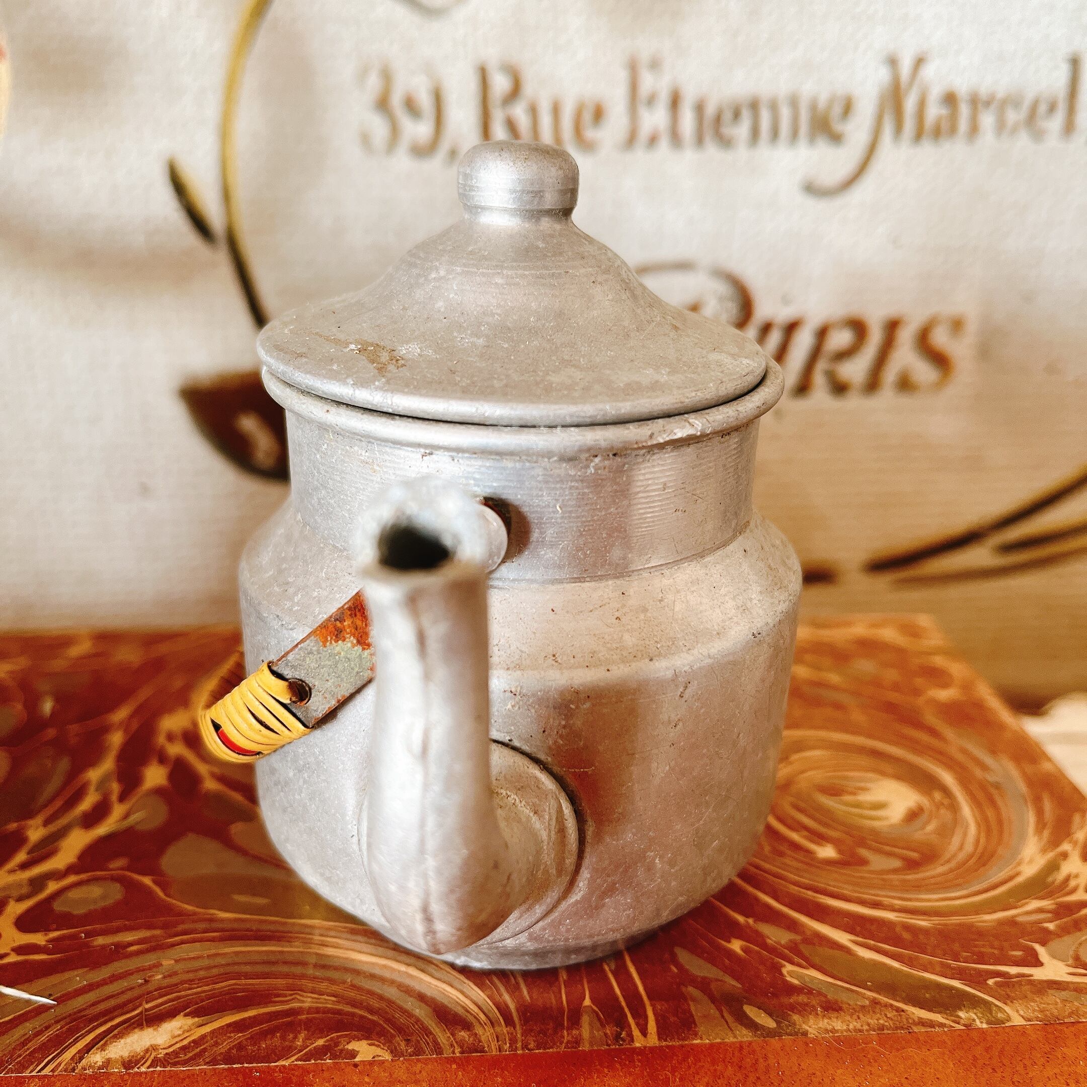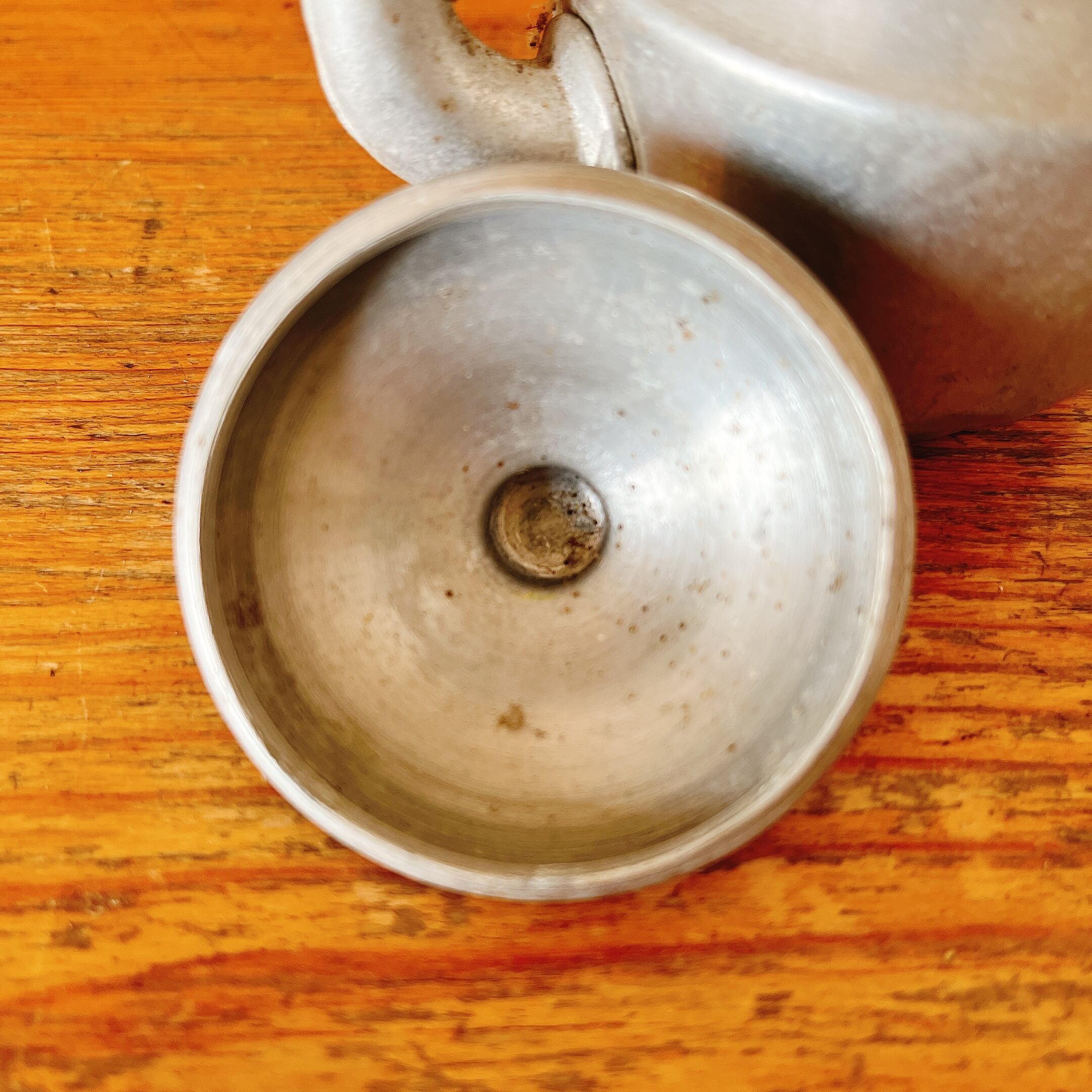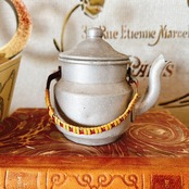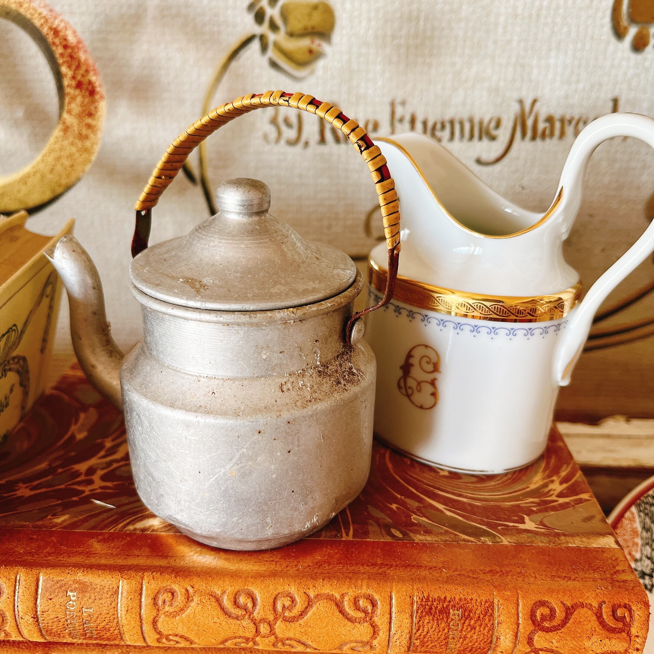 籐の持ち手が可愛い、アルミのディネットのミニケトル。