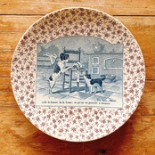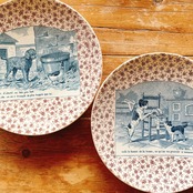 ブラウンの小花の中に、ワンコ達の可愛い様子が描かれた4枚のうちの1枚です。