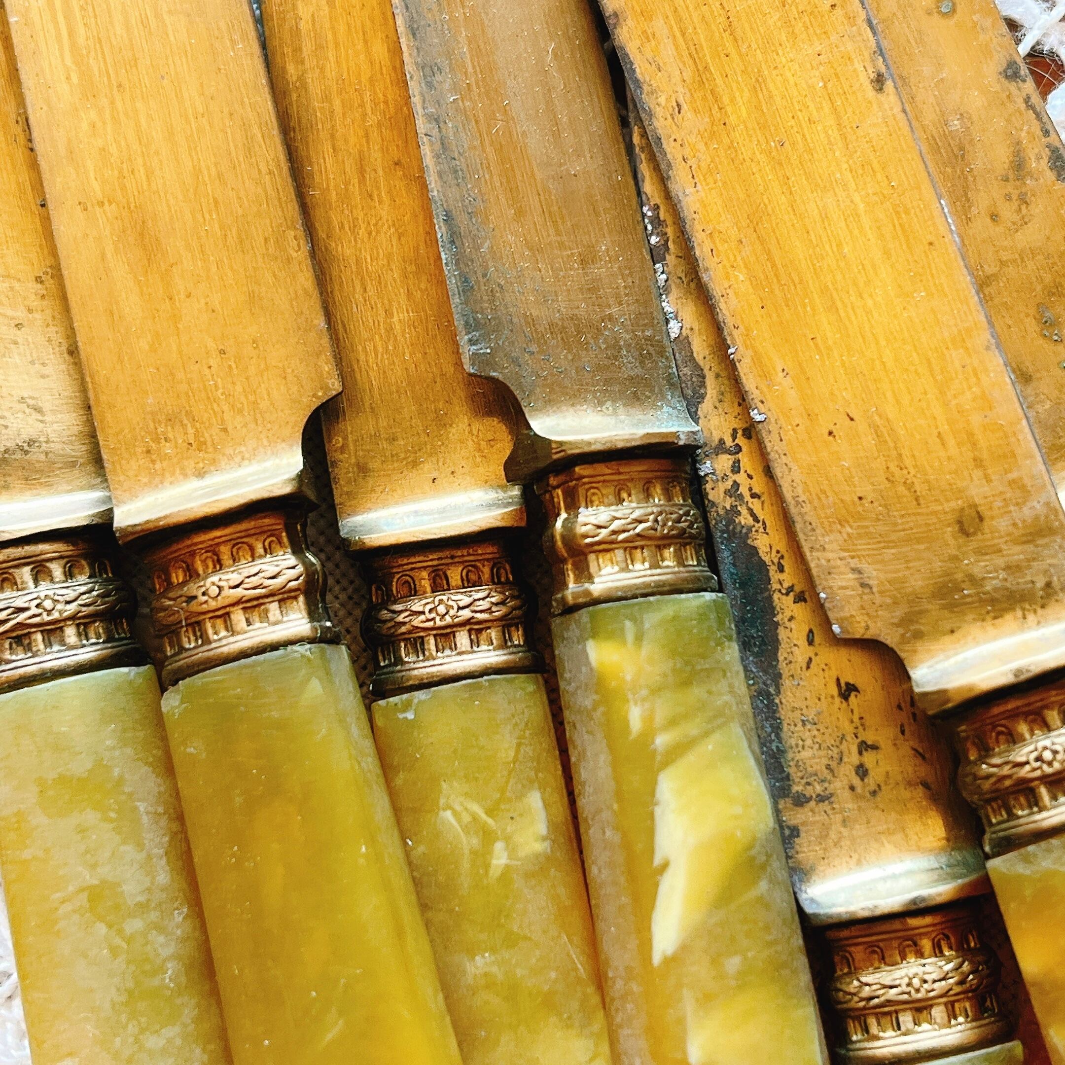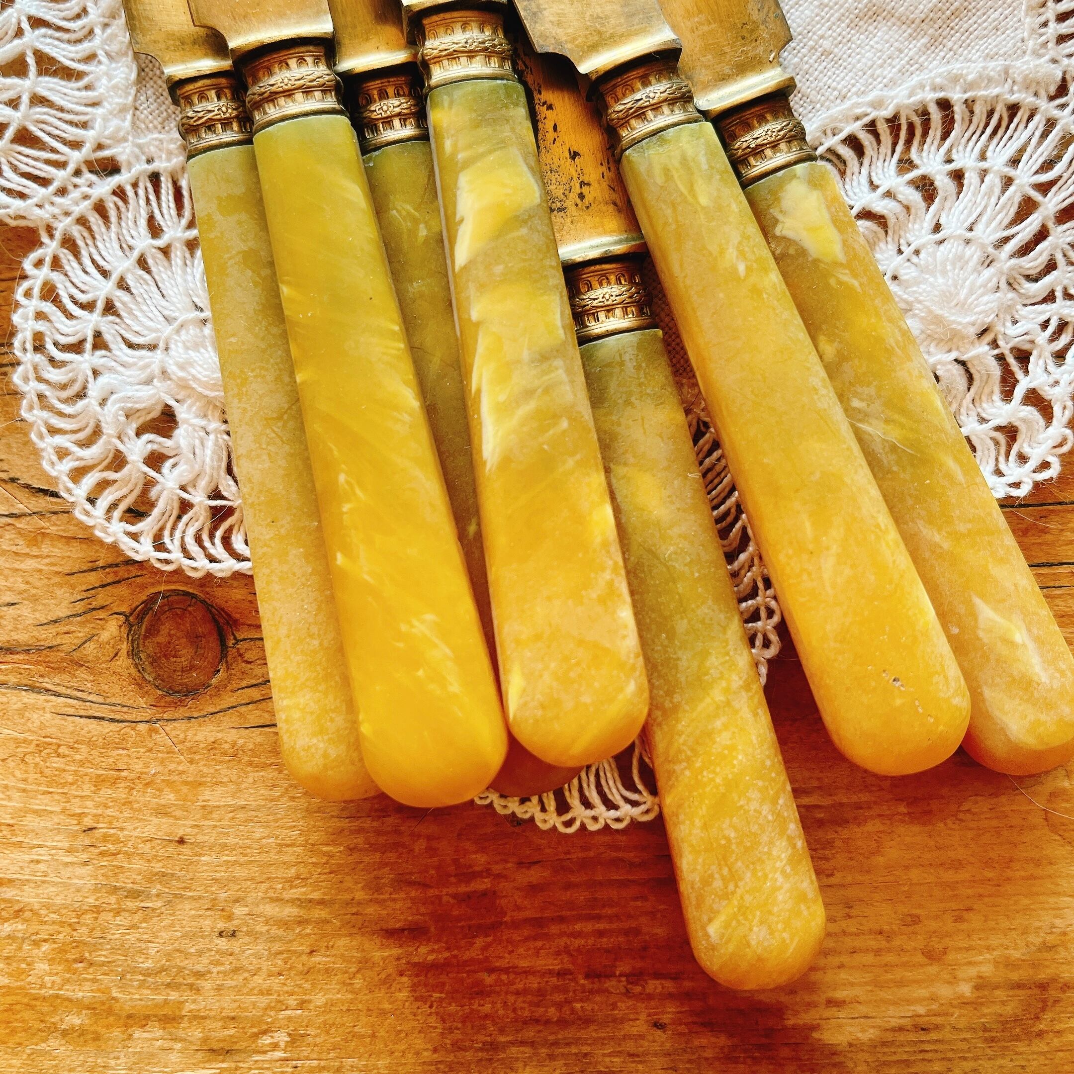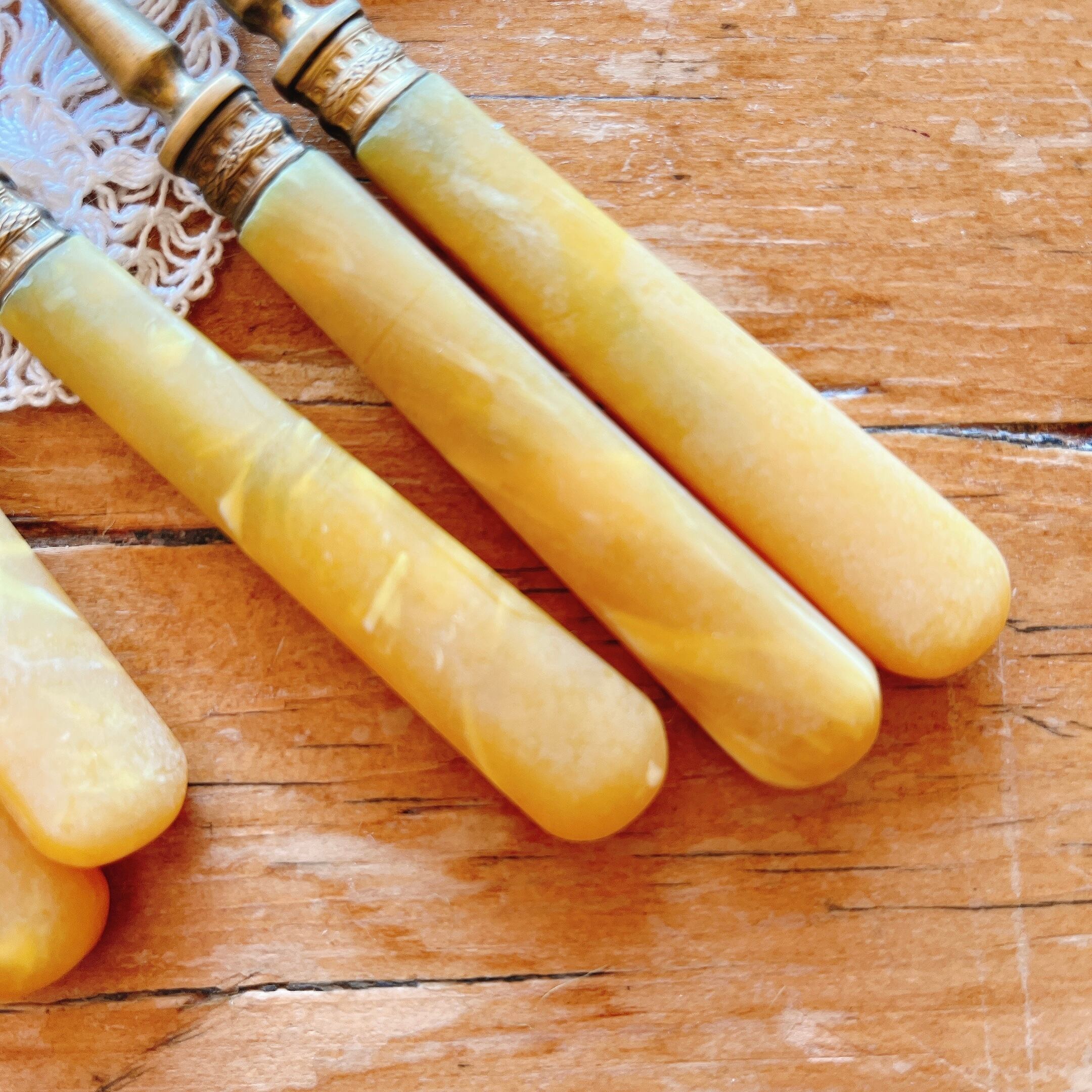 世界最初のプラスチックと言われる黄色のベークライトの持ち手と、細身の形がとってもオシャレ♡