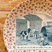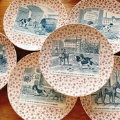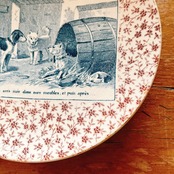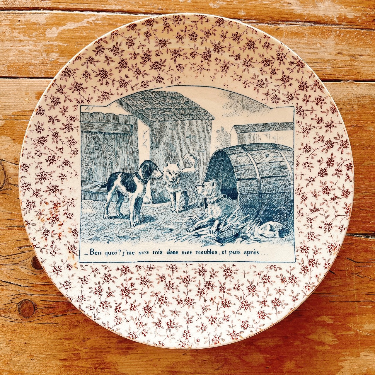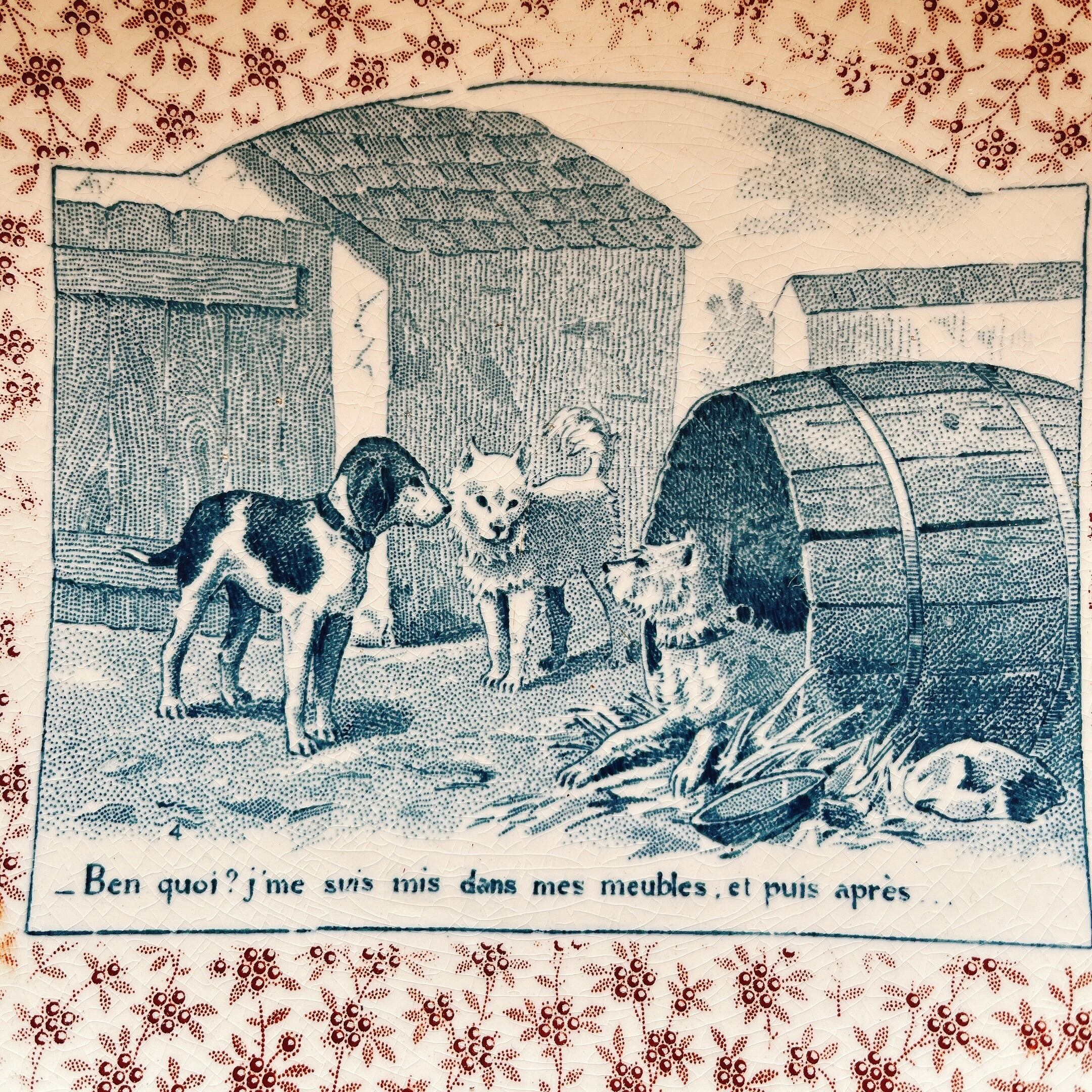 ブラウンの小花の中に、ワンコ達の可愛い様子が描かれた6枚の中の一枚。