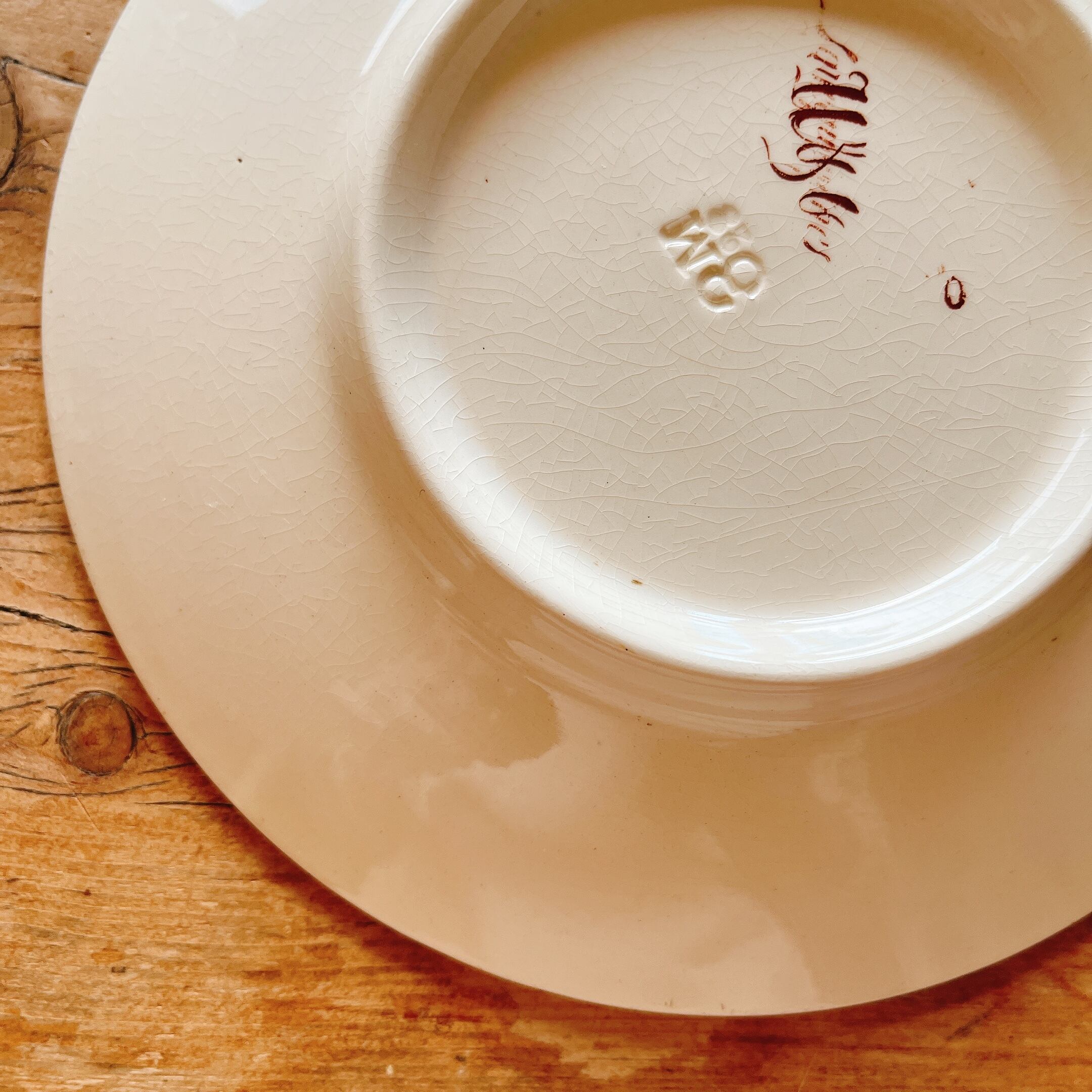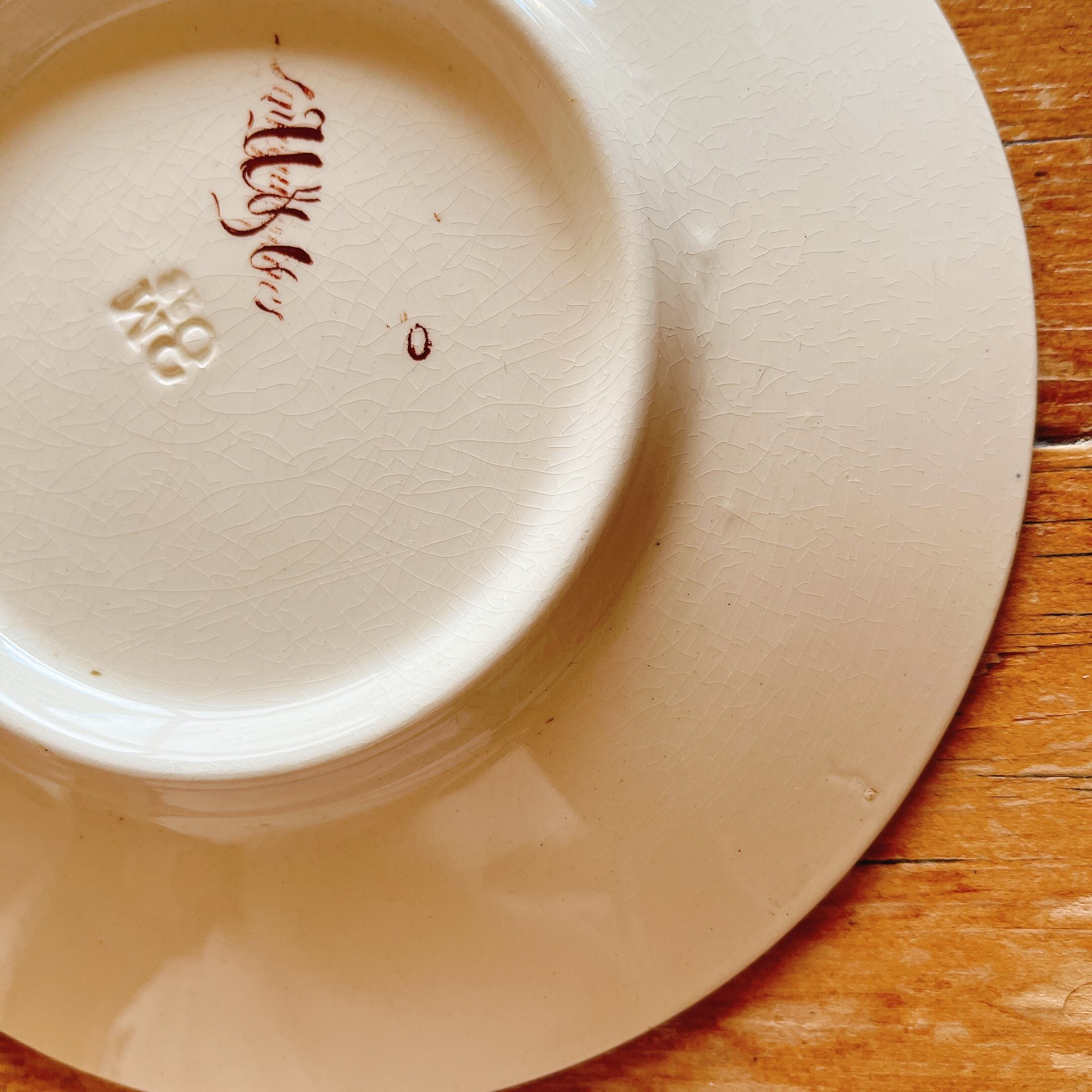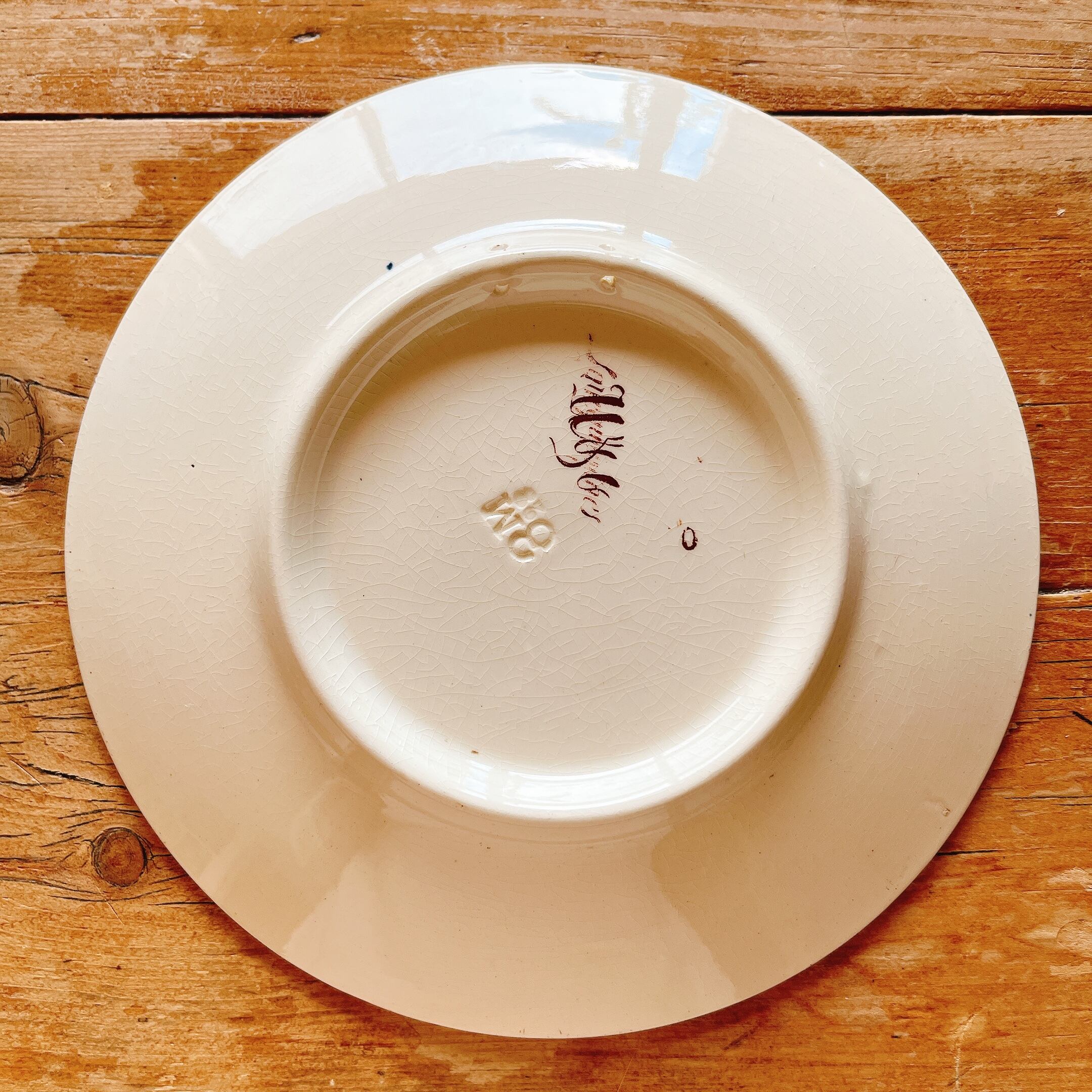全体に細かい貫入とフチに2箇所小さなチップのような傷はありますが、ツヤもありヒビ、欠け無く美品です。