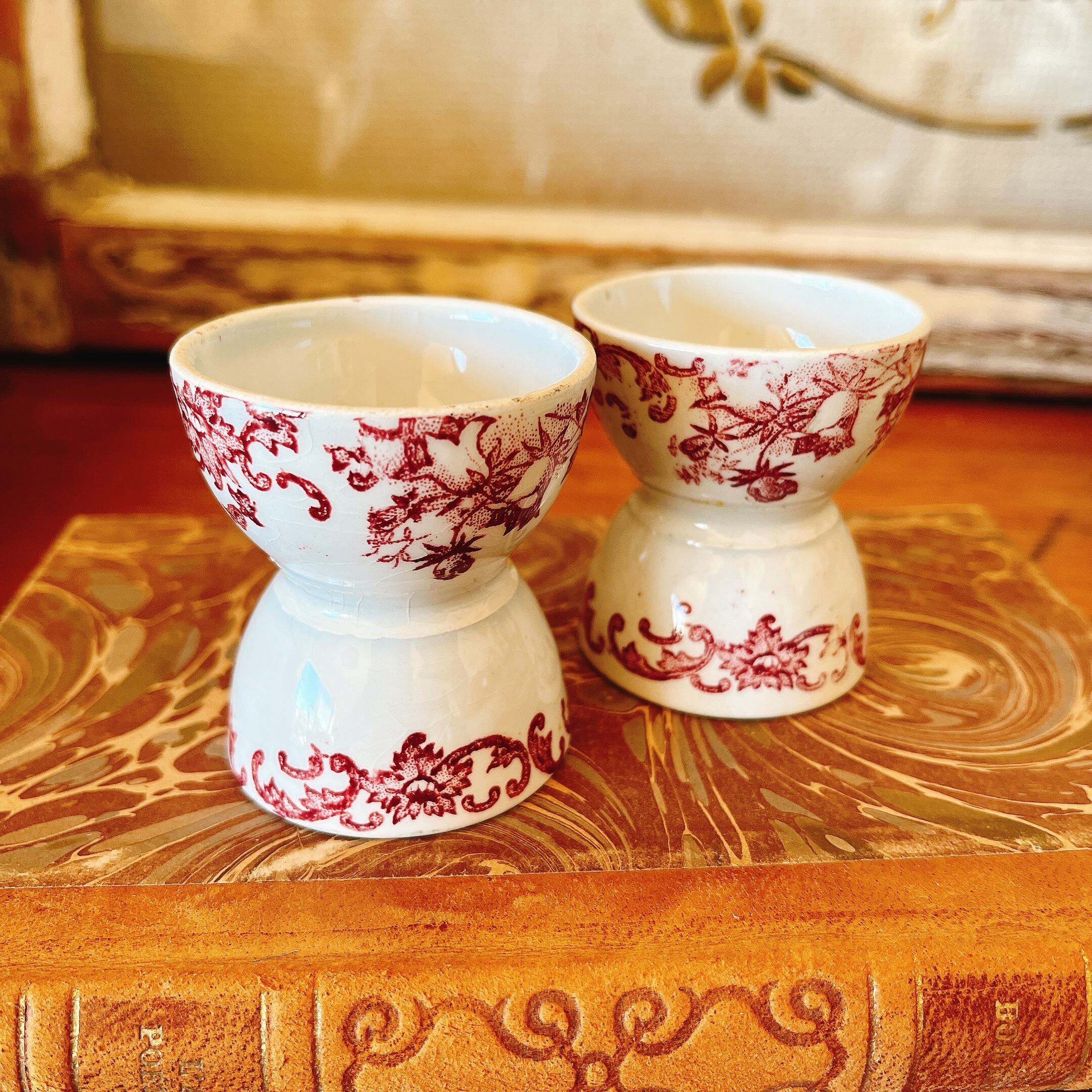 A 可愛い赤い花柄のエッグスタンド