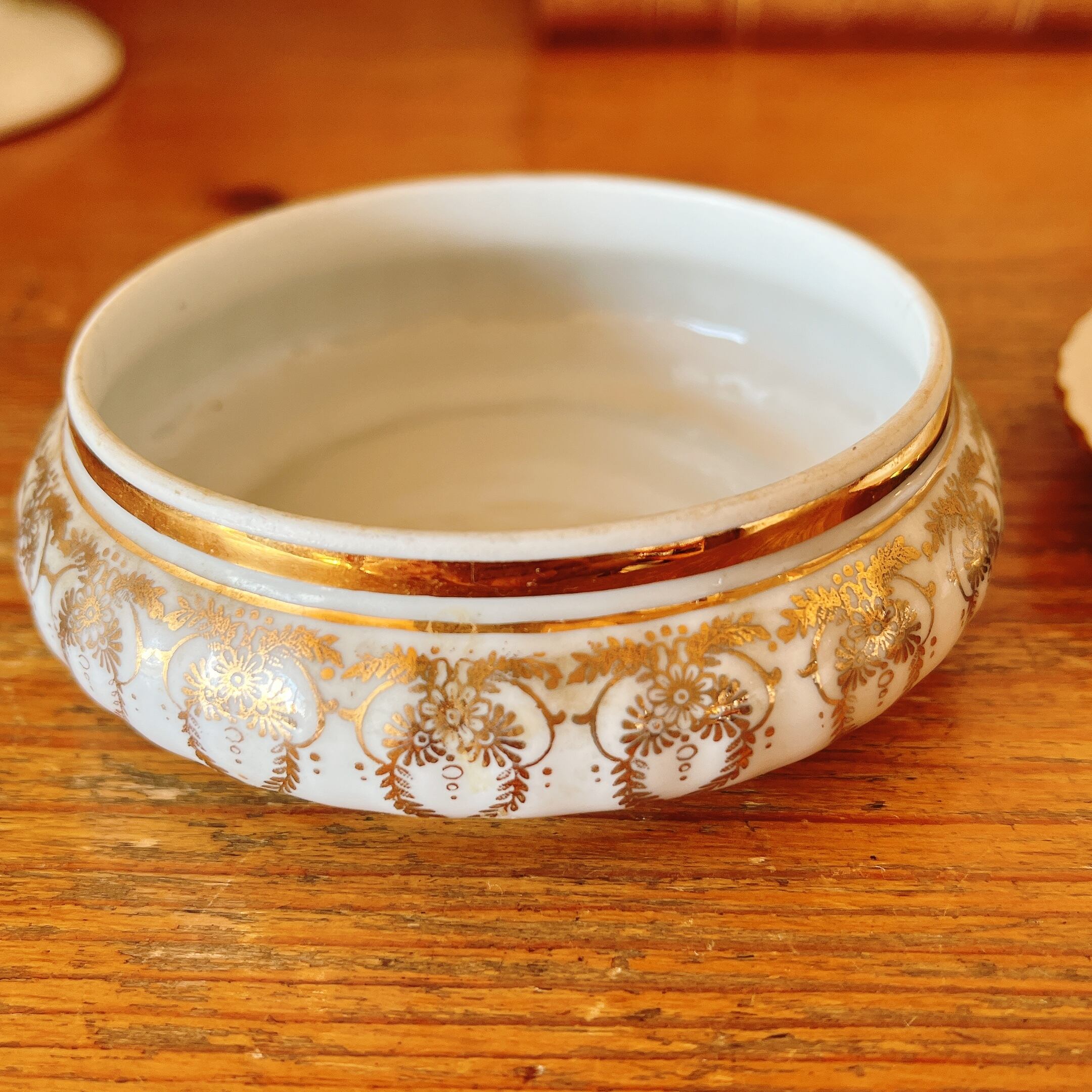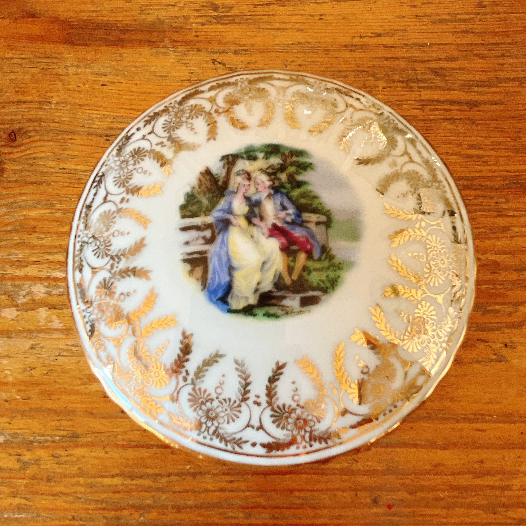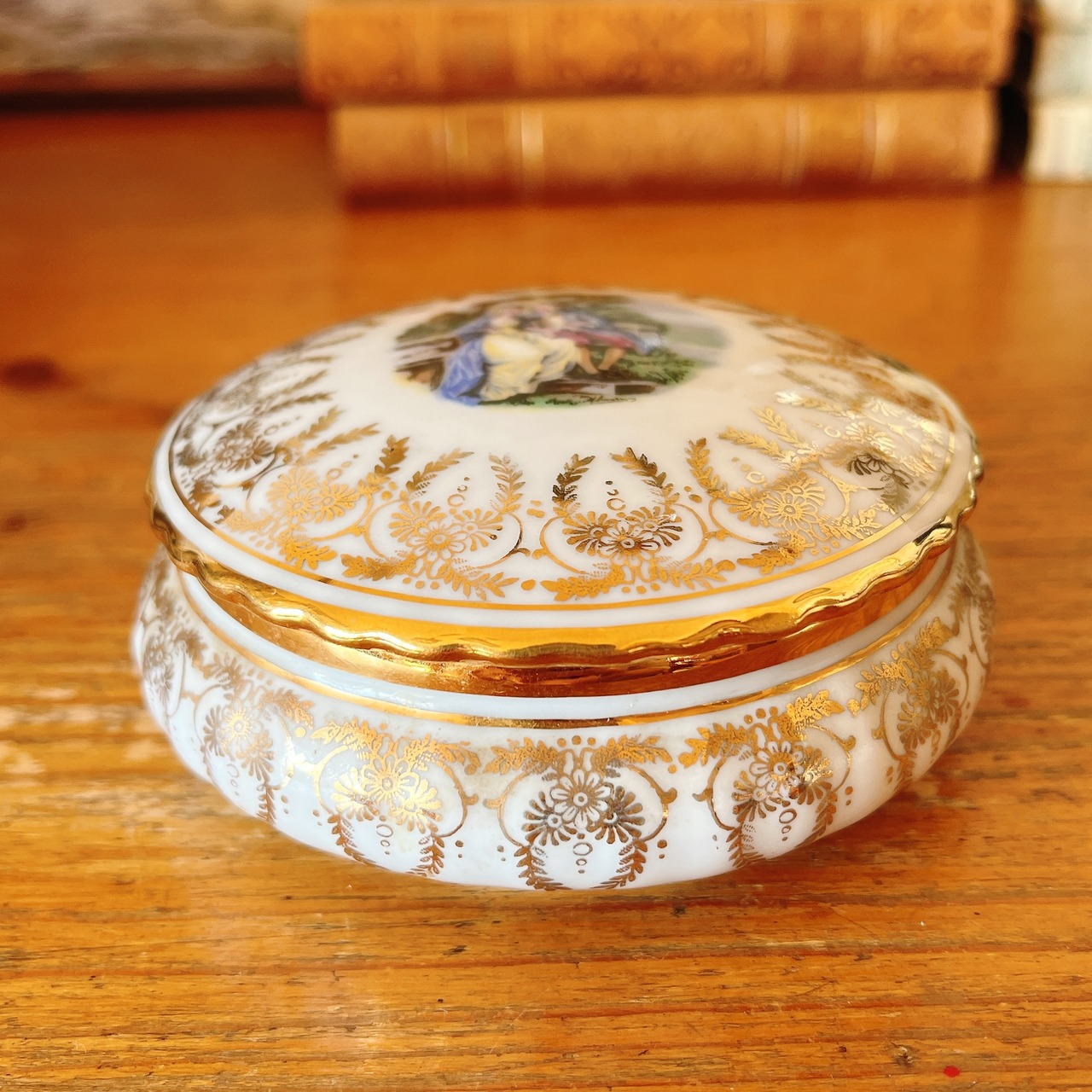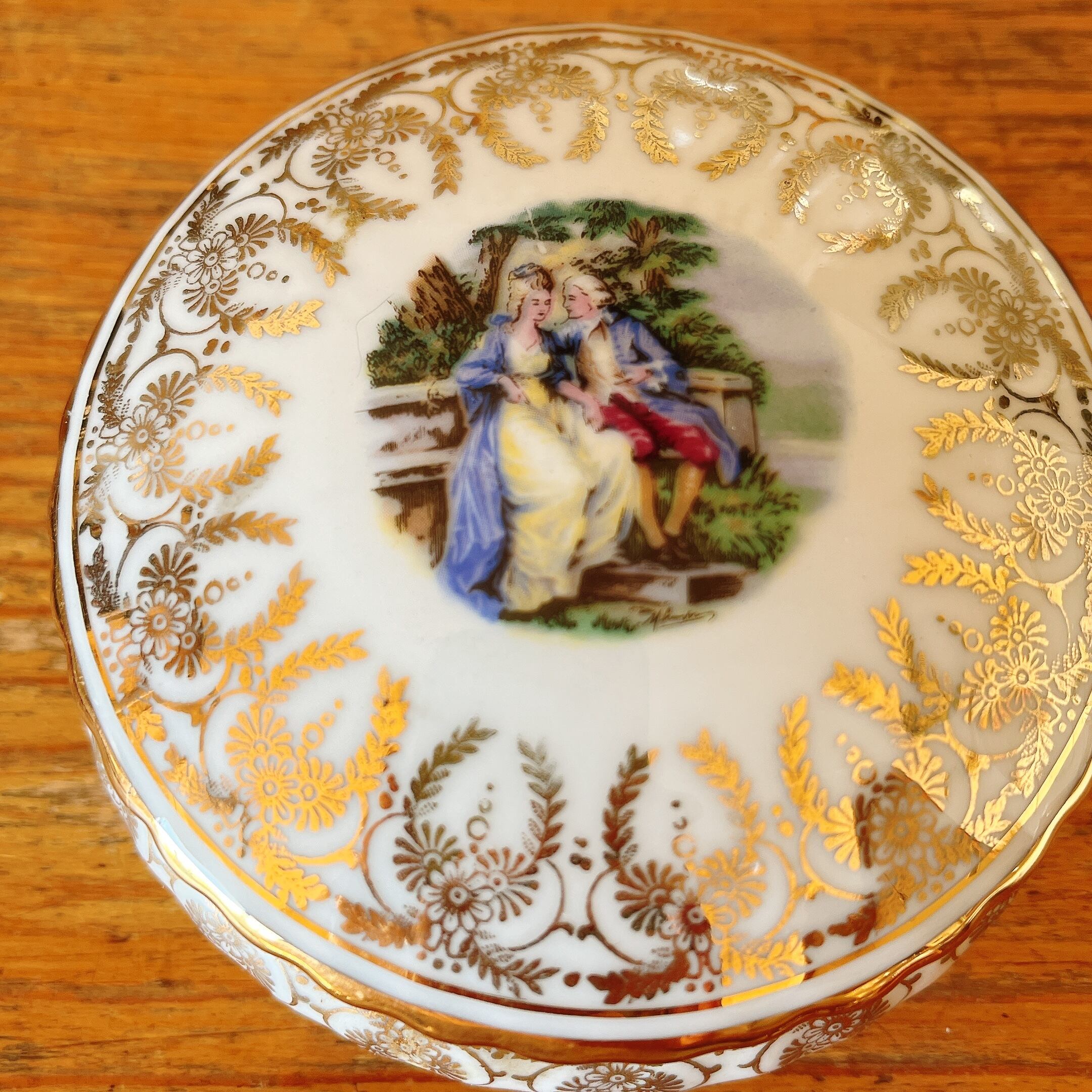 フランスの貴婦人と紳士と金彩が美しいボンボニエールです。