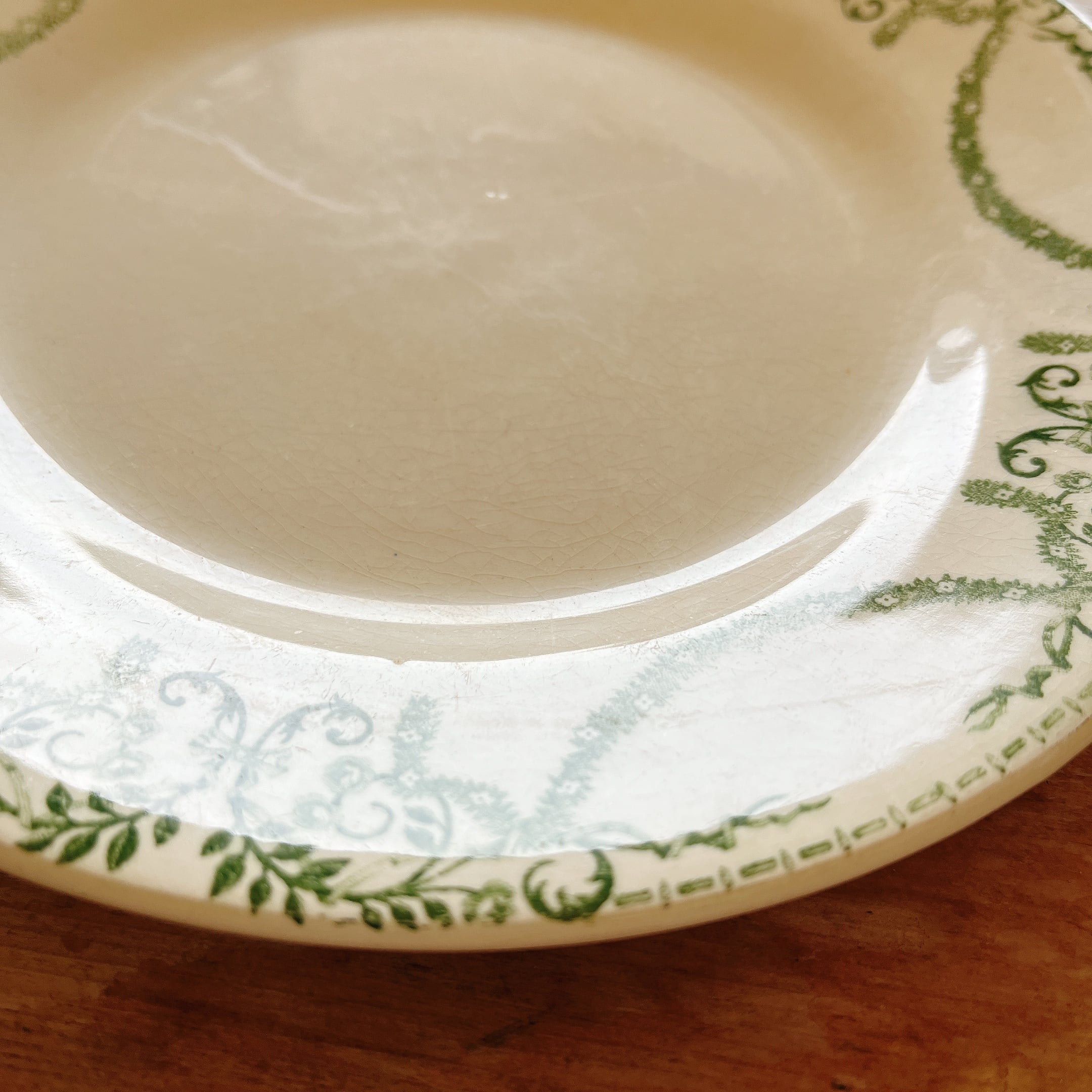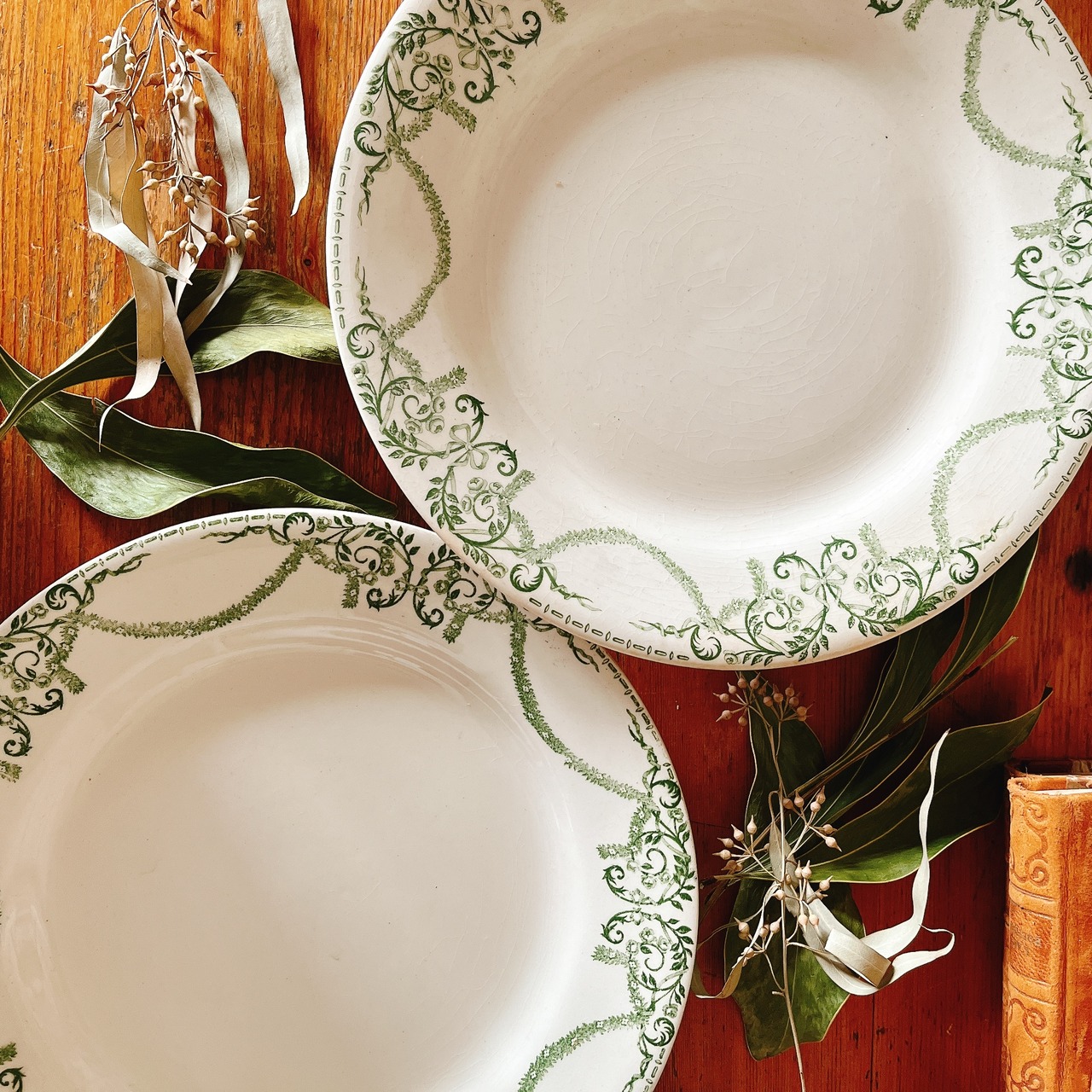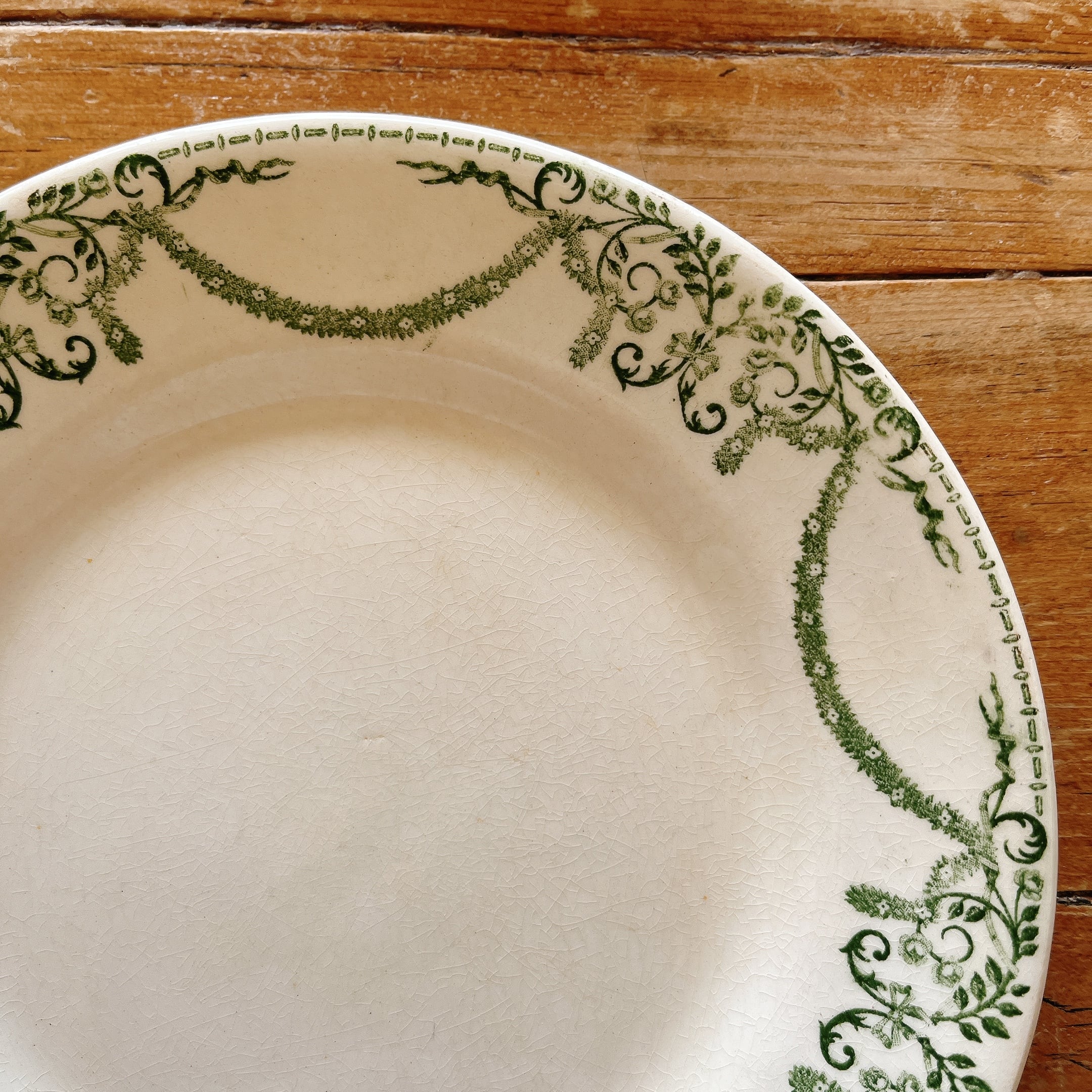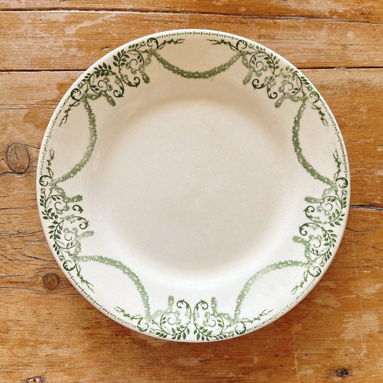 グリーンの植物モチーフのガーランドが美しい、デザートプレートです。