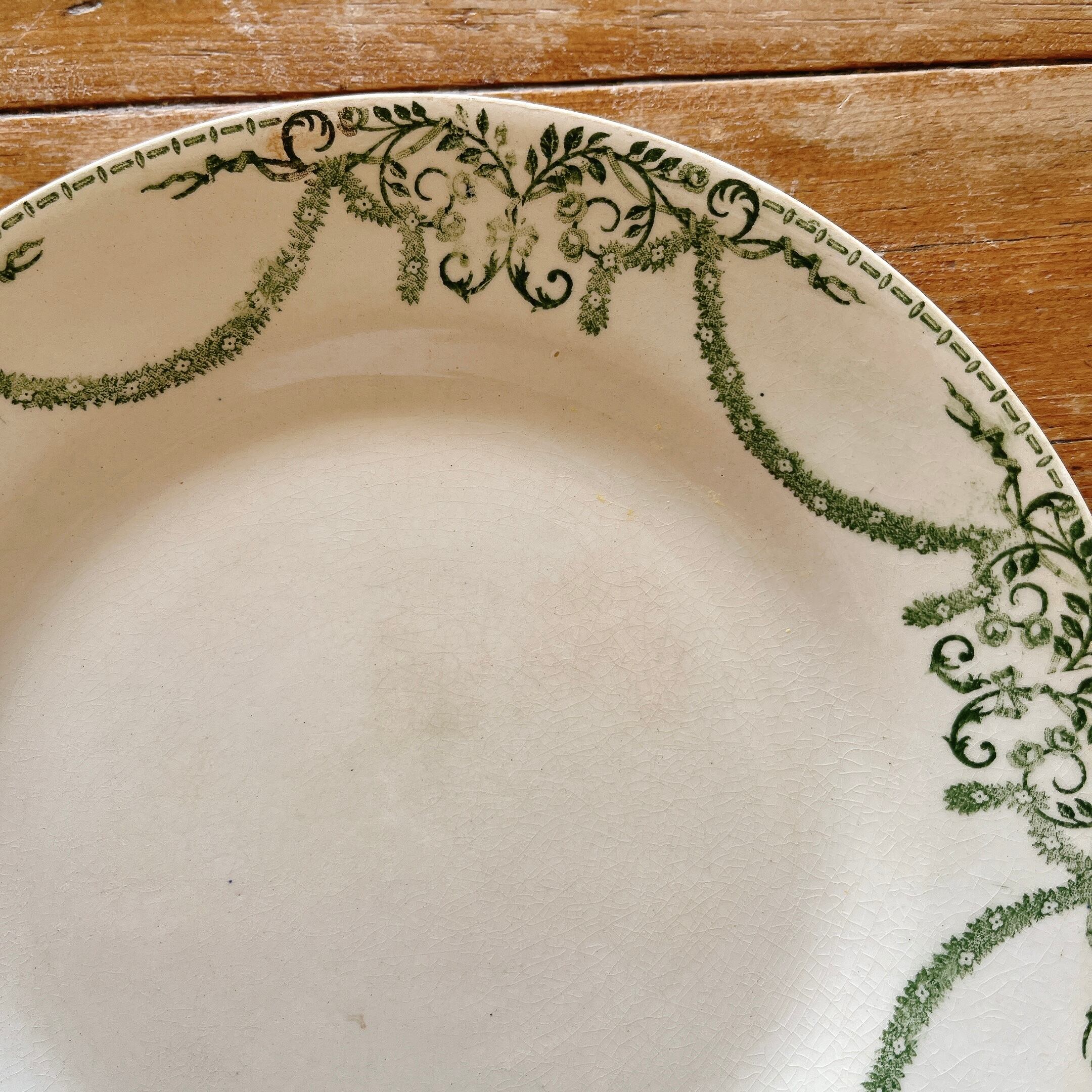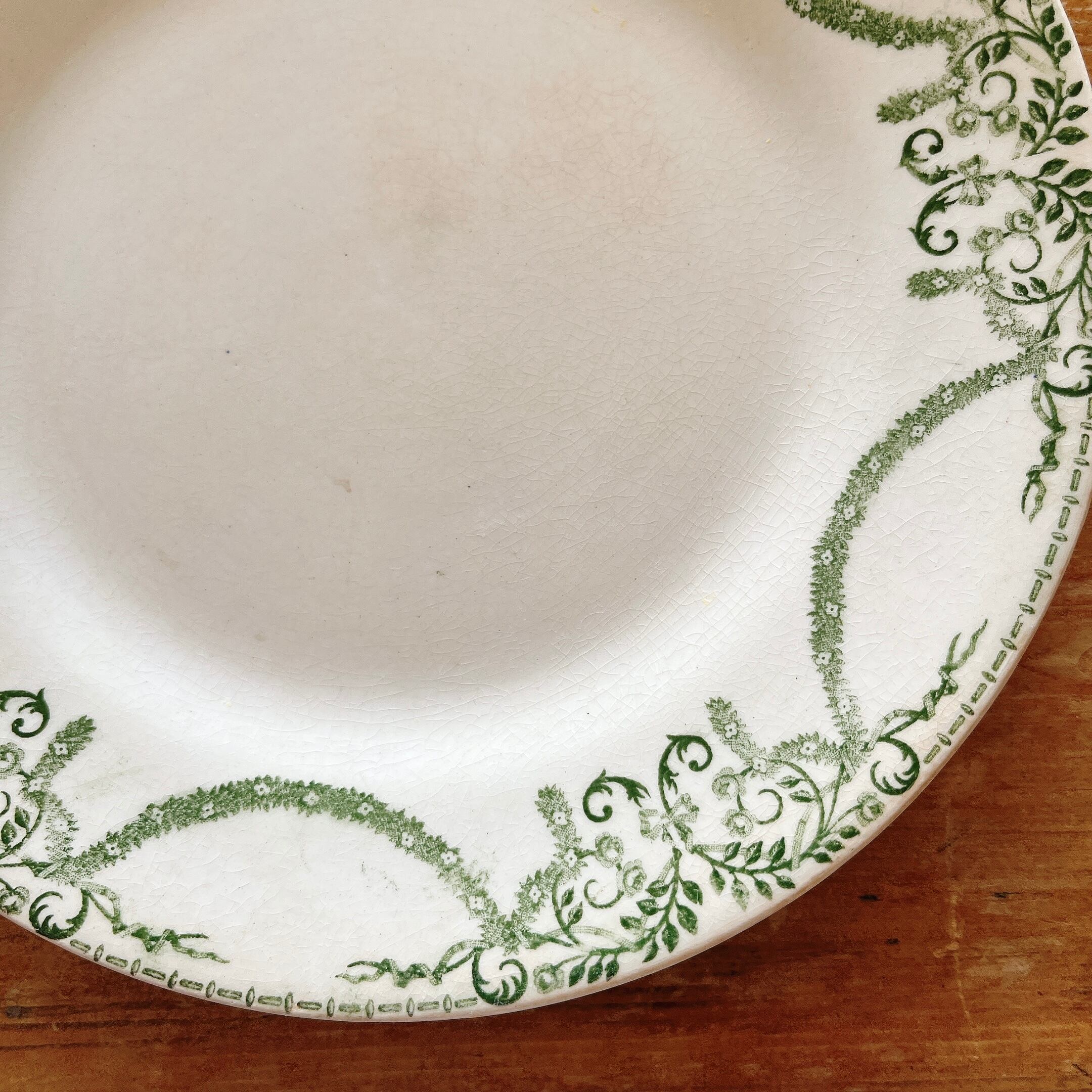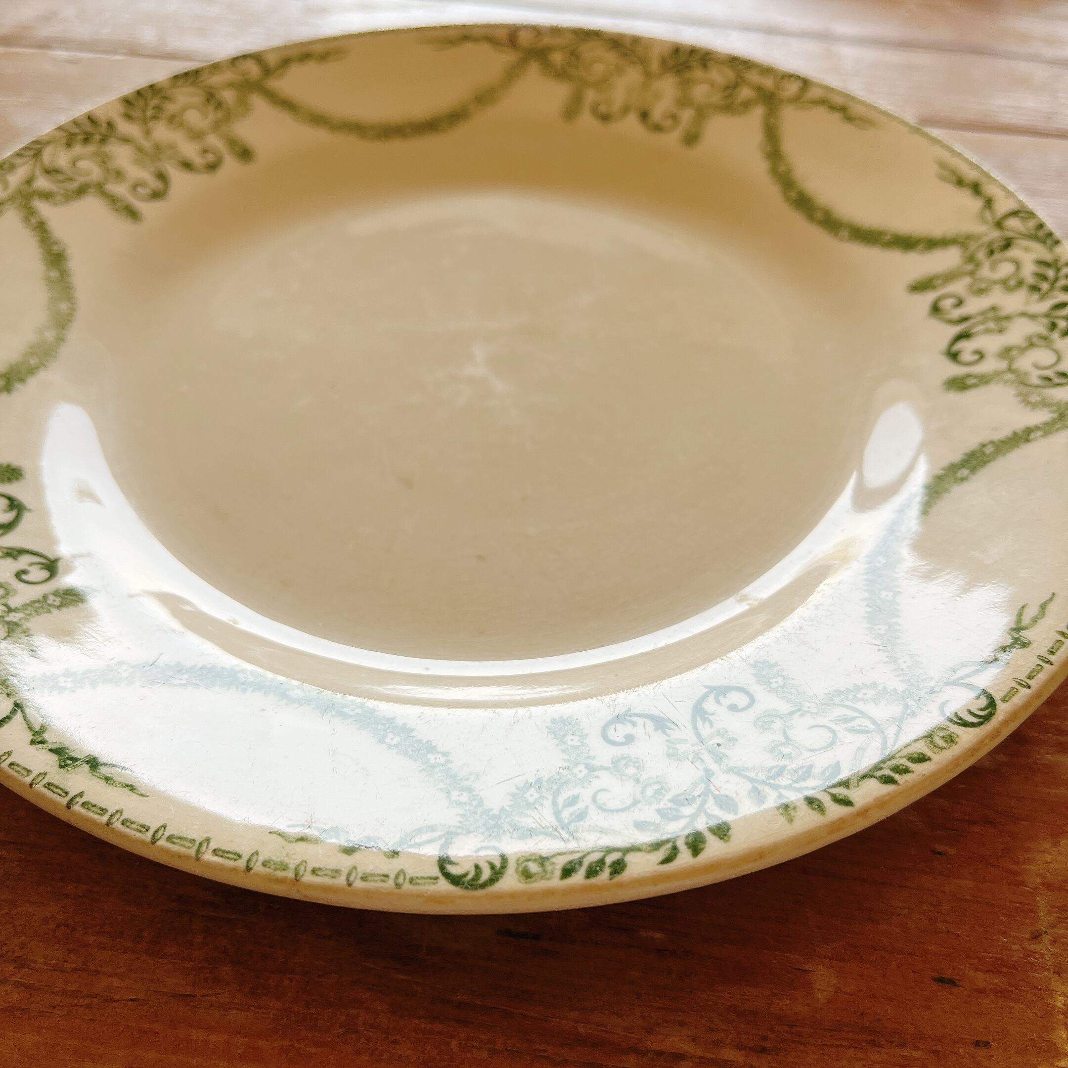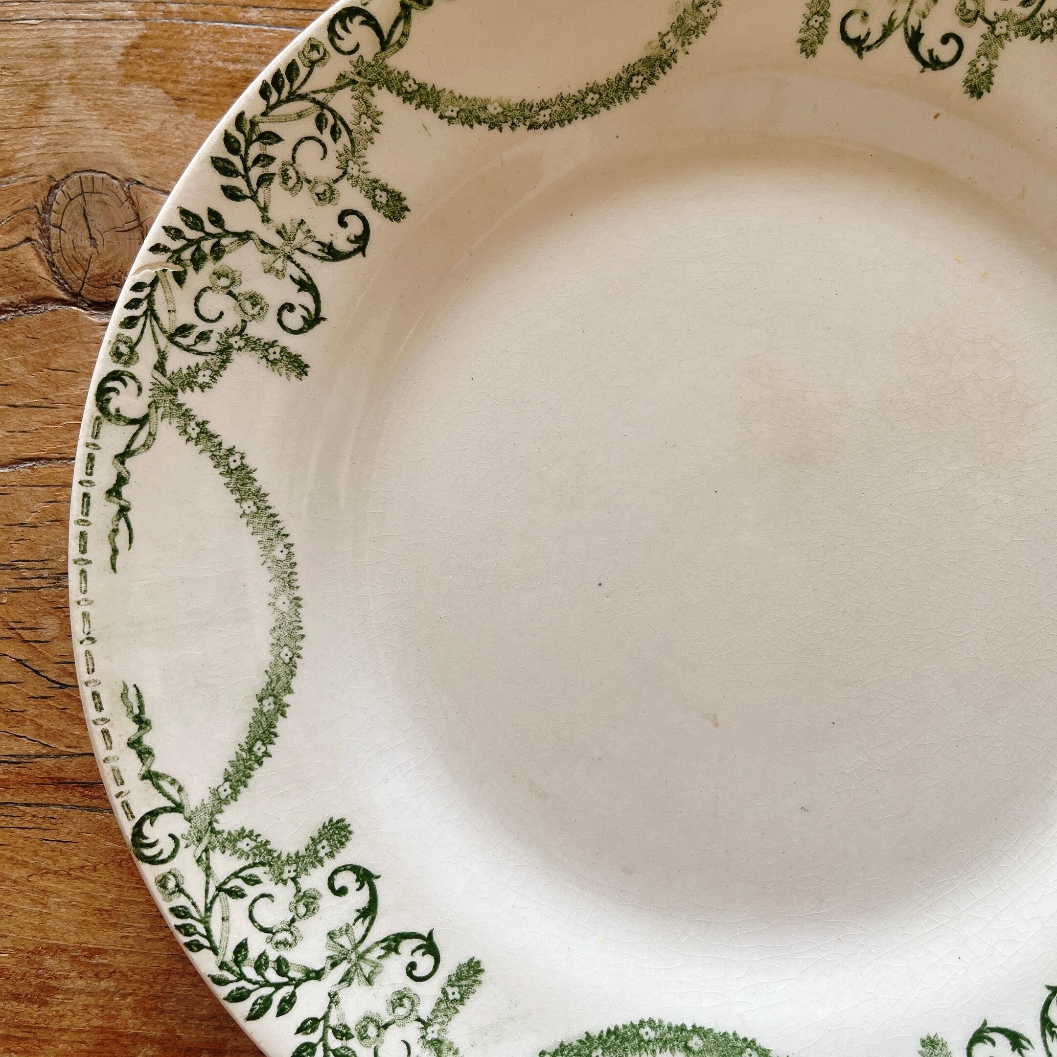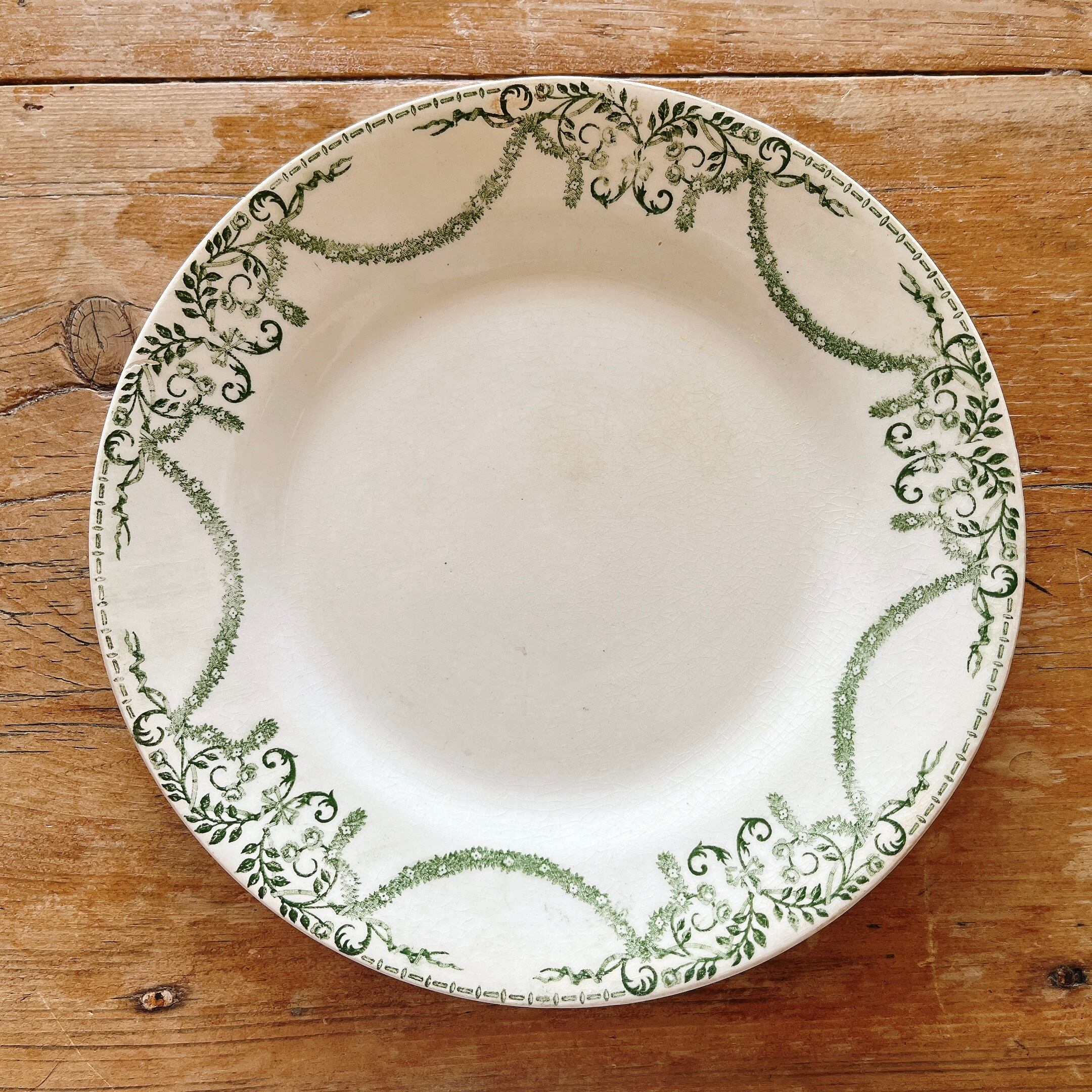 グリーンの植物モチーフのガーランドが美しい、デザートプレートです。